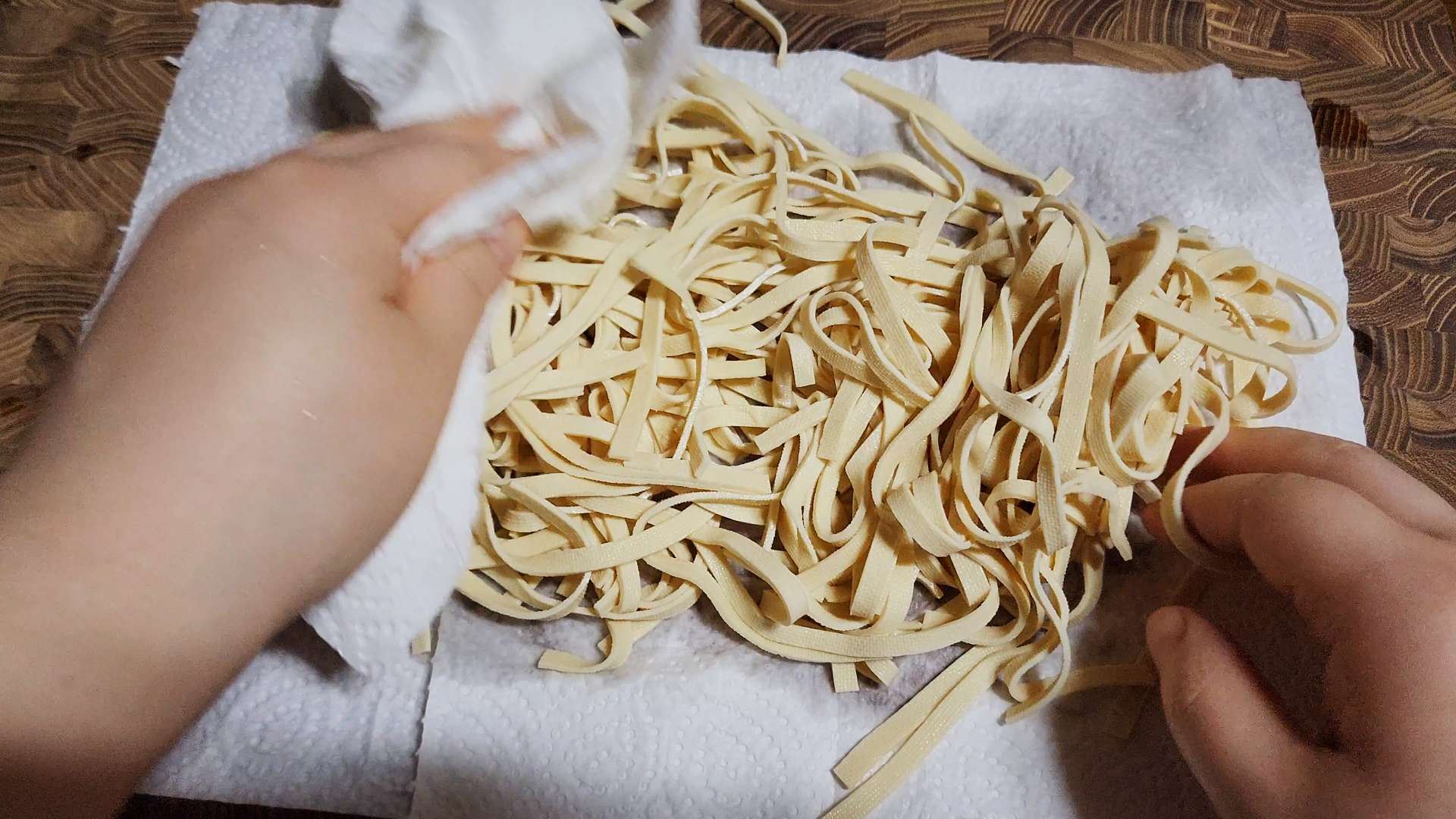 채반에 밭쳐 물에 헹구고 키친타월로 물기를 제거해 줍니다.