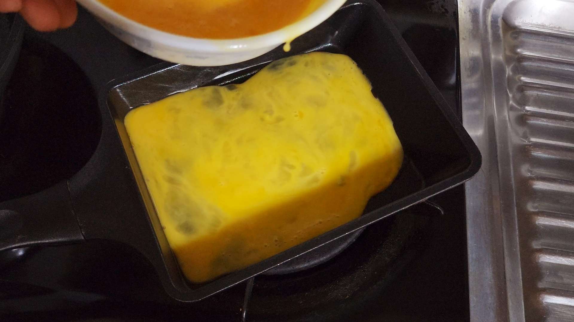달걀물을 넣고 달걀말이를 만들어줍니다.