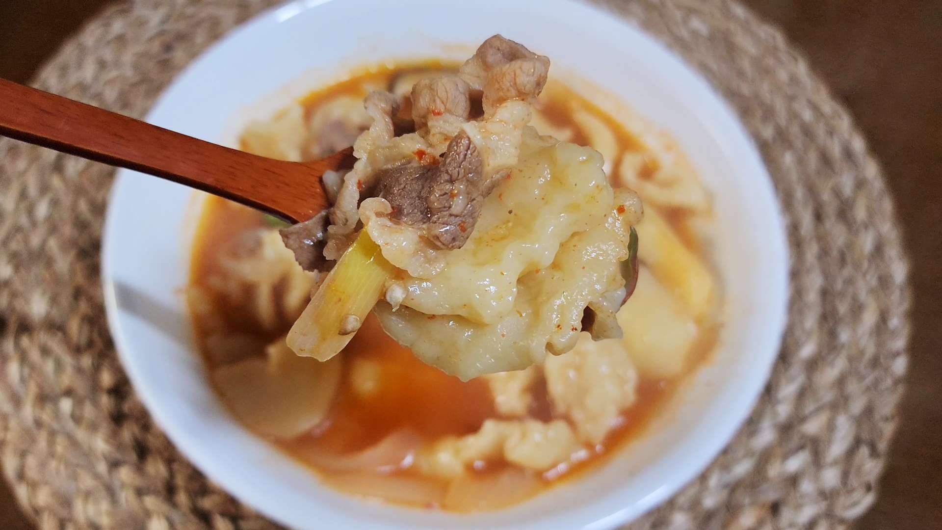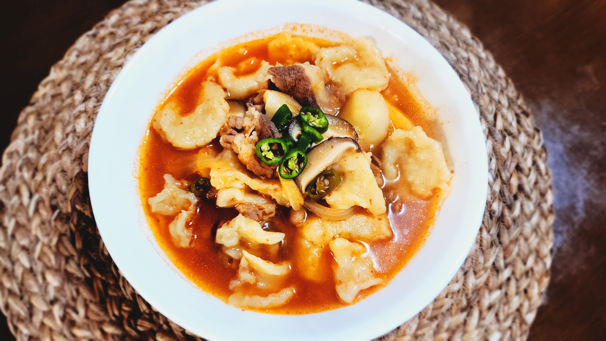 얼큰한 국물에 쫄깃한 수제비를 같이 먹으면 맛있답니다.