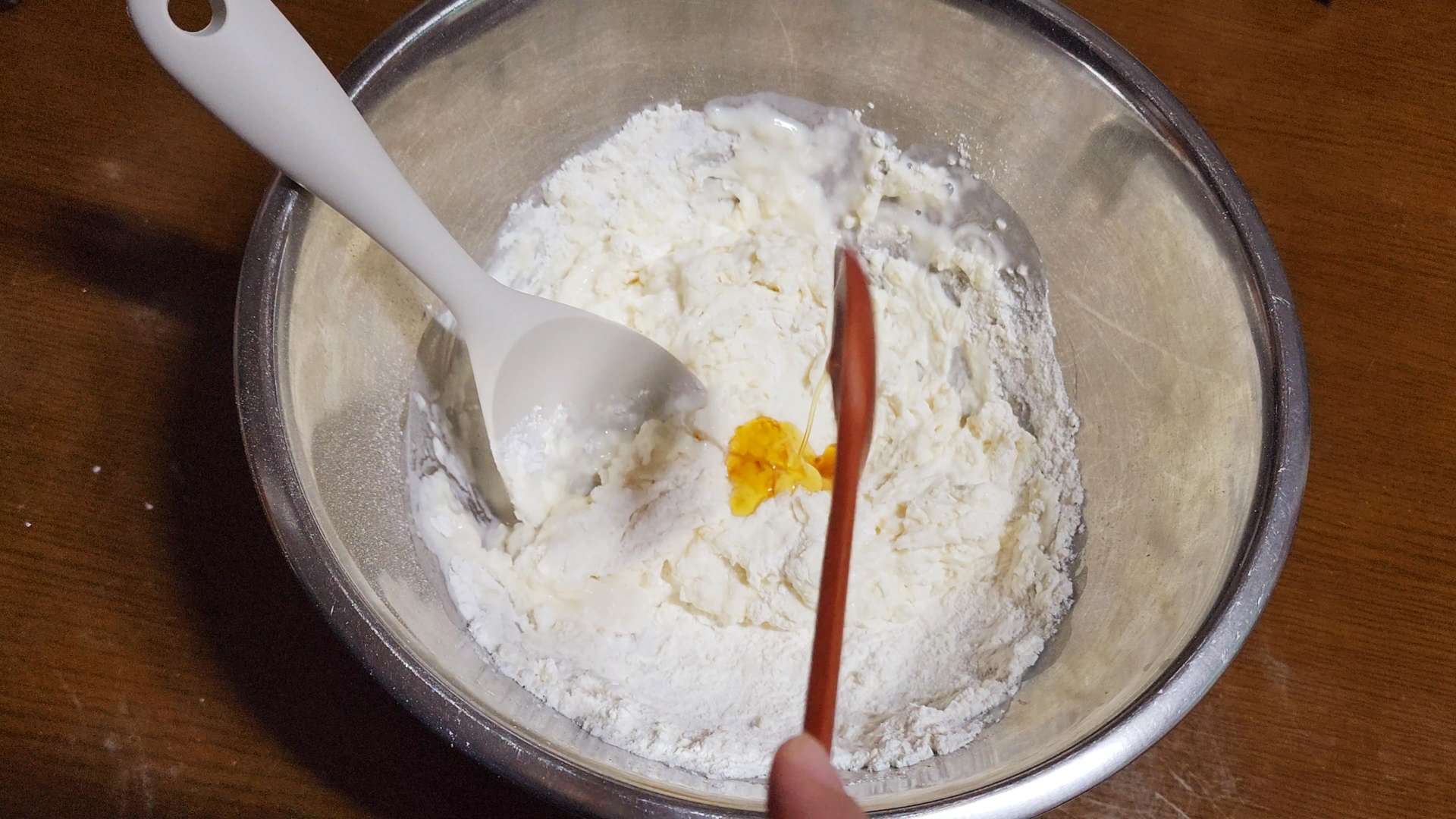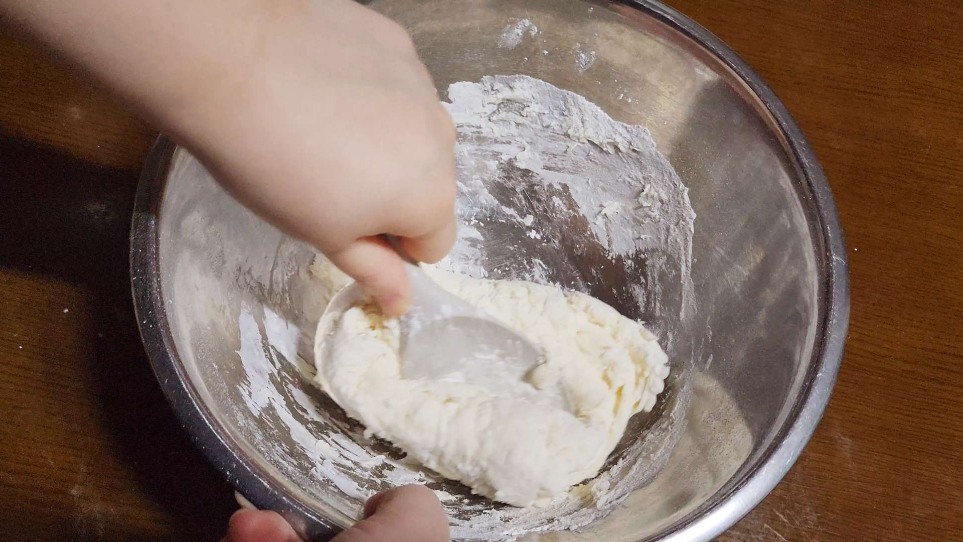 밀가루에 물을 조금씩 넣어가면서 끈기가 생길 때까지 치대 반죽해줍니다.