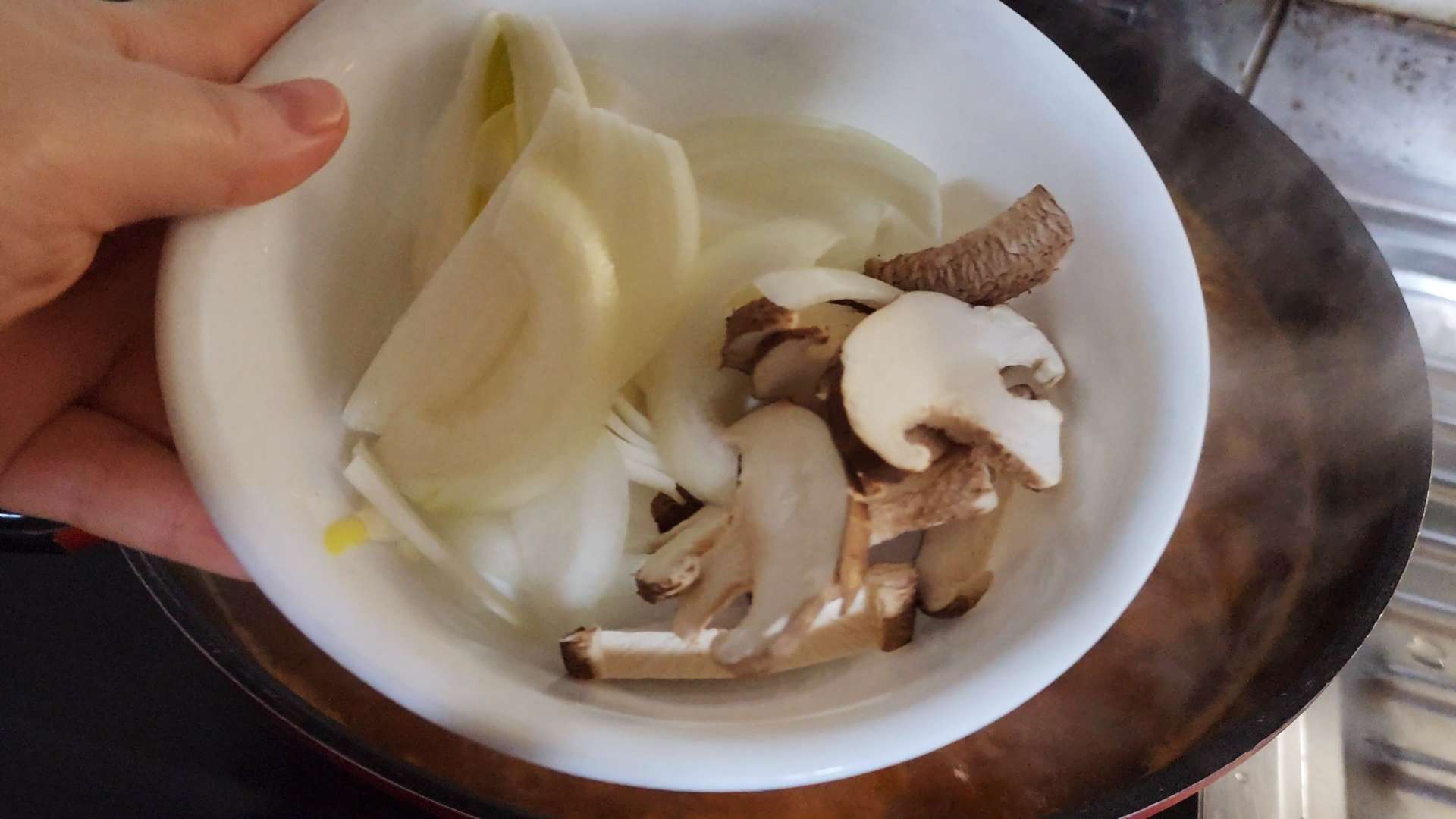 재료: 우삼겹 100g, 표고버섯 1개, 감자 1개,