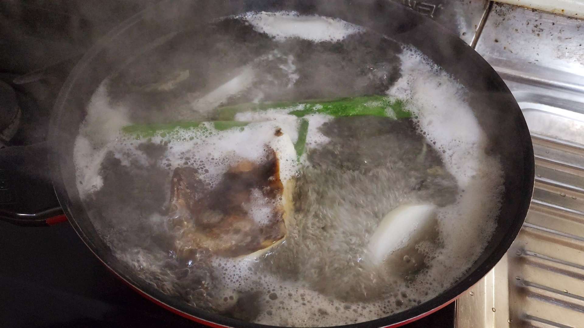 육수: 물 800ml, 황태 대가리 1개, 국물용 멸치 7마리, 조각 다시마 1장, 무 슬라이스 1/2개, 대파 1/2대