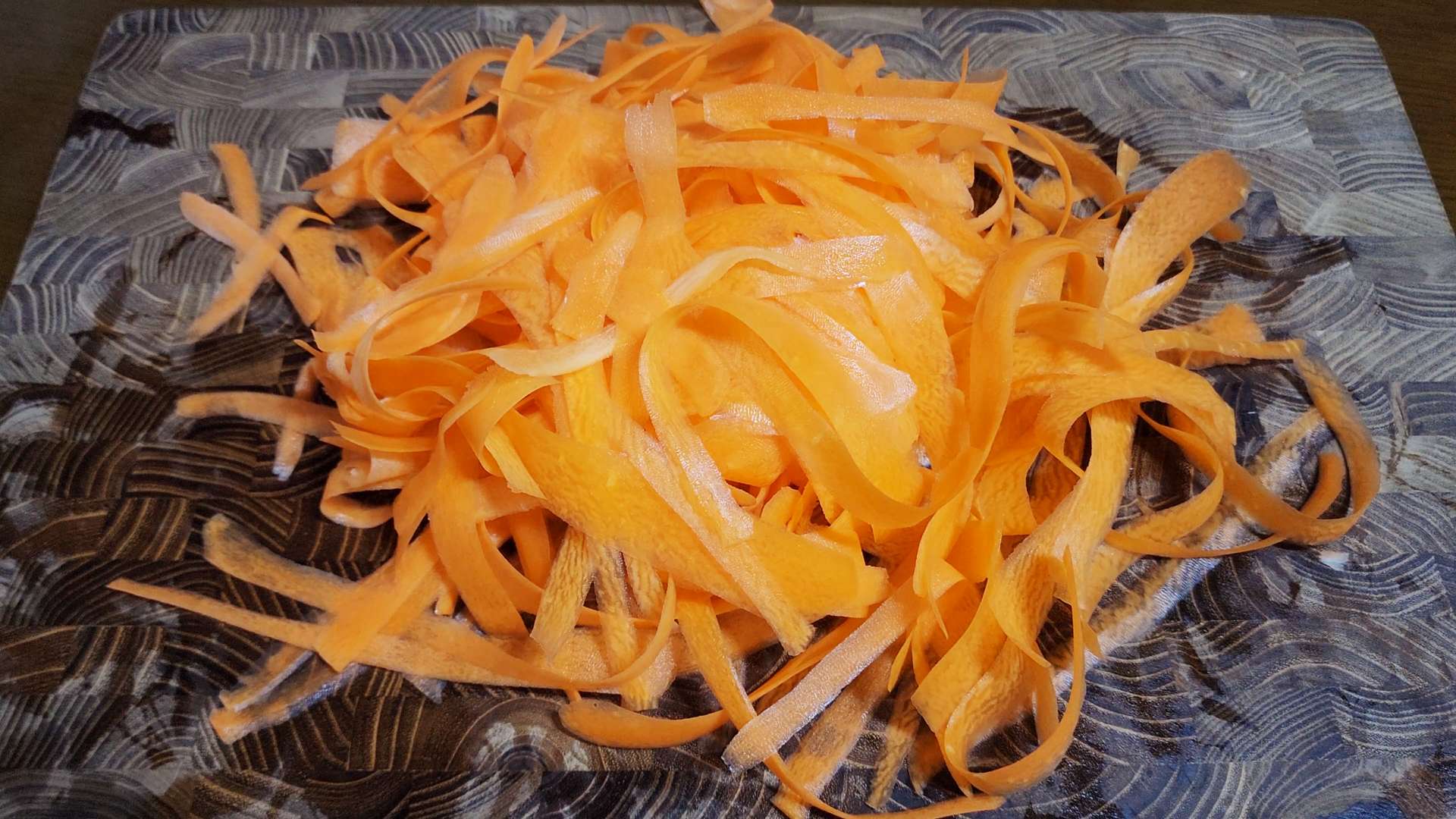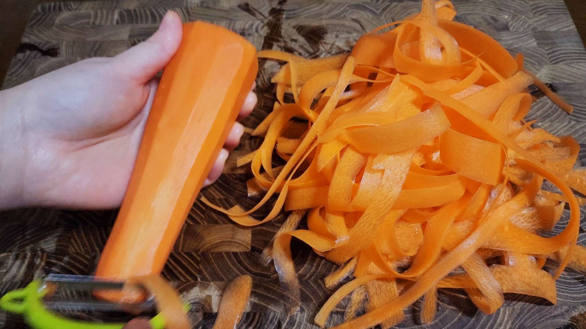 당근은 껍질을 벗기고 얇게 슬라이스 해줍니다.