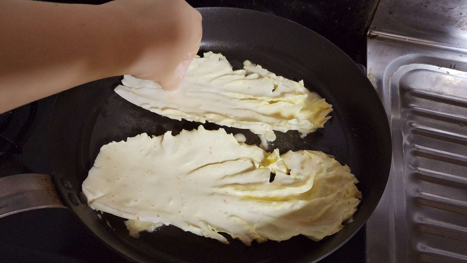 배추를 반죽에 골고루 적시고 올려줍니다.