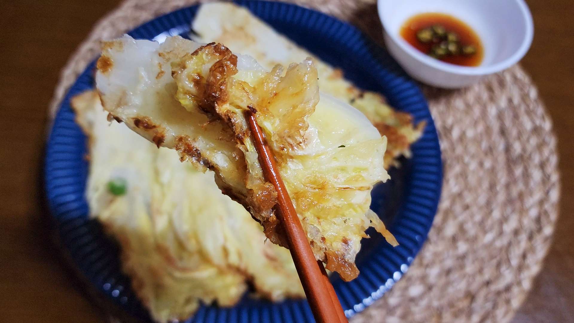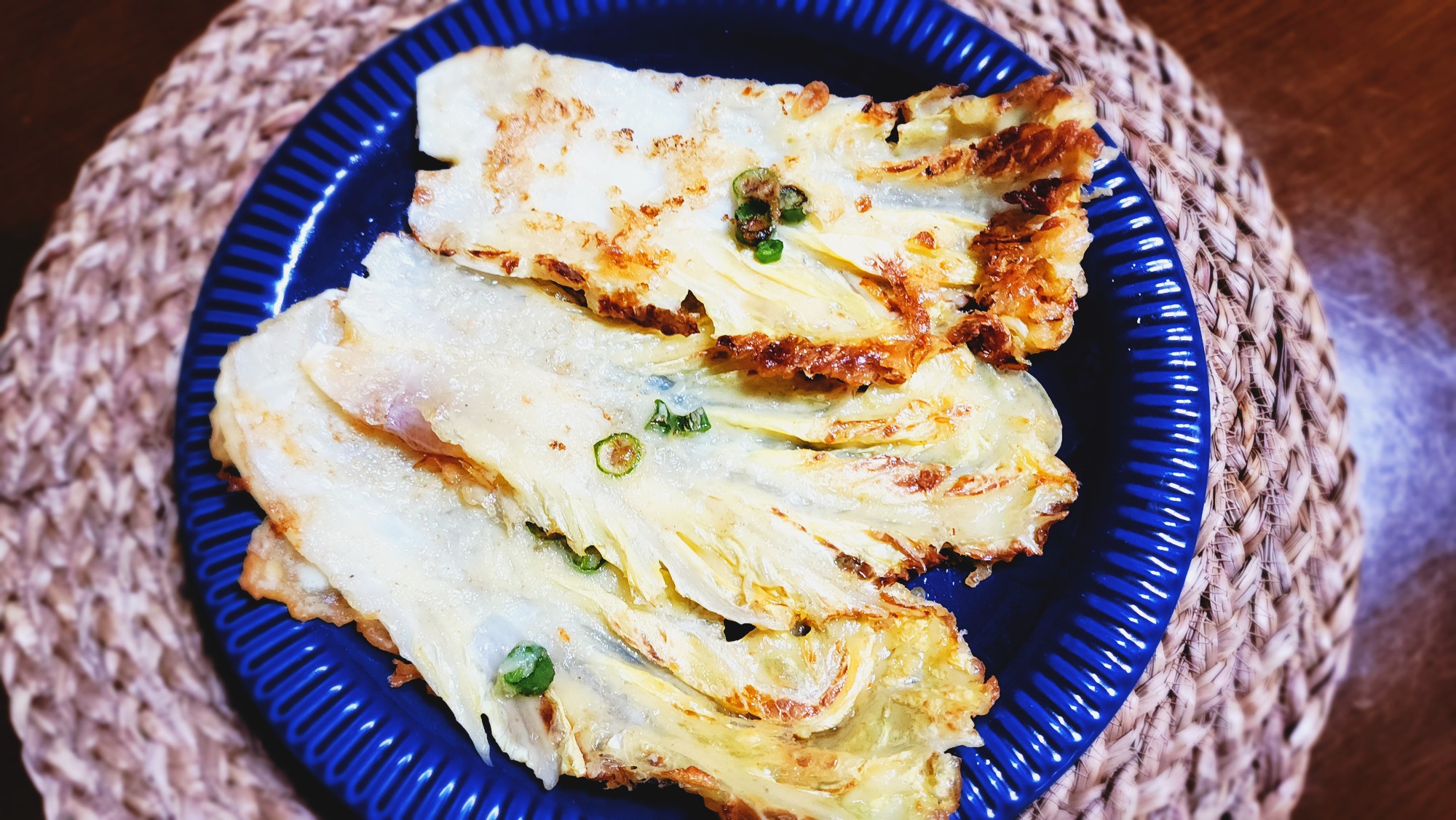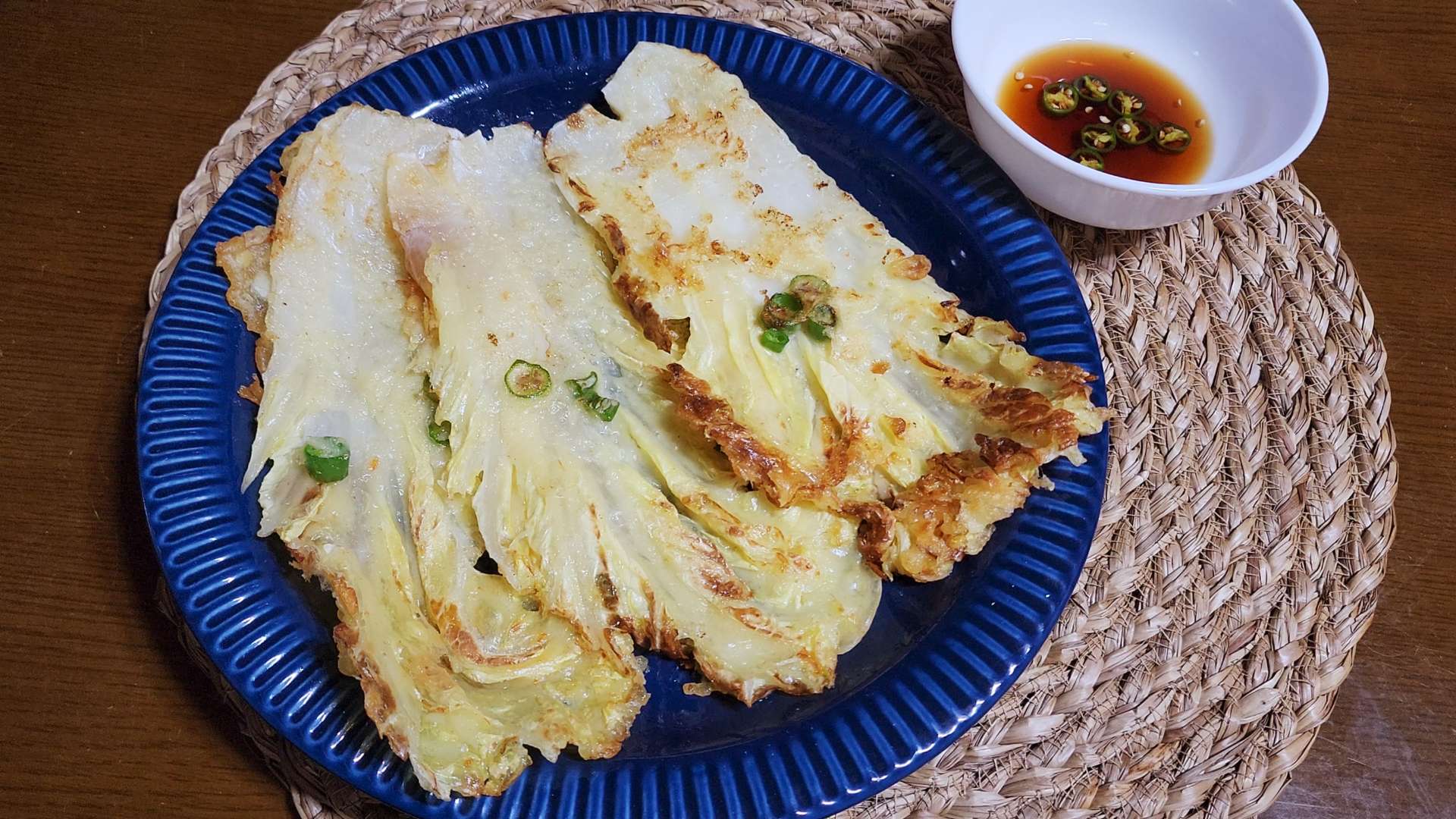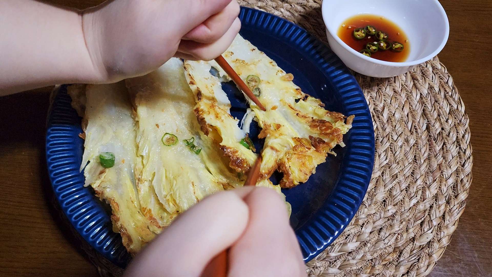 바삭하고 부드러운 달큰한 배추전은 양념장에 찍어 먹으면 맛있답니다.