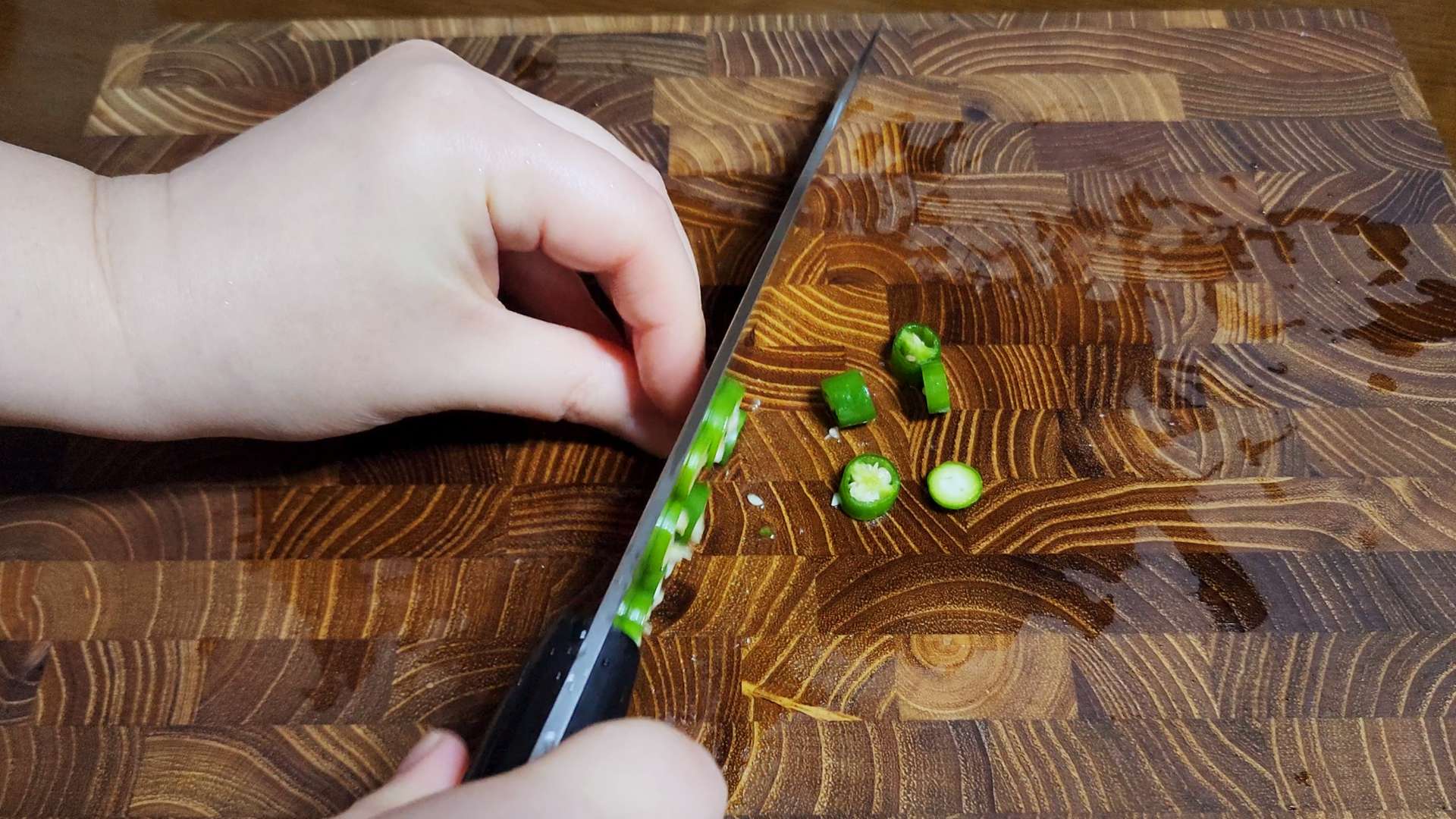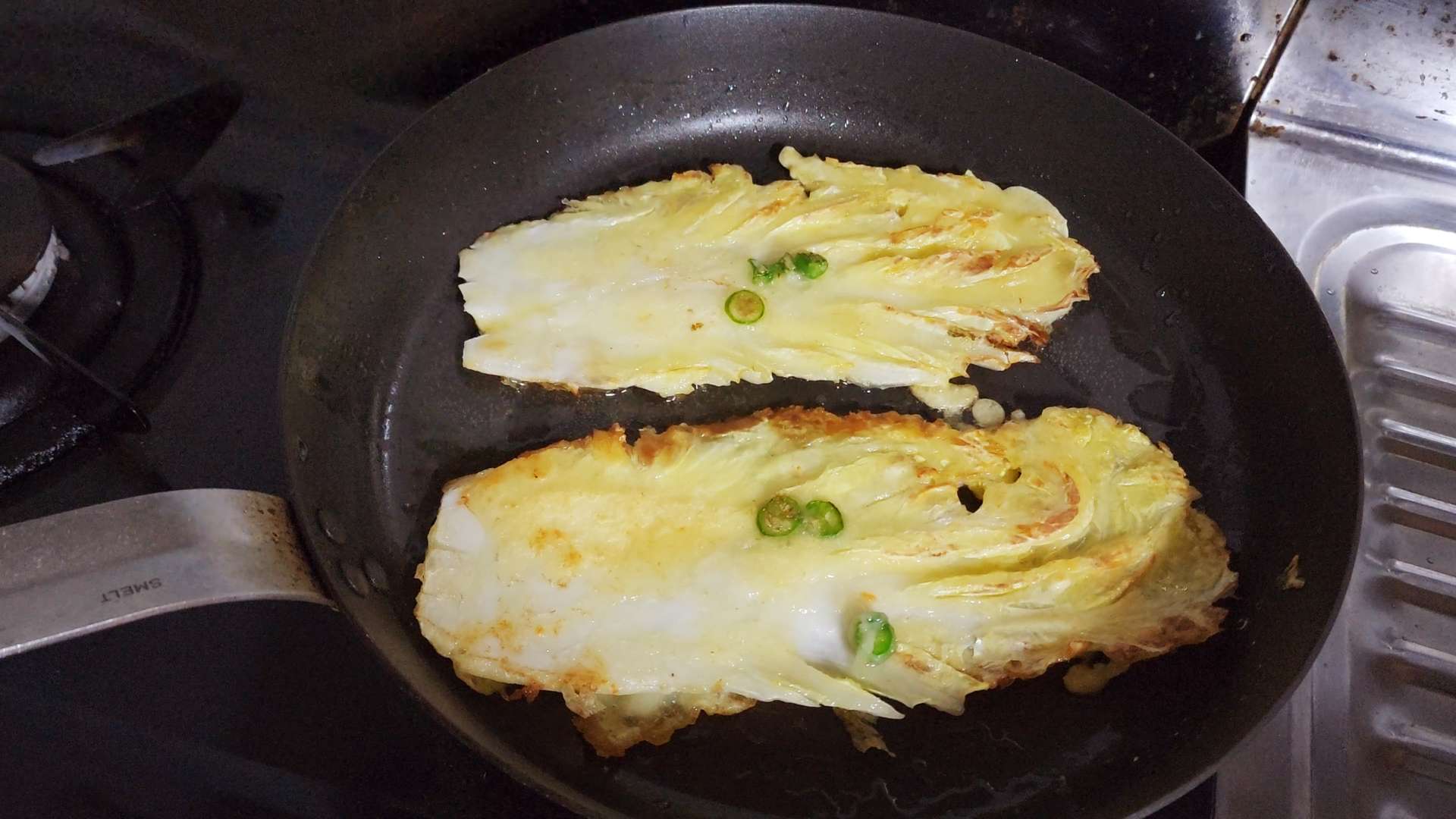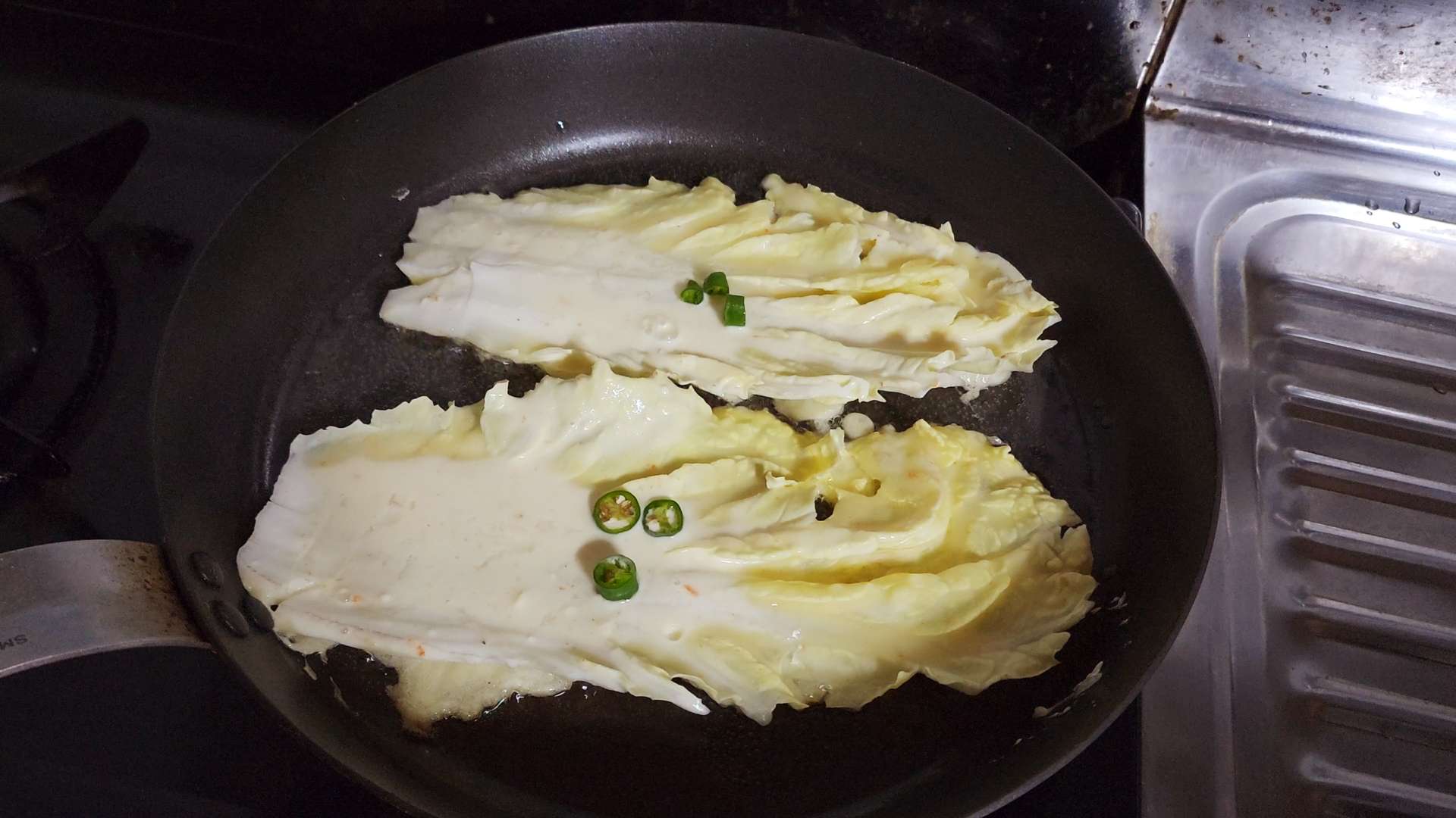 재료: 알배추 3장, 청양고추 1개, 식용유