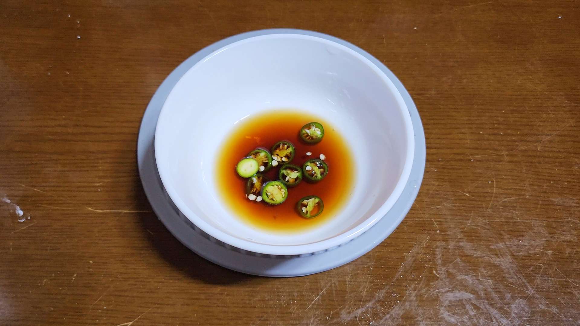 진간장 1T, 식초 2T, 청양고추를 넣고 섞어줍니다.