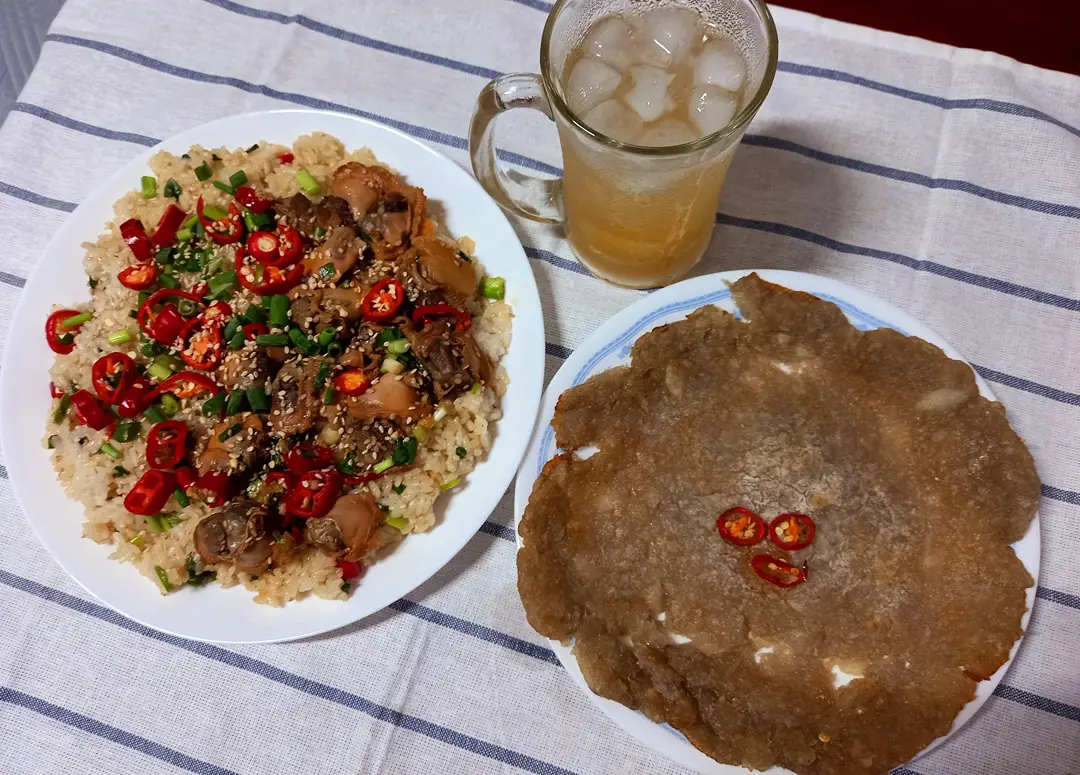맛있는 꼬막비빔밥과 감자전에 시원한 생강청 에이드 한잔 어떠세요?