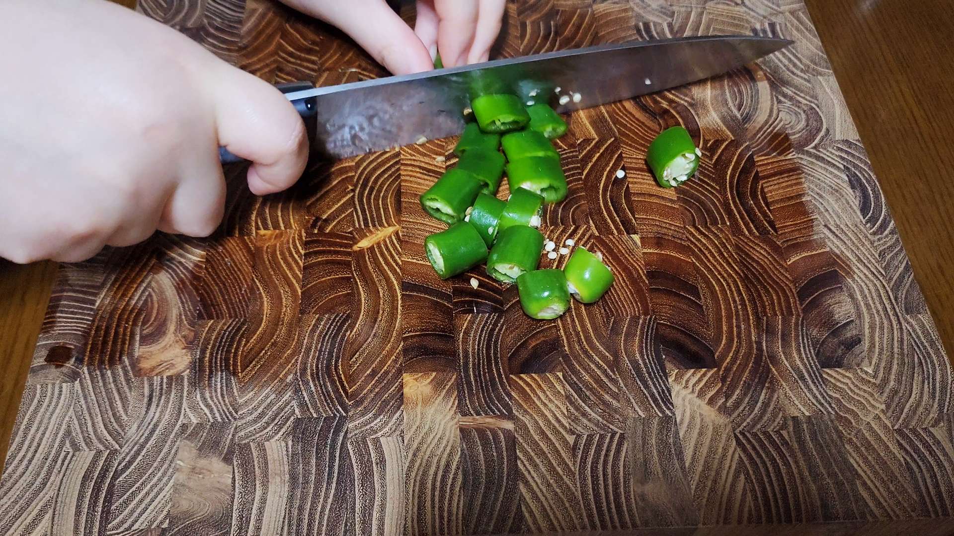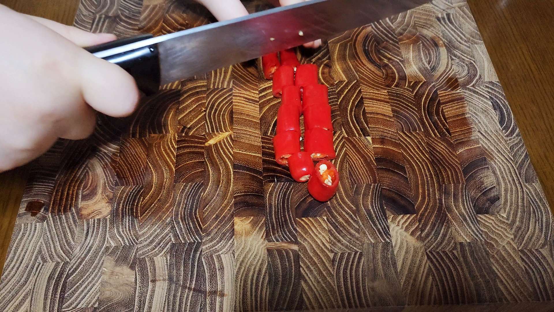 청고추, 홍고추는 한입 크기로 썰어줍니다.