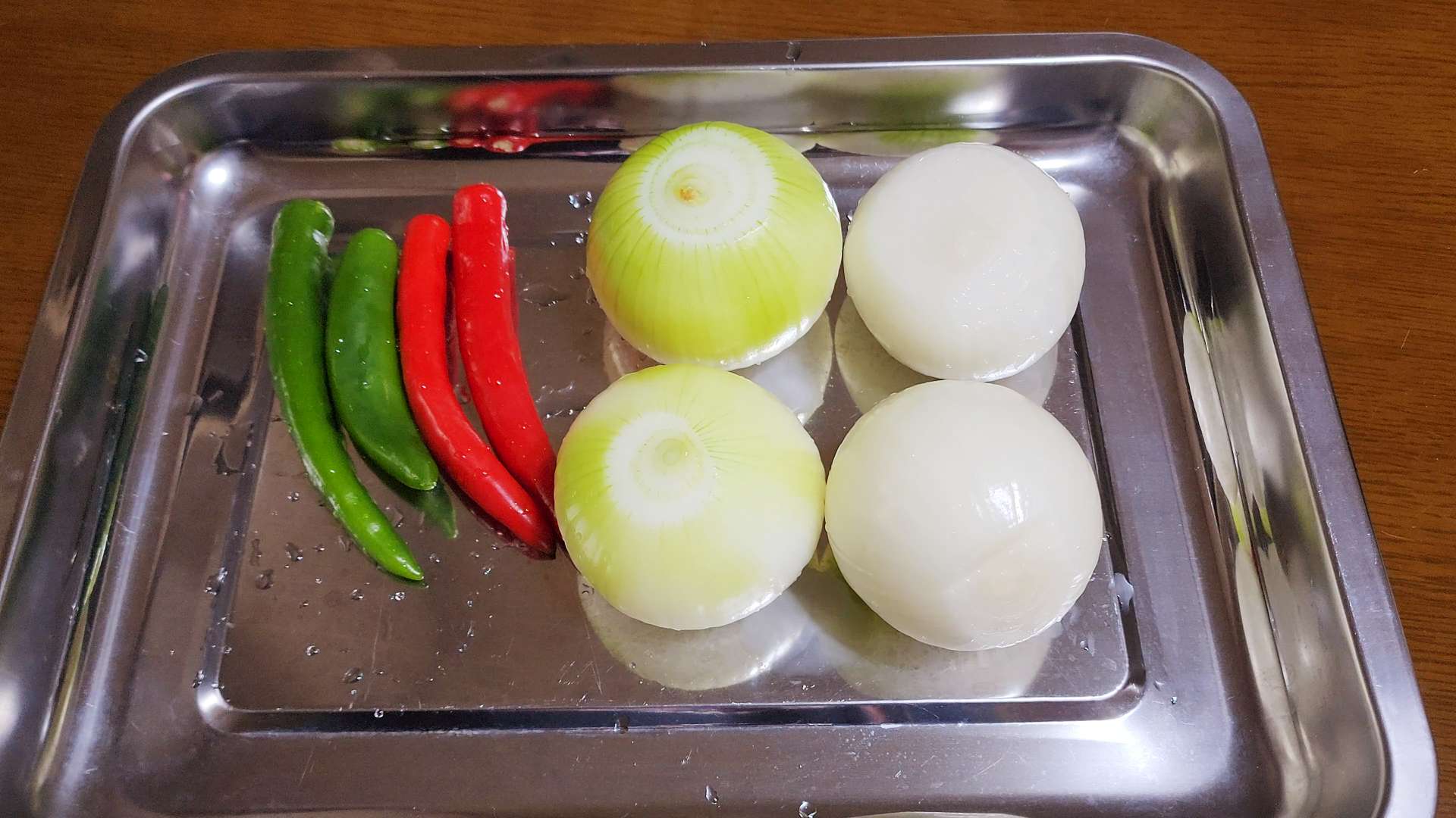재료: 양파 4개, 청고추 2개, 홍고추 2개