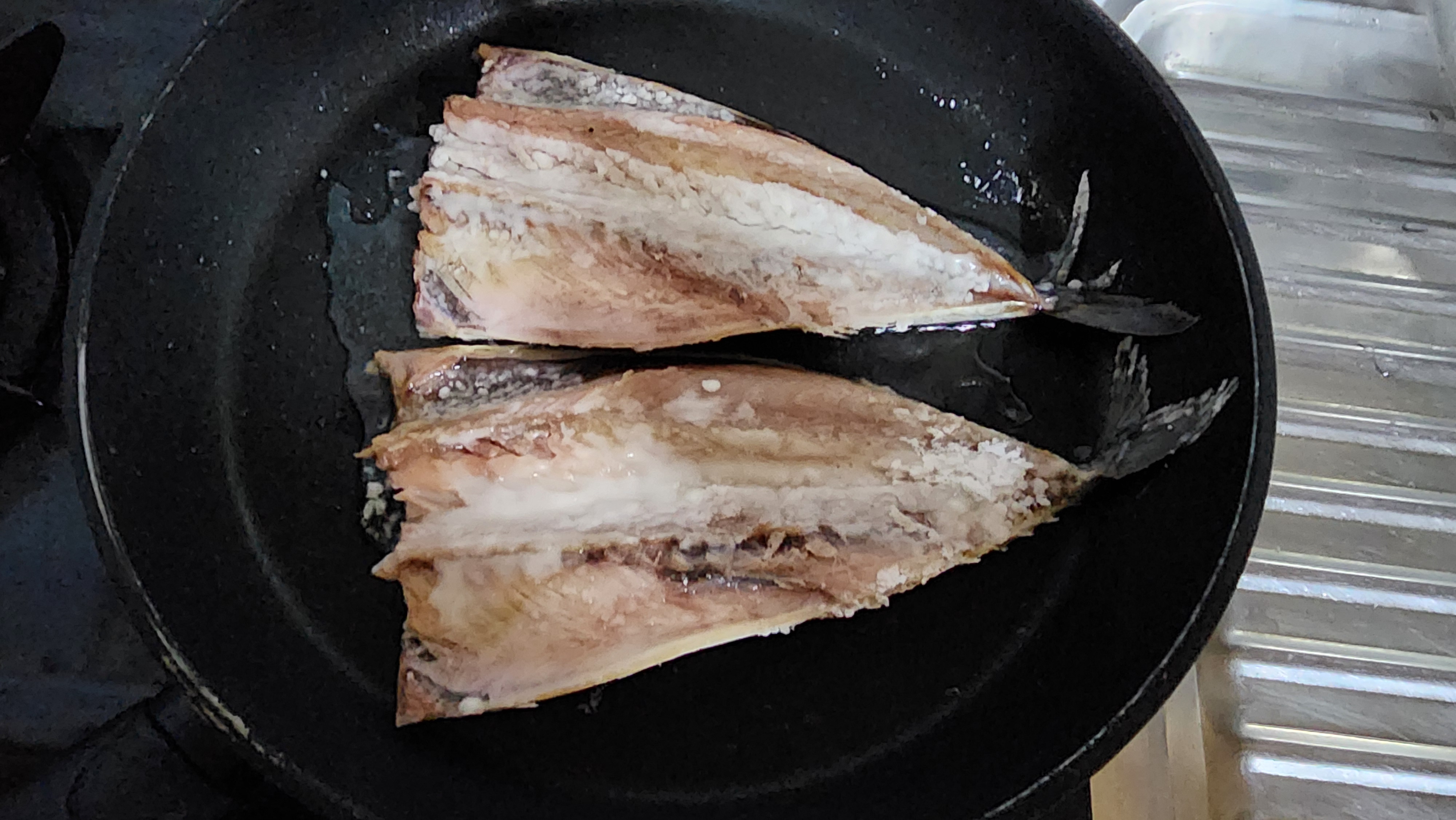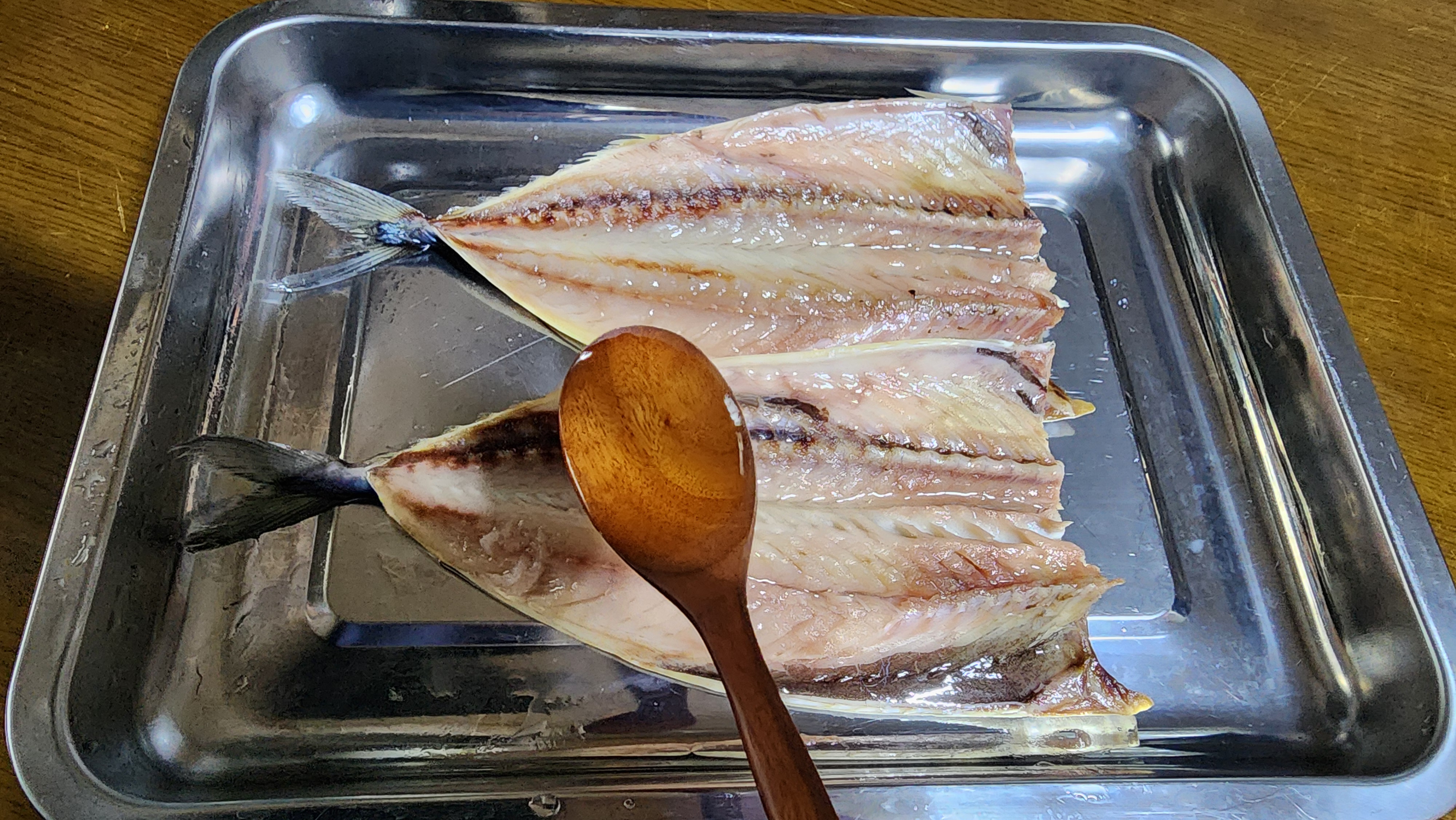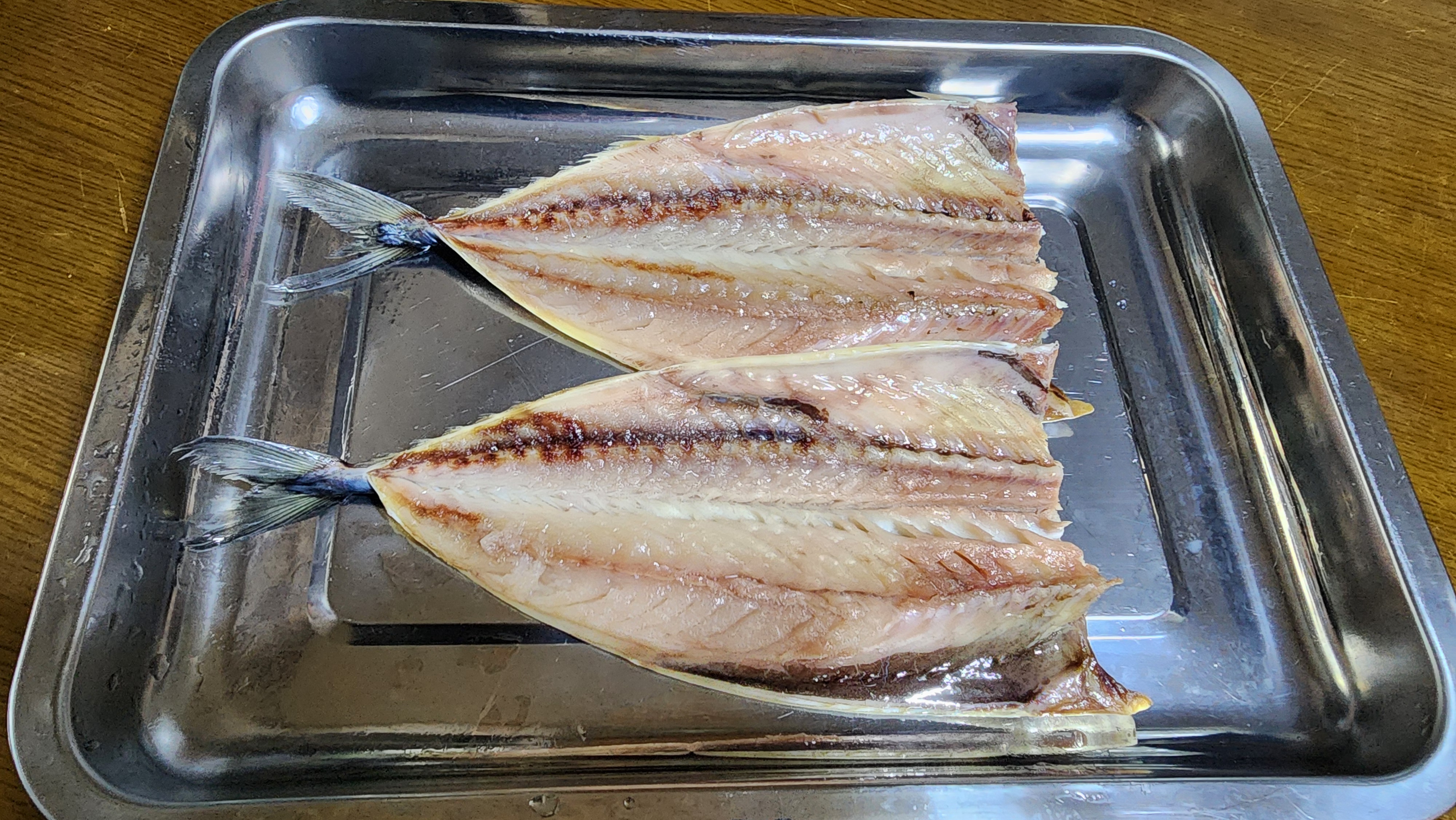 자반고등어는 물에 씻고 물기를 제거해줍니다.
