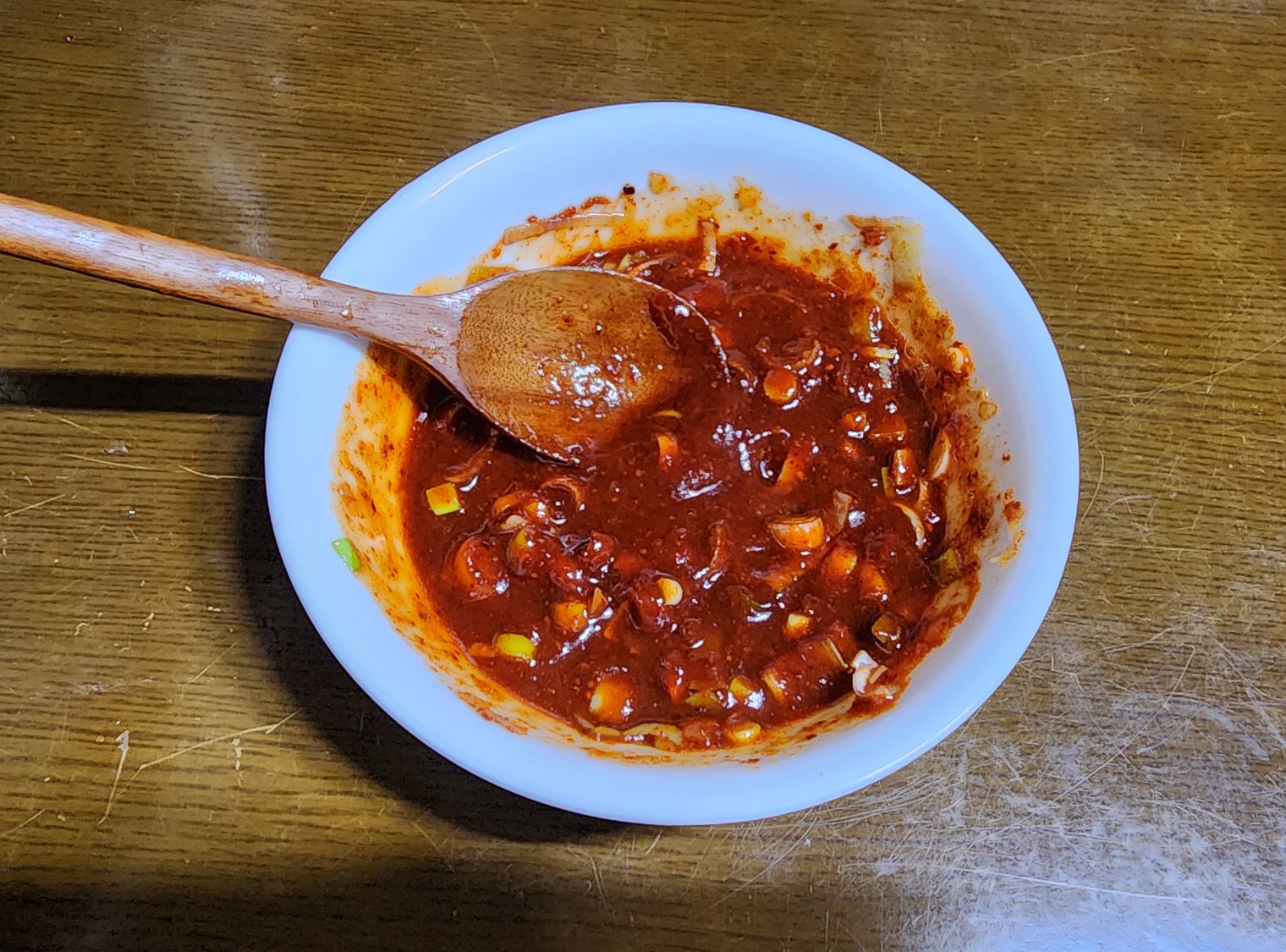 고춧가루 1T, 토마토케첩 1T, 참기름 1t,