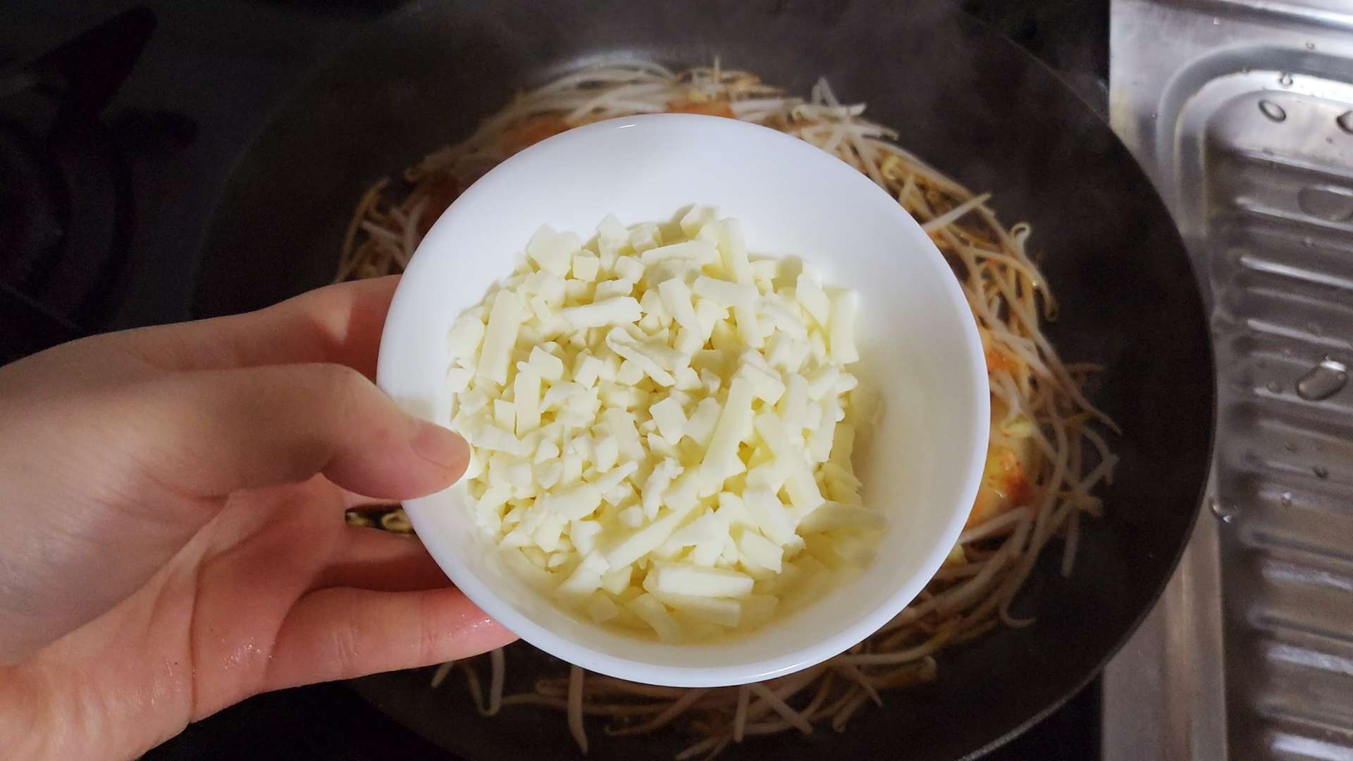 모차렐라 치즈를 뿌리고 뚜껑을 닫아 치즈를 녹여줍니다.