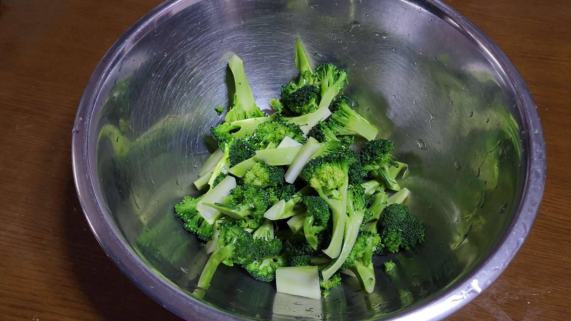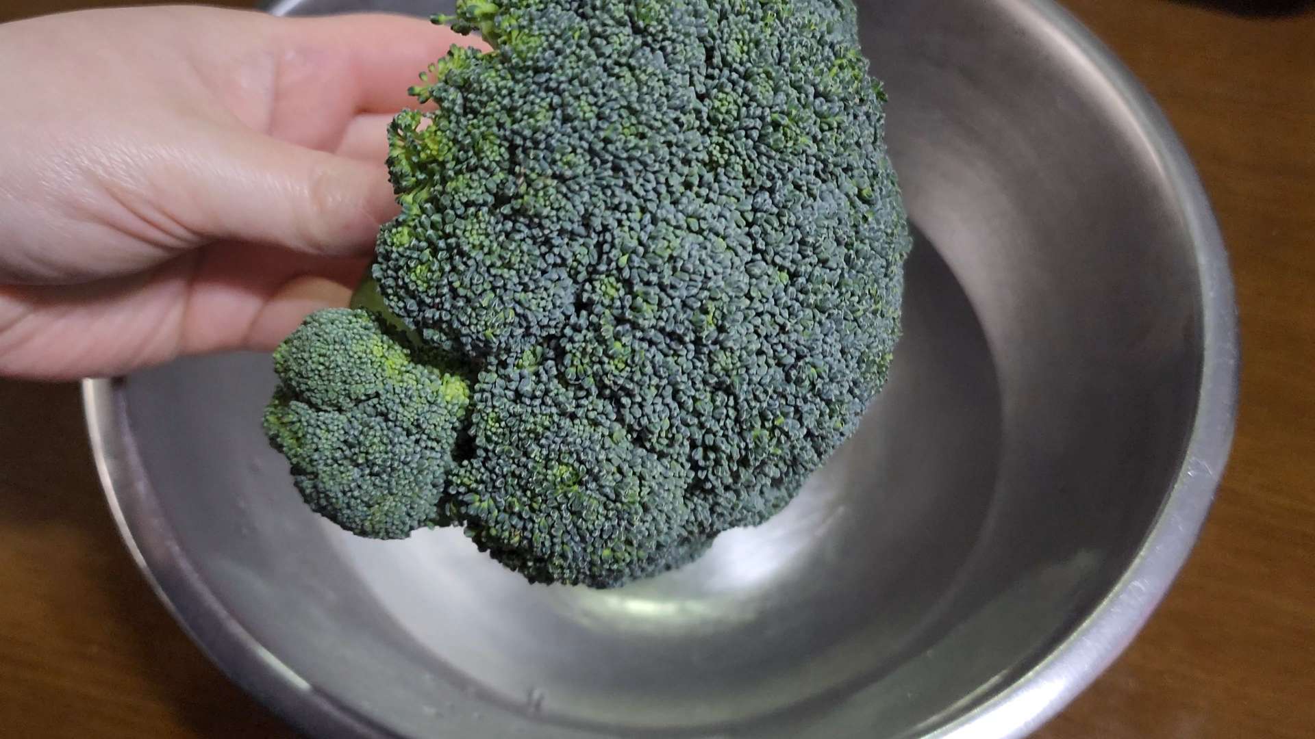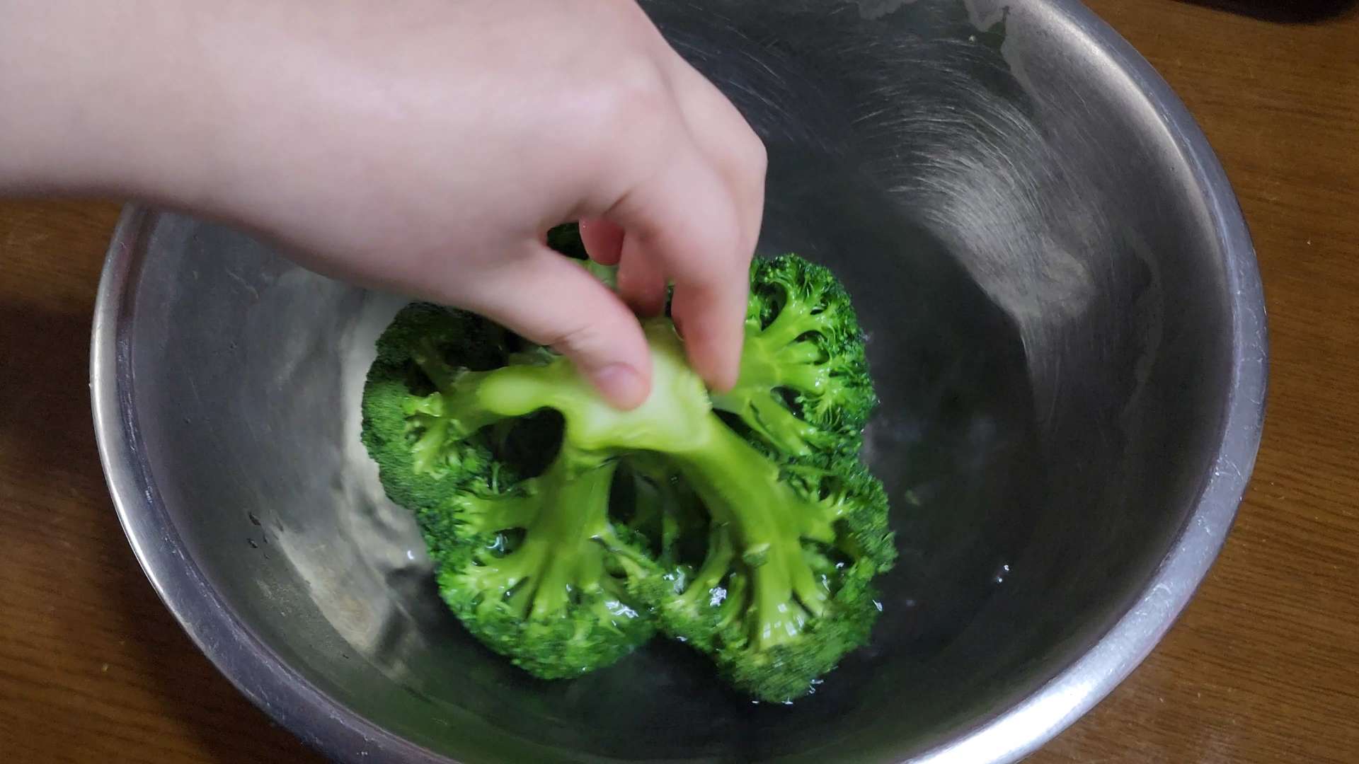 브로콜리는 뜨거운물에 담가 씻어 줍니다.
