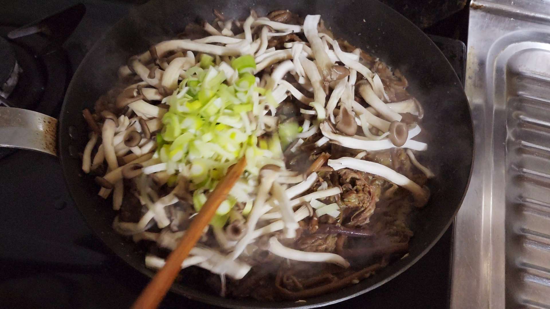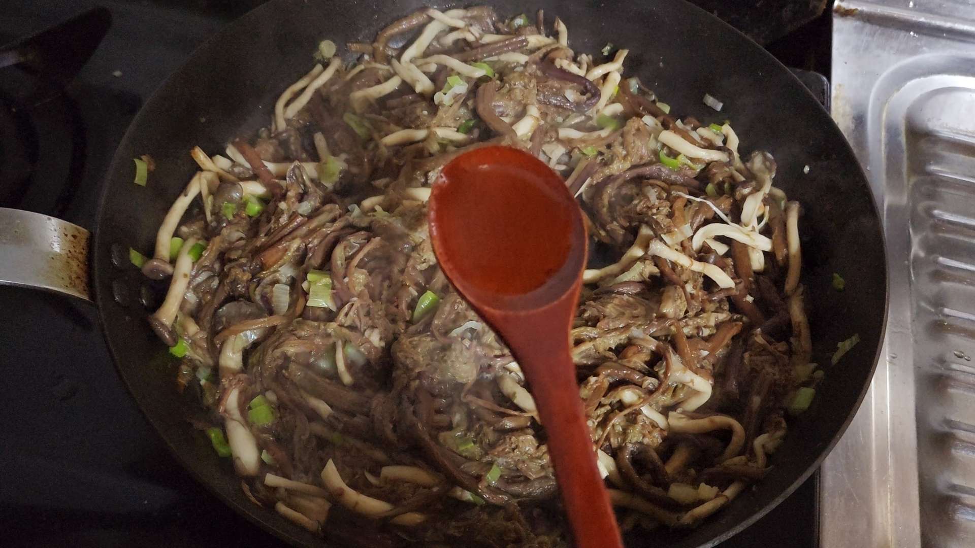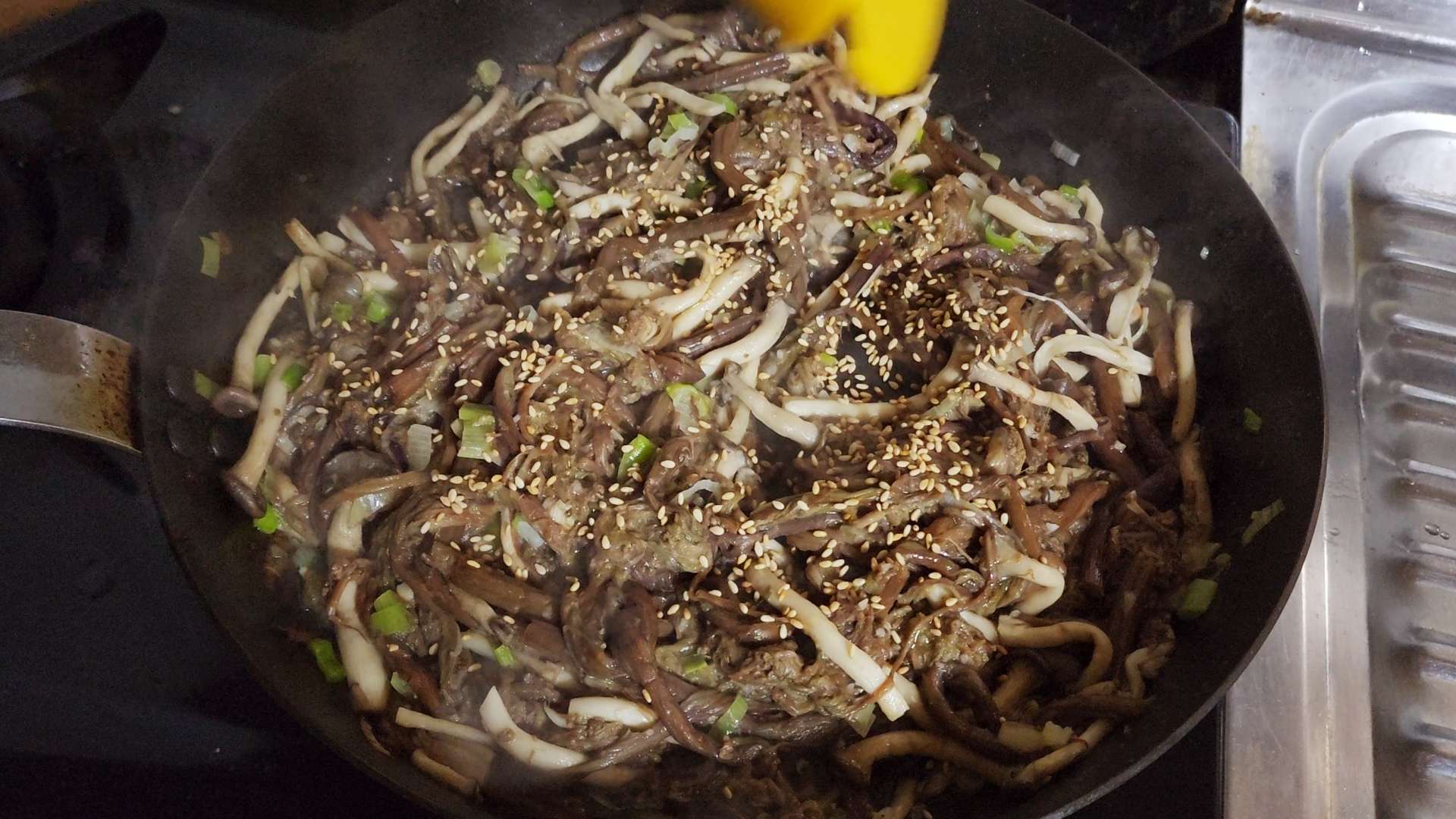 느타리버섯, 다진 대파를 넣고 1분 볶아줍니다.