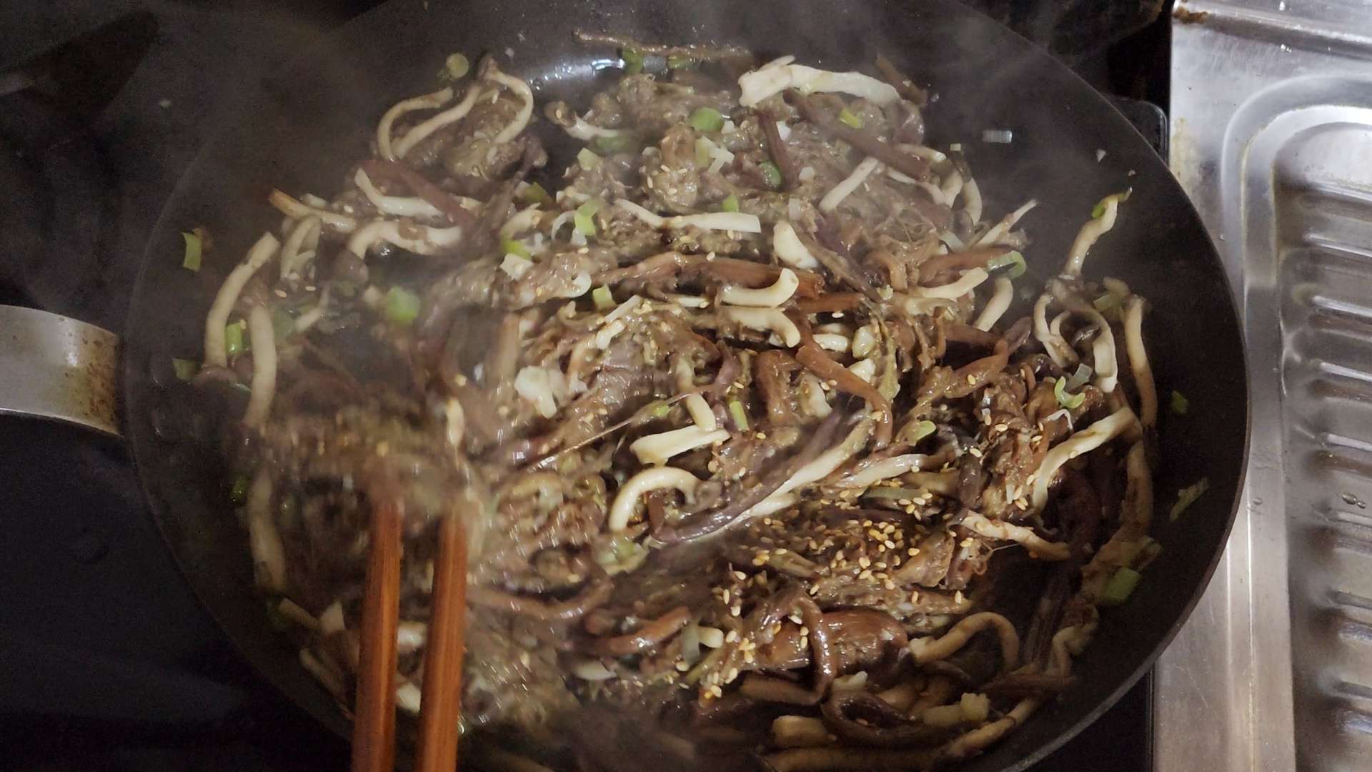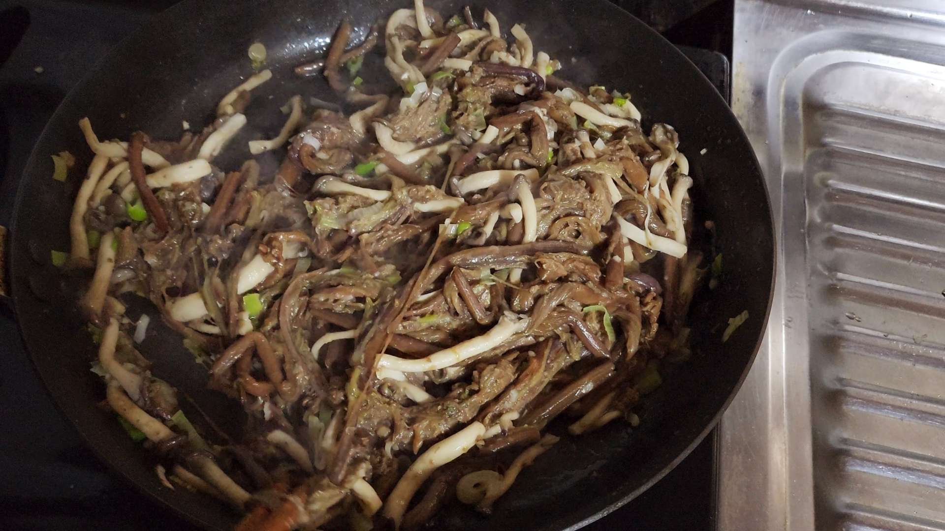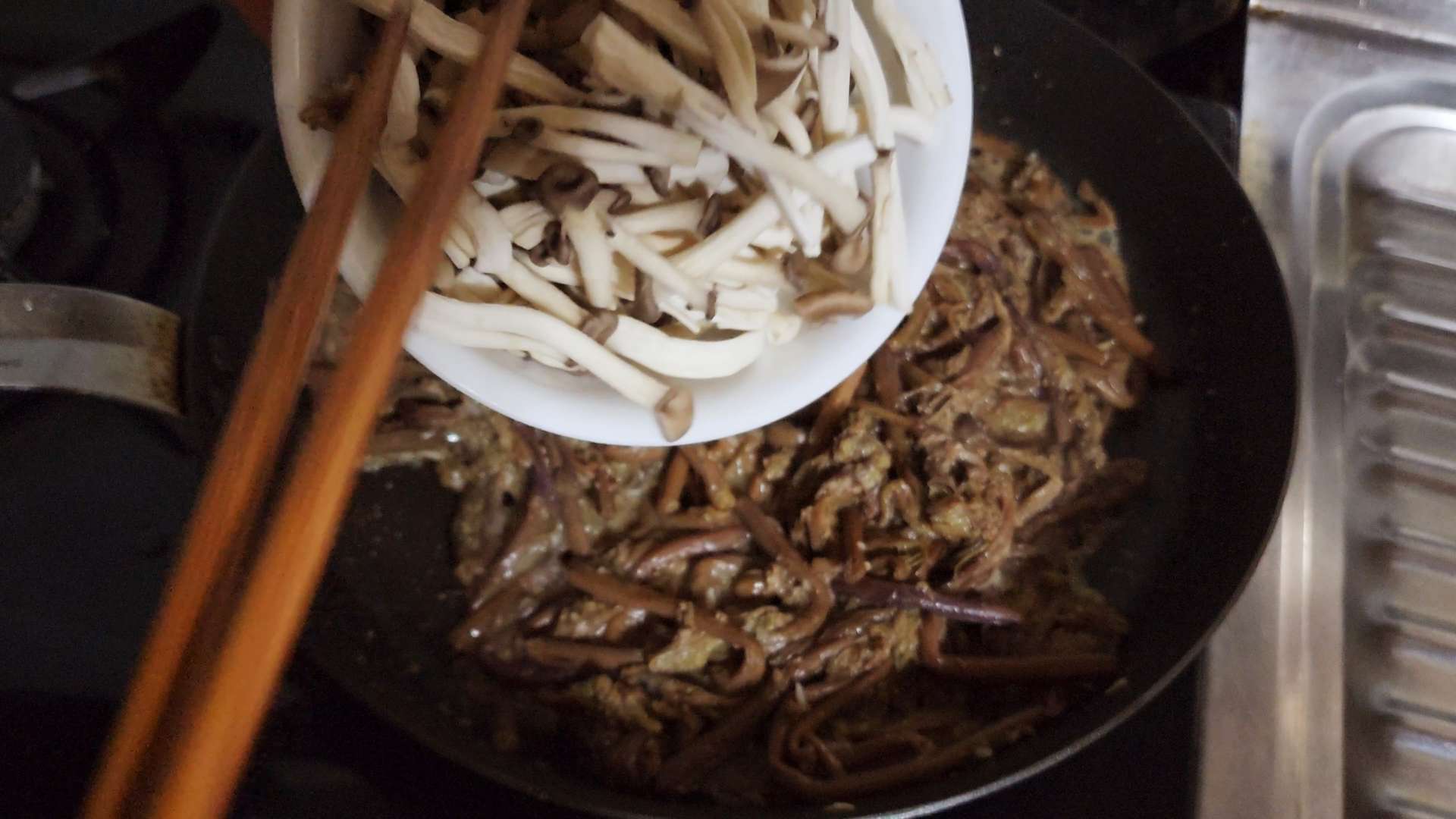 느타리버섯, 다진 대파를 넣고 1분 볶아줍니다.