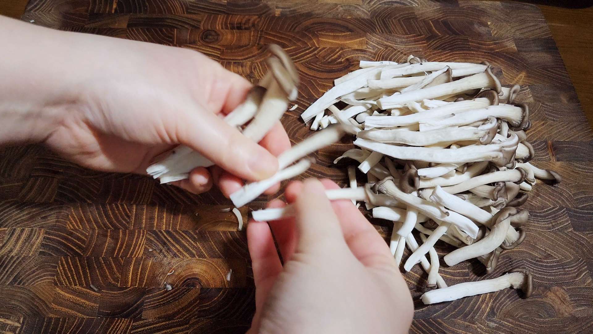 느타리버섯은 밑동을 자르고 찢어줍니다.