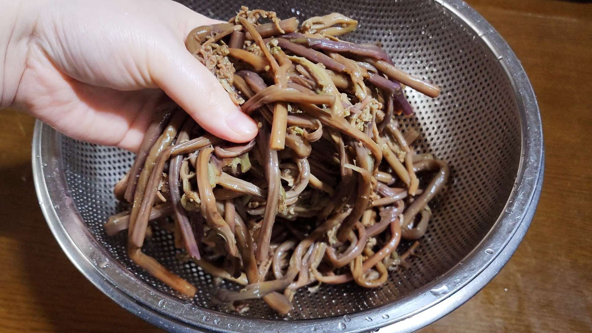 중불로 달군팬에 식용유를 넣고 고사리를 넣고 3분간 볶아줍니다.