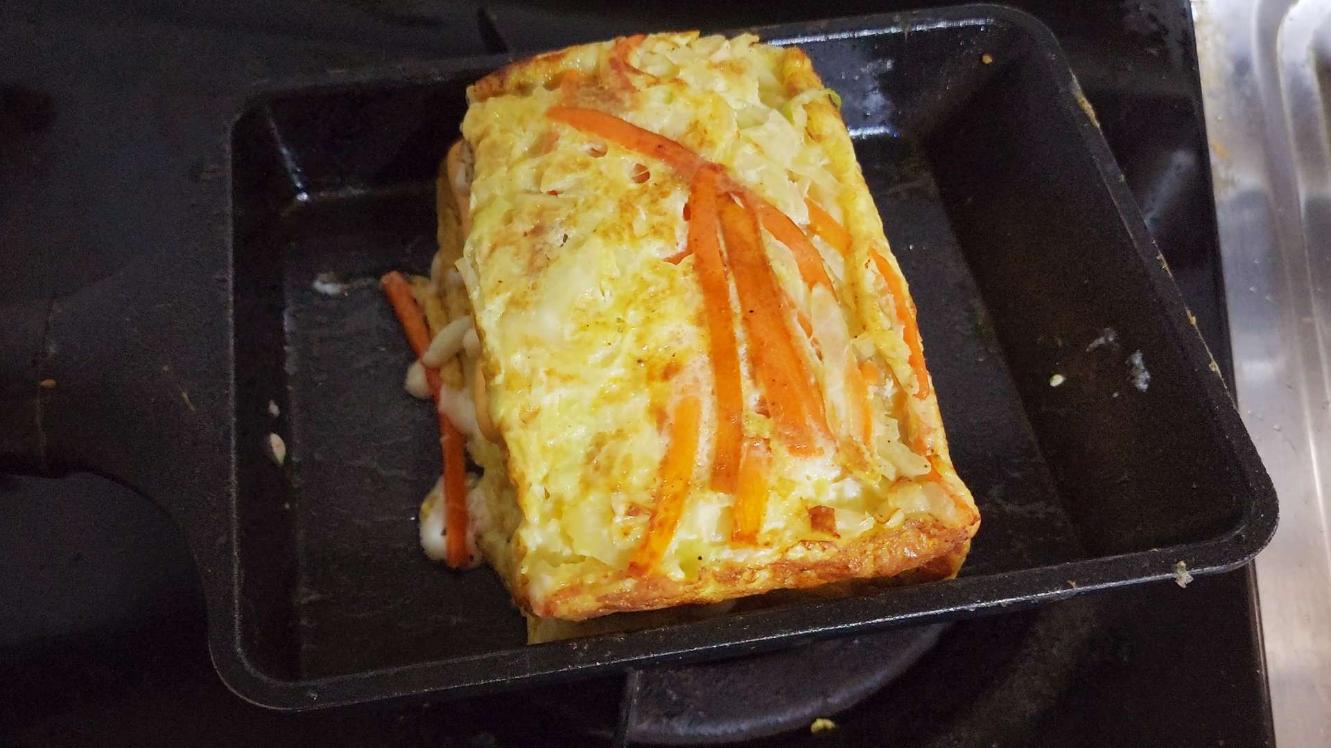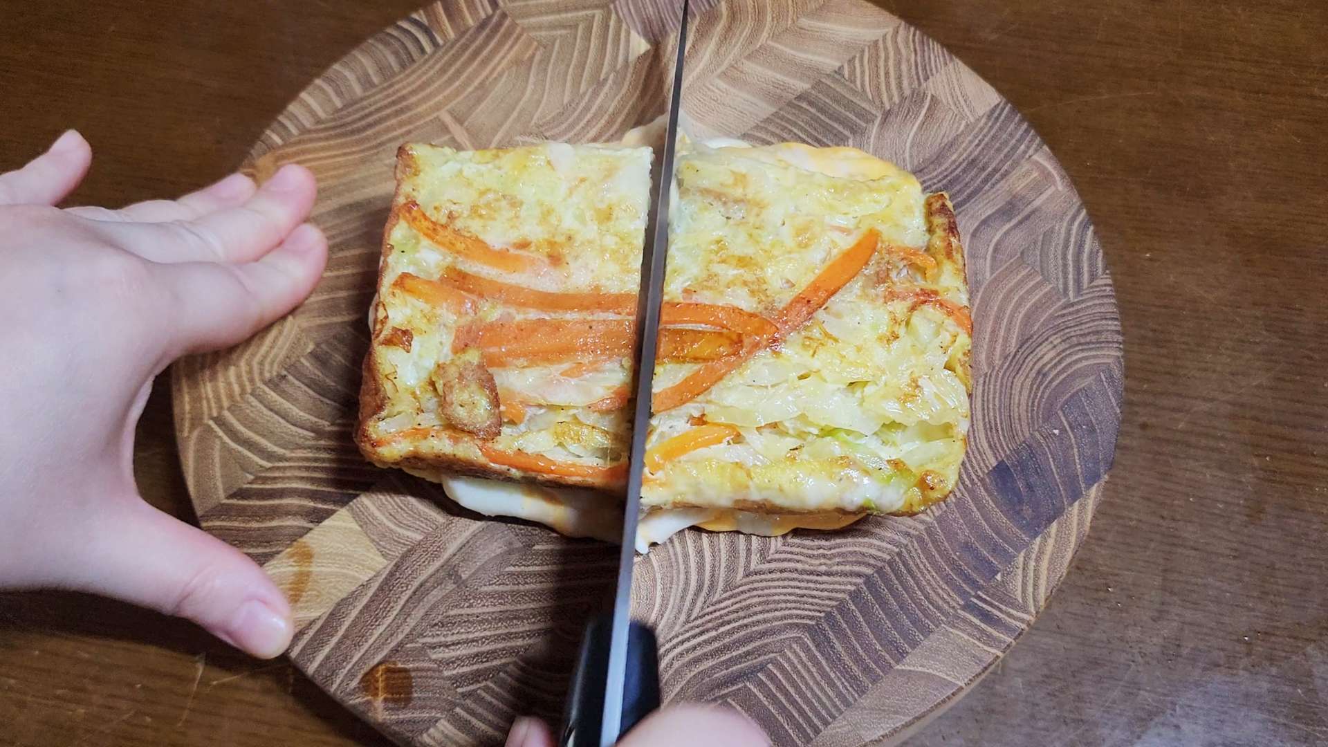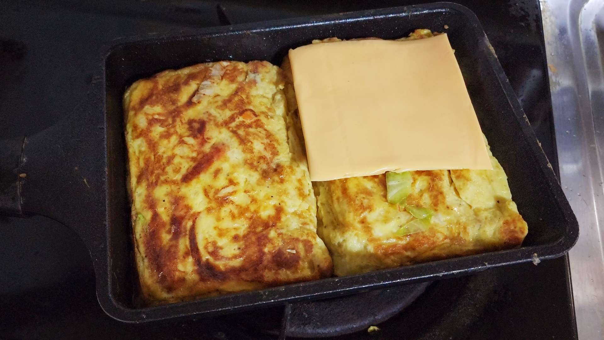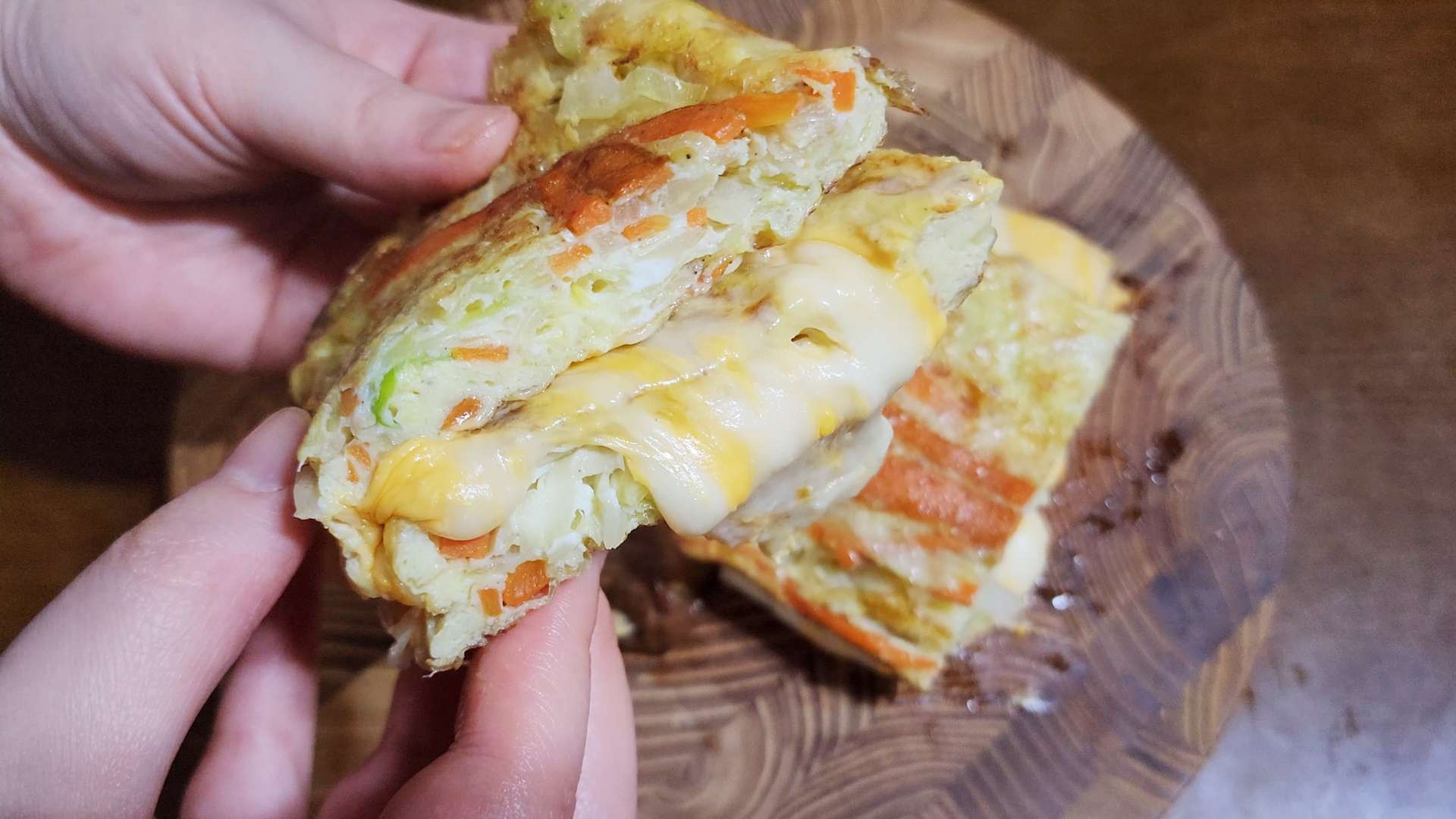 식빵 없이 양배추계란을 두툼하게 부쳐 건강에도 좋답니다.