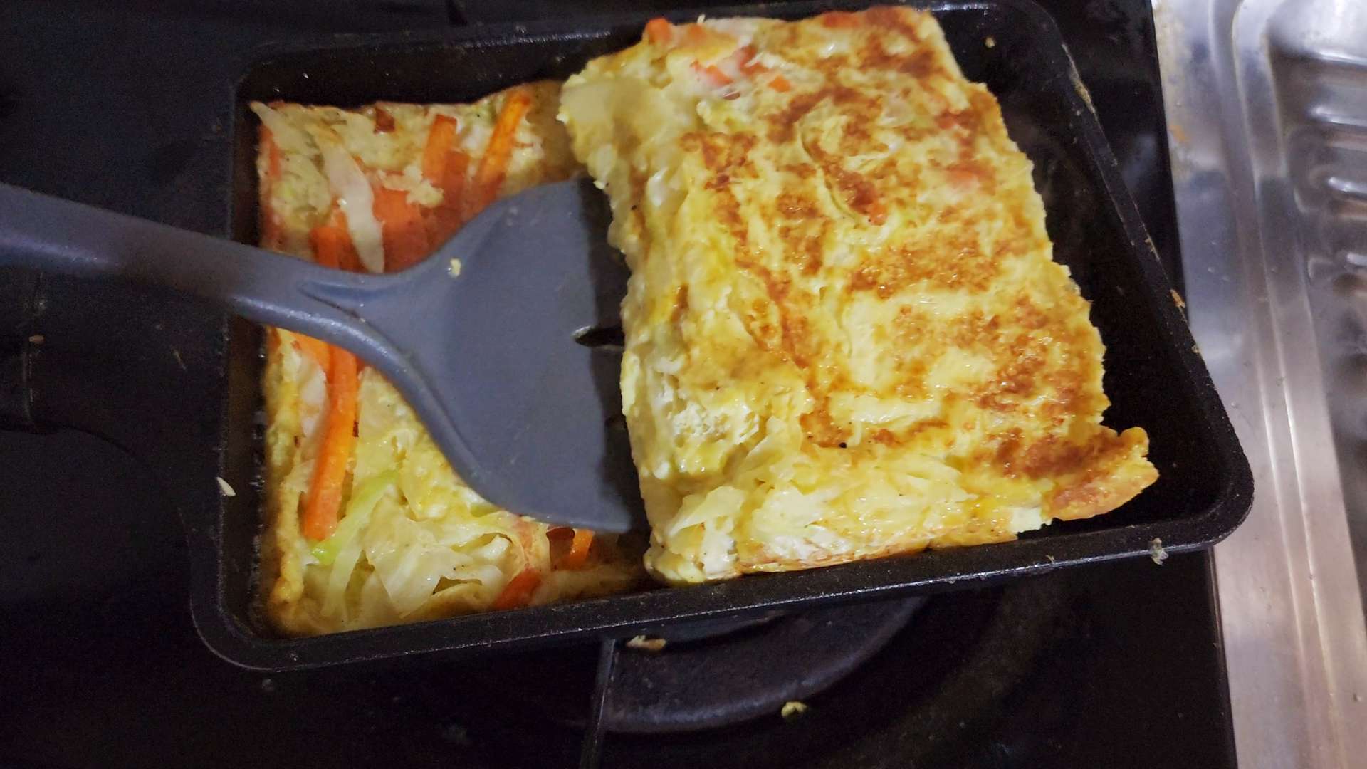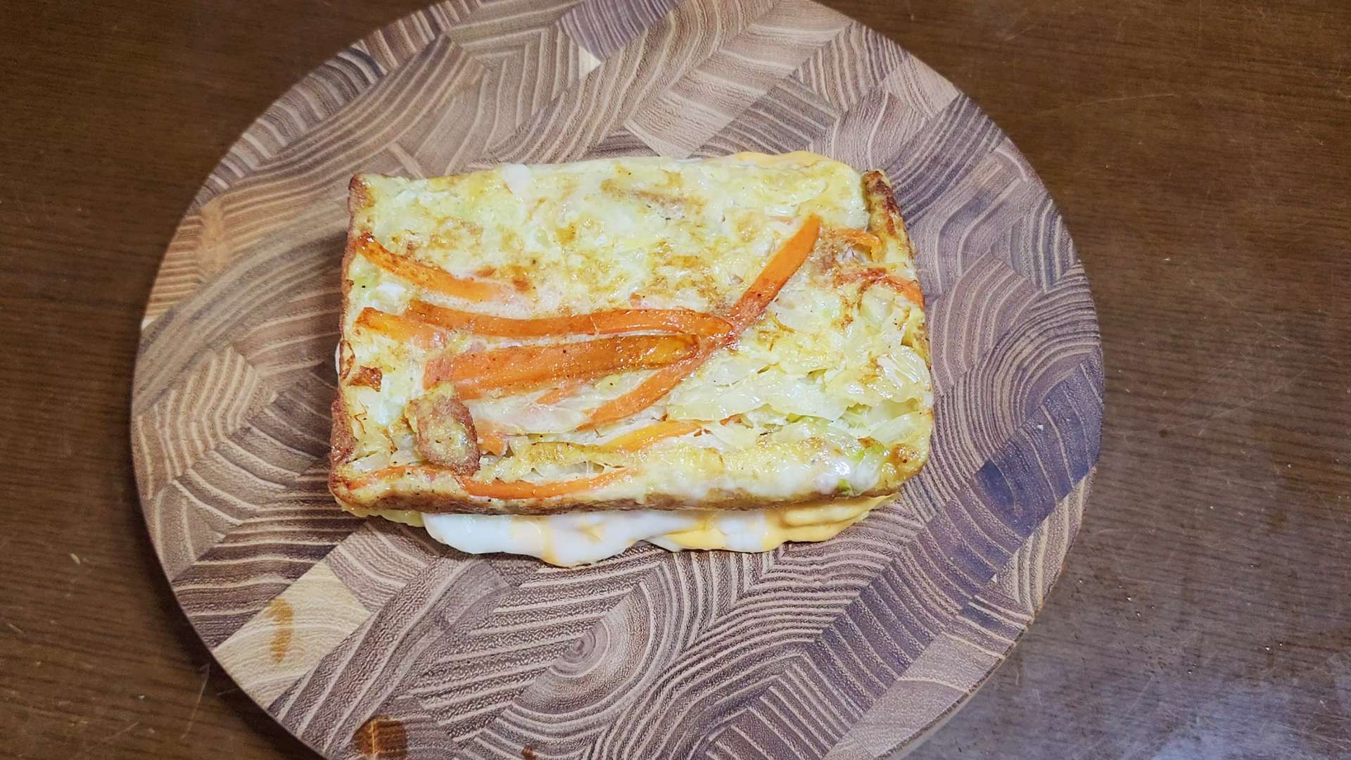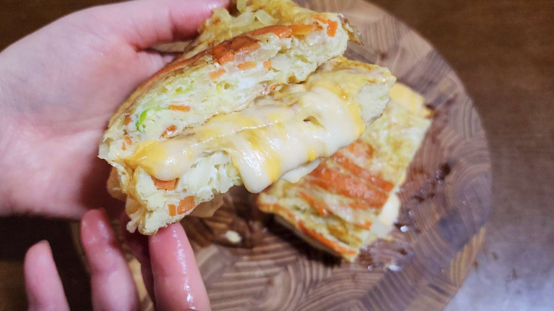 식빵 없이 양배추계란을 두툼하게 부쳐 건강에도 좋답니다.