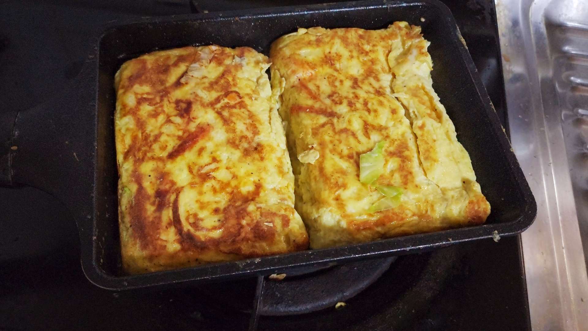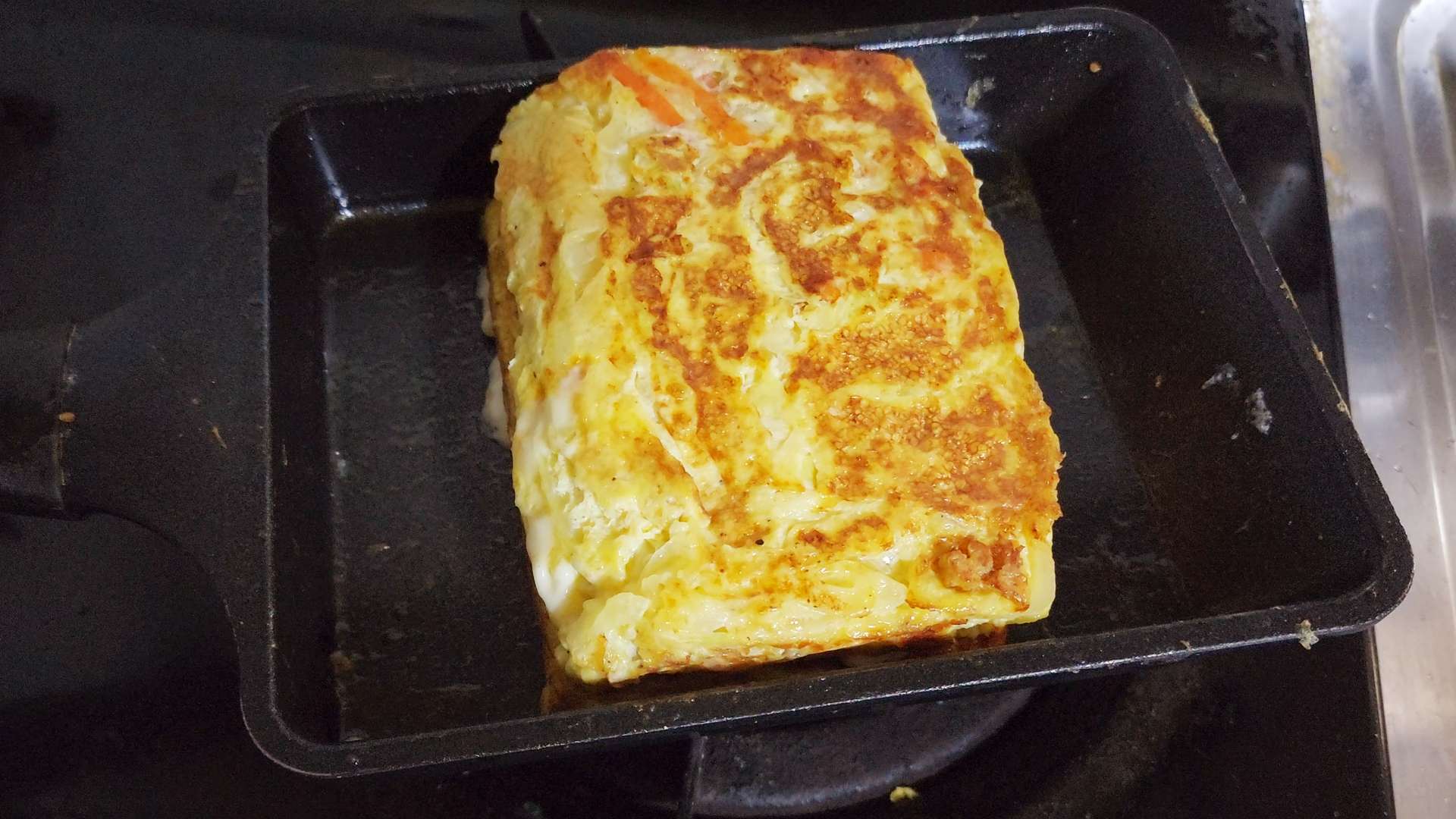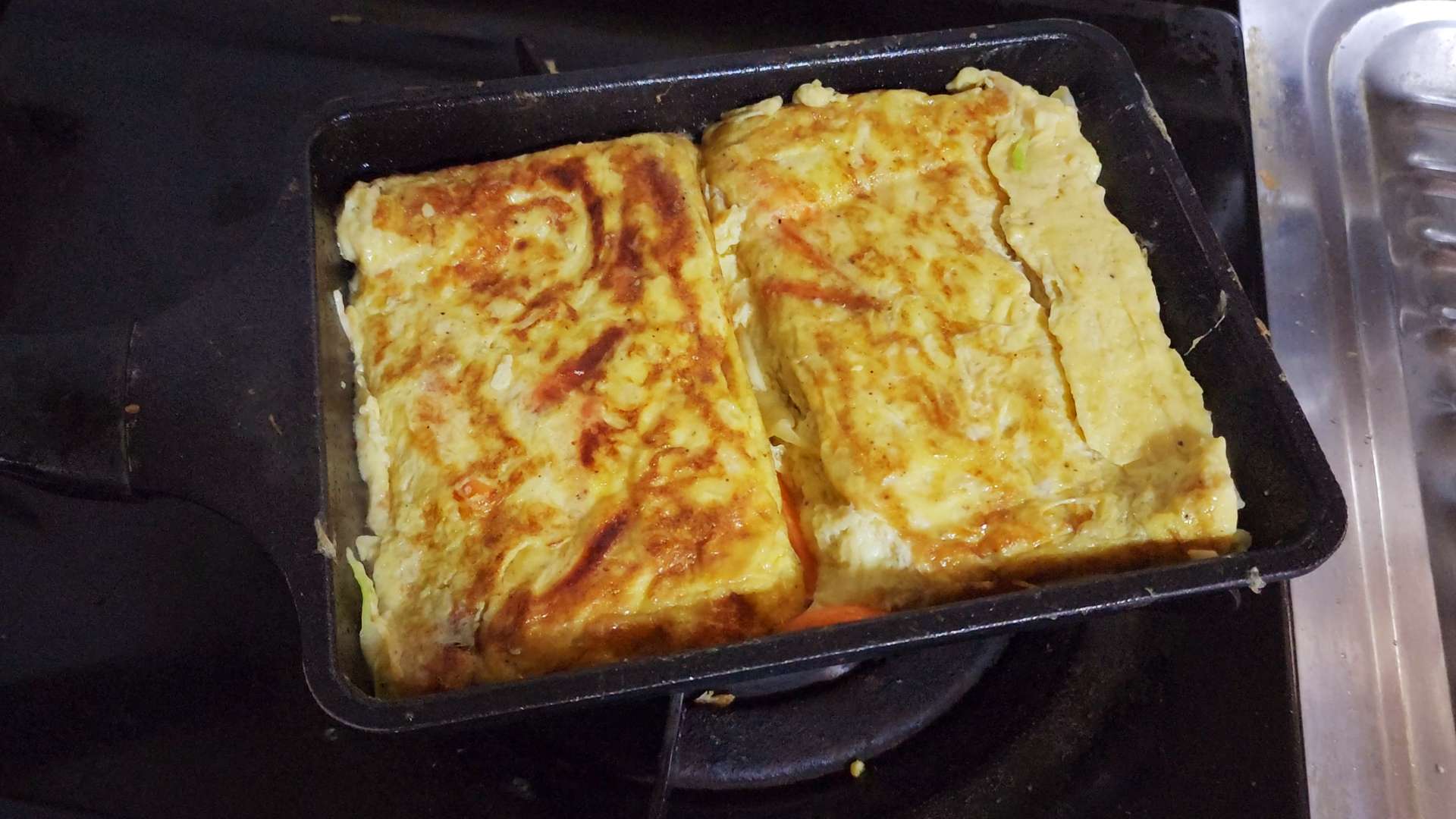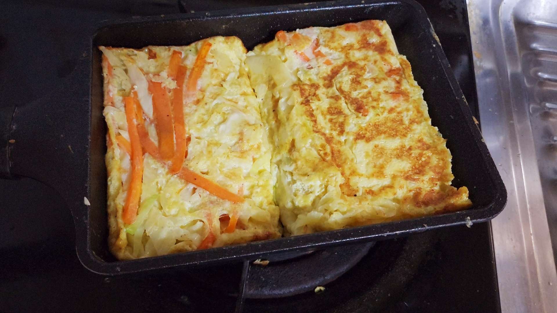 식빵 없이 양배추계란을 두툼하게 부쳐 건강에도 좋답니다.
