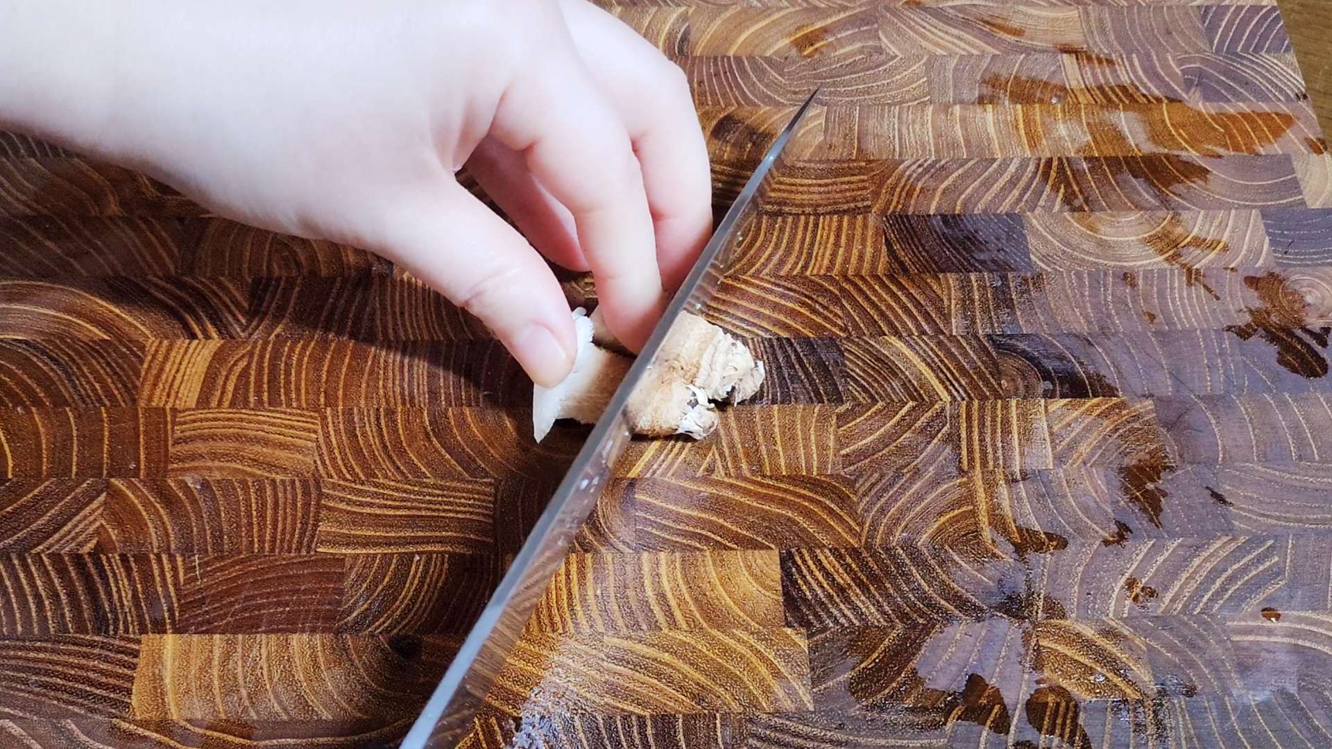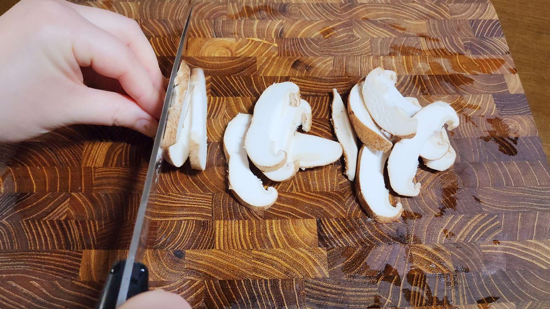 표고버섯은 밑동을 제거하고 얇게 슬라이스 해줍니다.