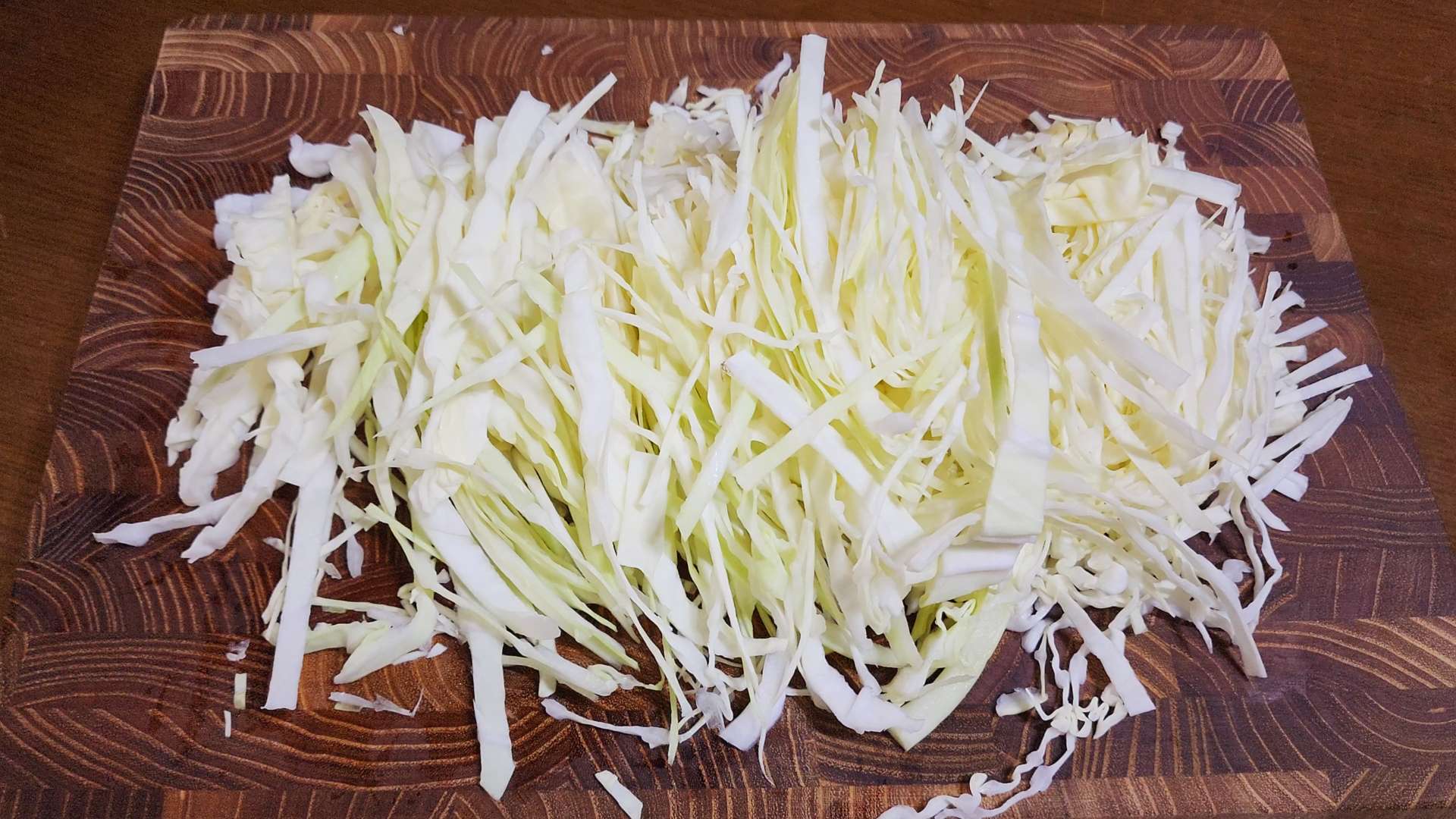 양배추의 심지를 잘라내고 얇게 채썰어줍니다.