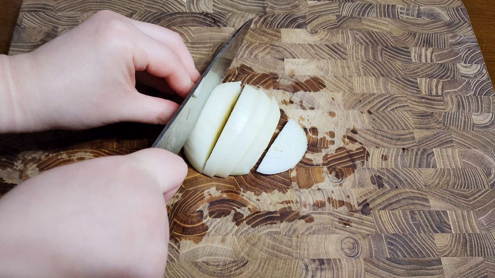 양파는 1cm 두께로 슬라이스 해줍니다.