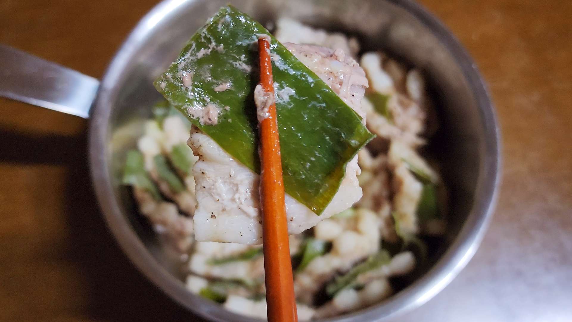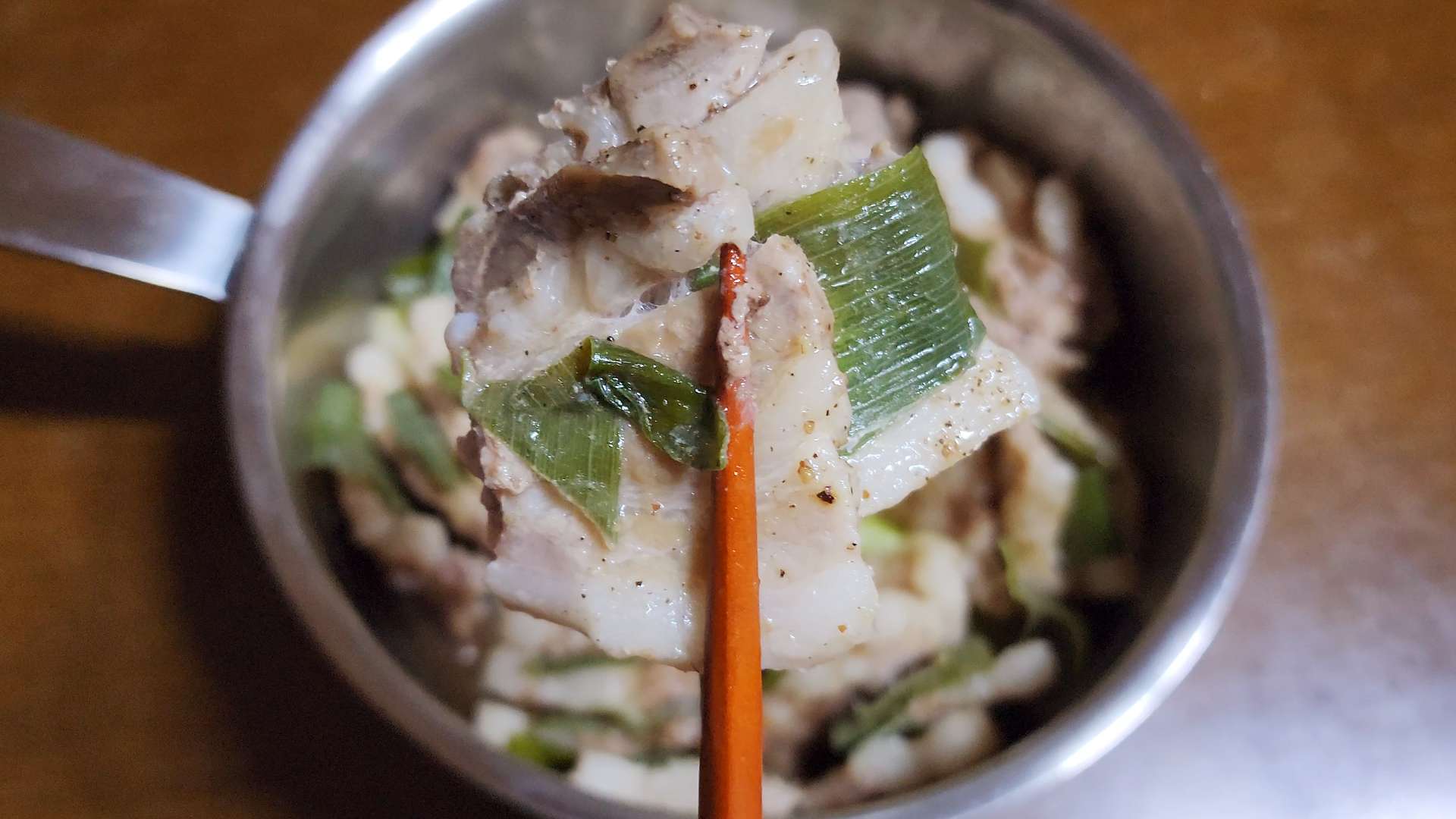 담백하고 쫄깃한 돼지고기와 아삭한 대파를 같이 먹으면 맛있답니다.