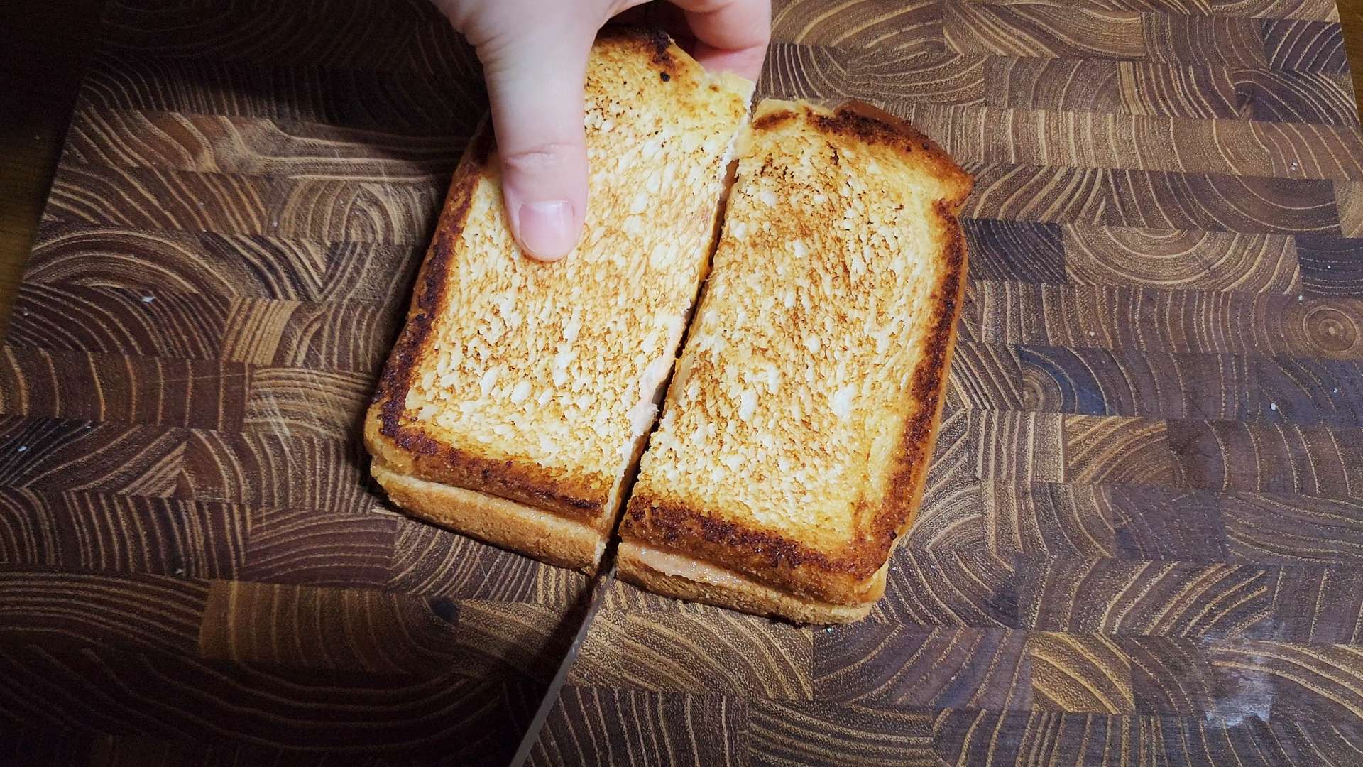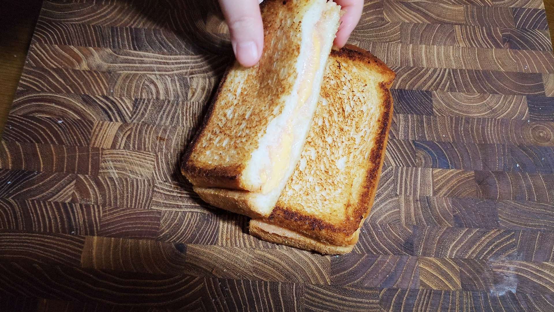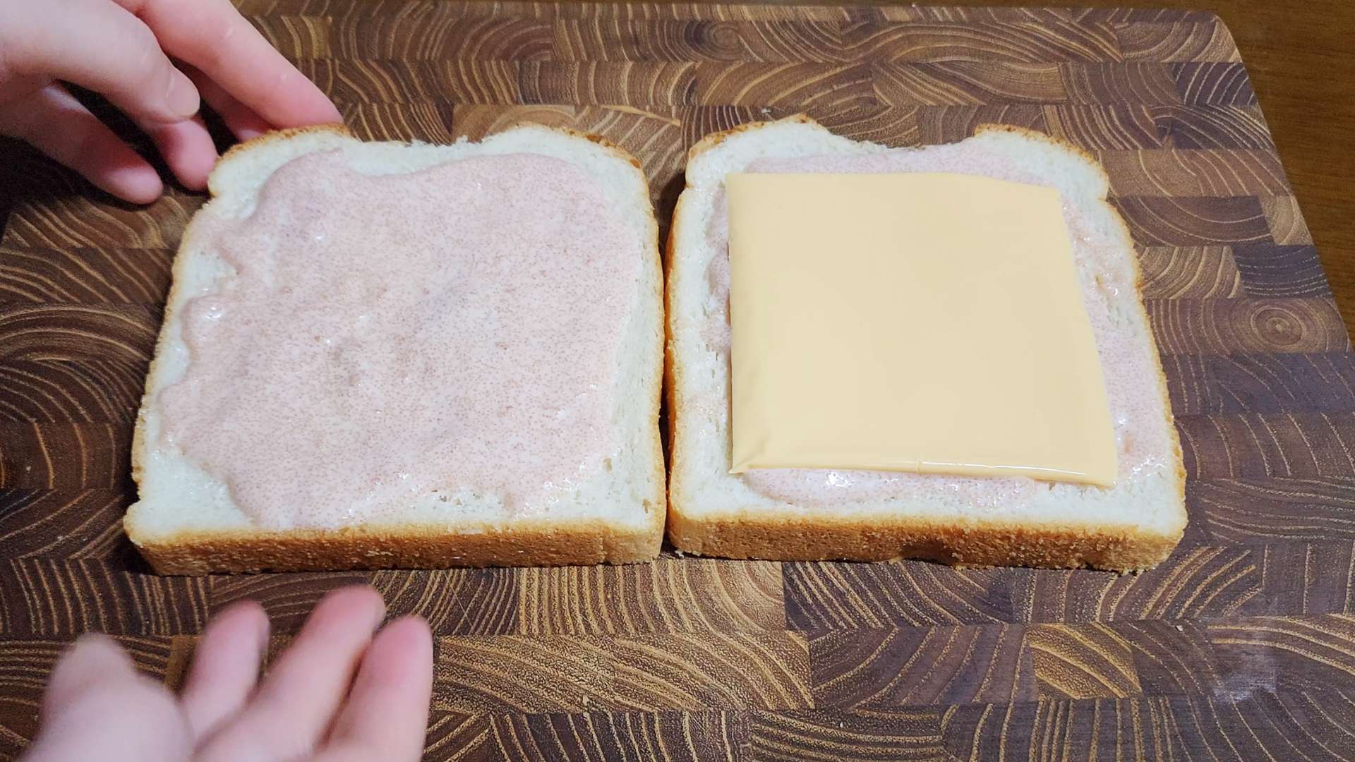 슬라이스 치즈 1장을 올리고 윗면을 남은 식빵으로 덮어줍니다.