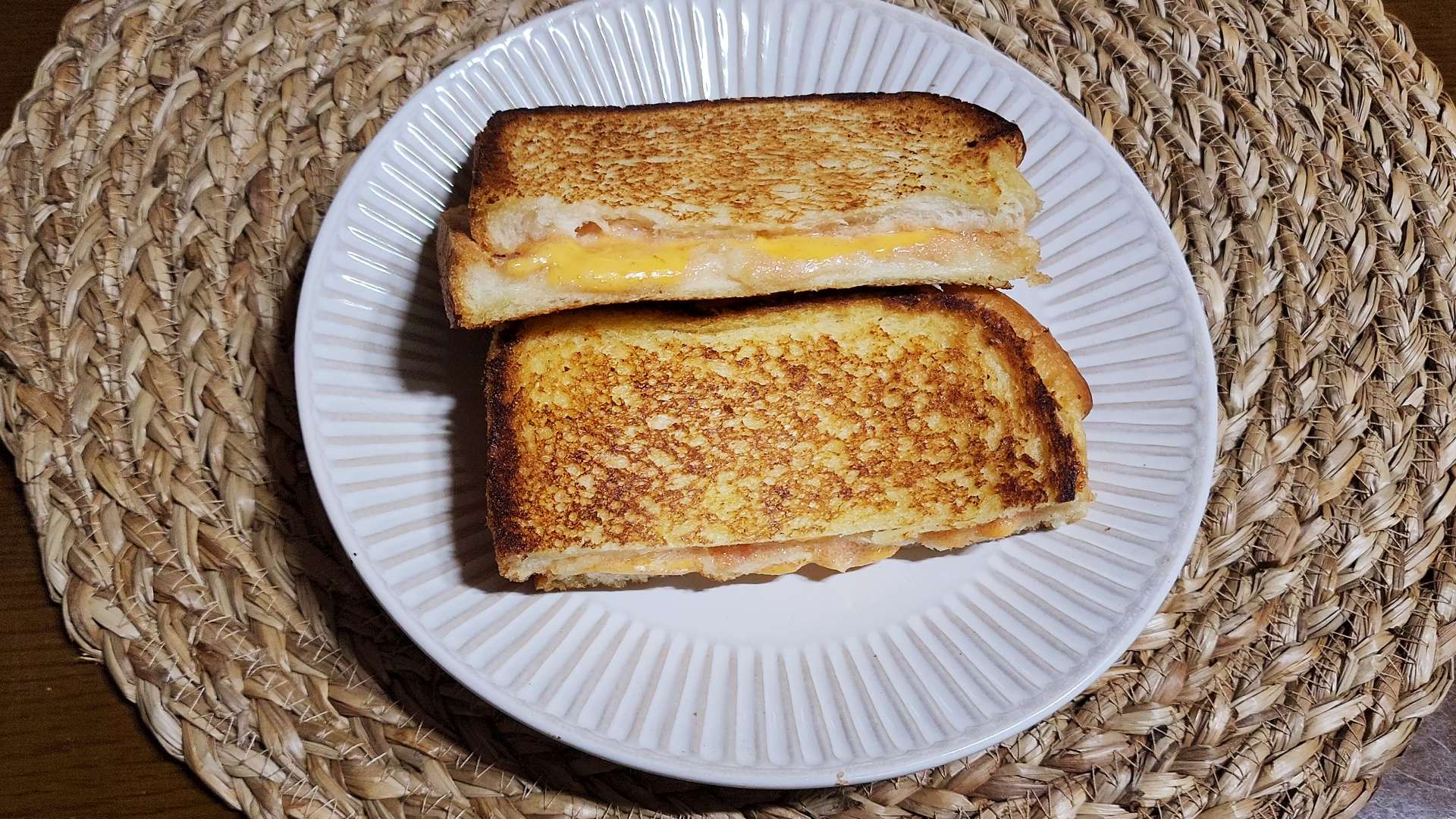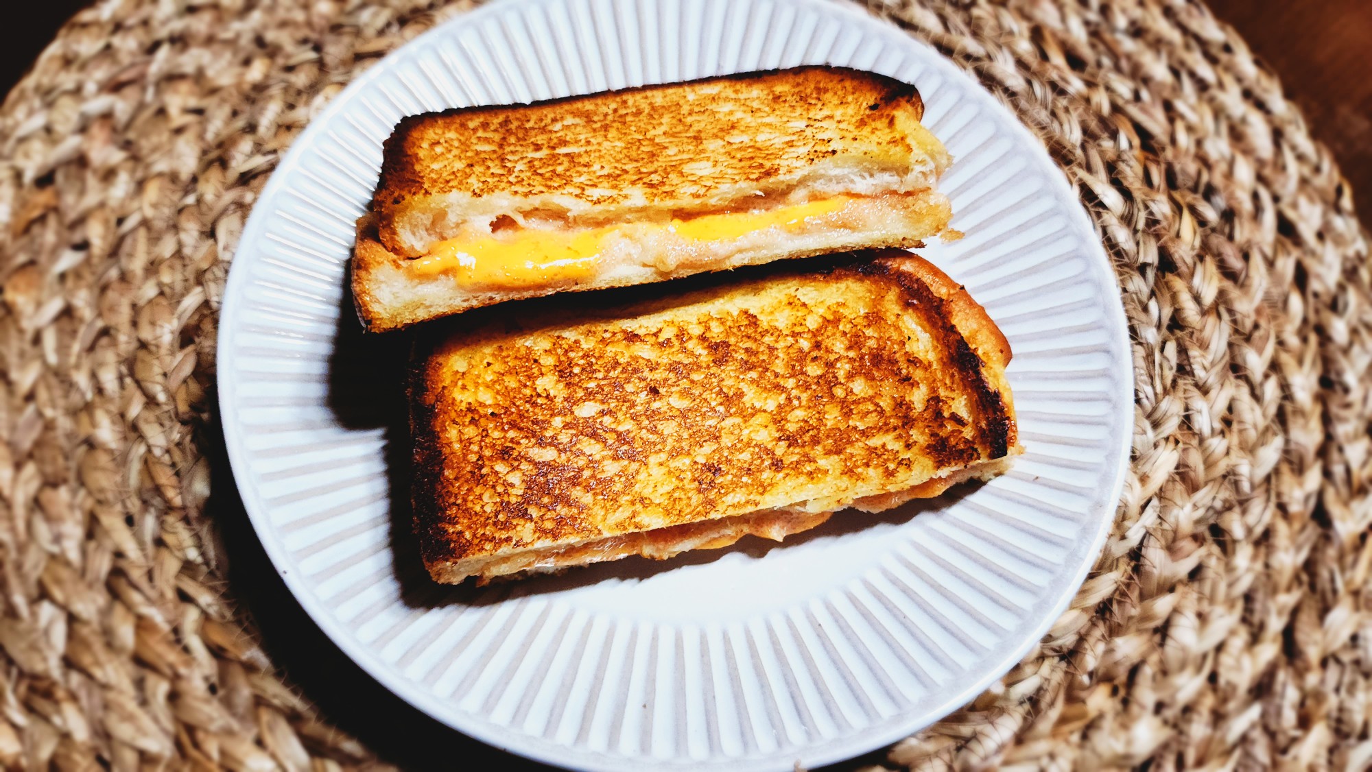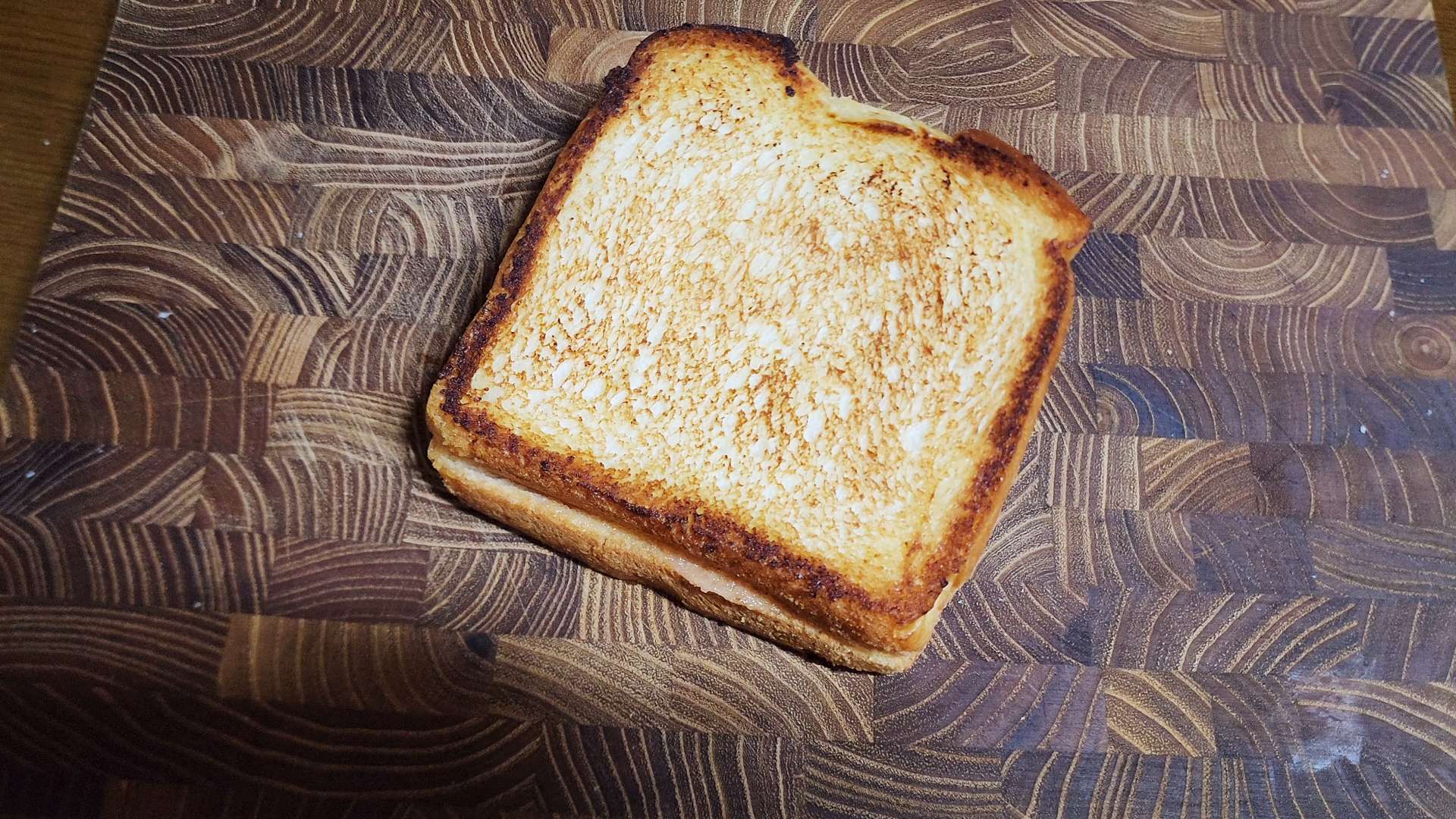 슬라이스 치즈 1장을 올리고 윗면을 남은 식빵으로 덮어줍니다.