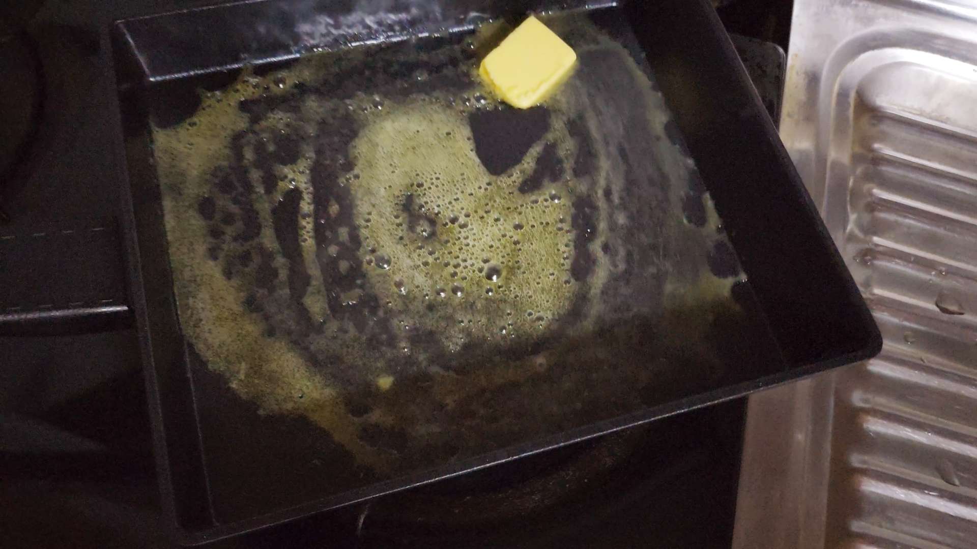 중불로 달군팬에 버터 20g을 녹여줍니다.