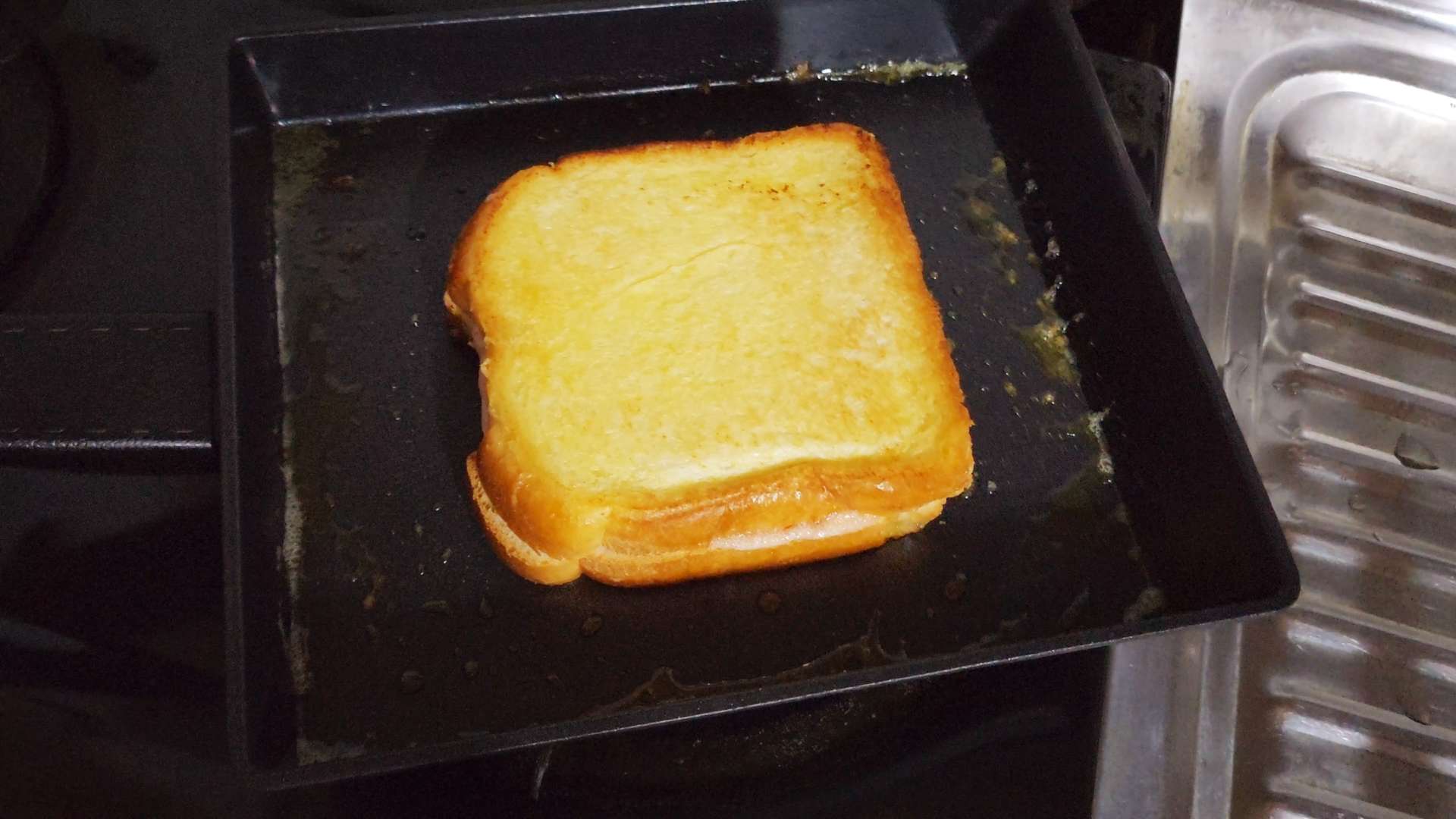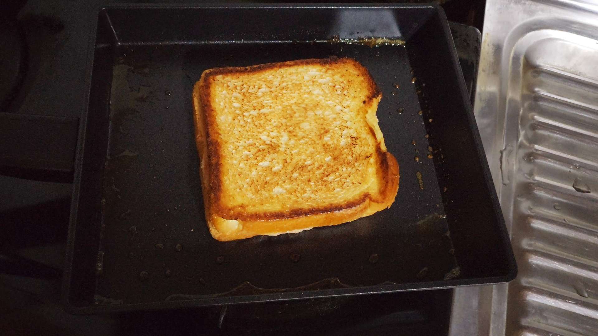 빵을 올리고 치즈가 녹을 때까지 구워줍니다.