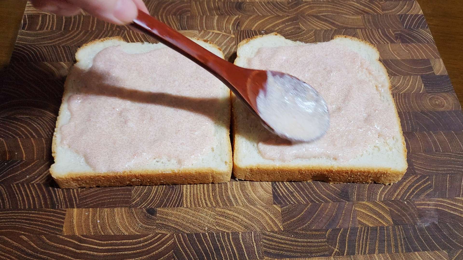 식빵 2장 안쪽 면에 명란마요를 발라줍니다.
