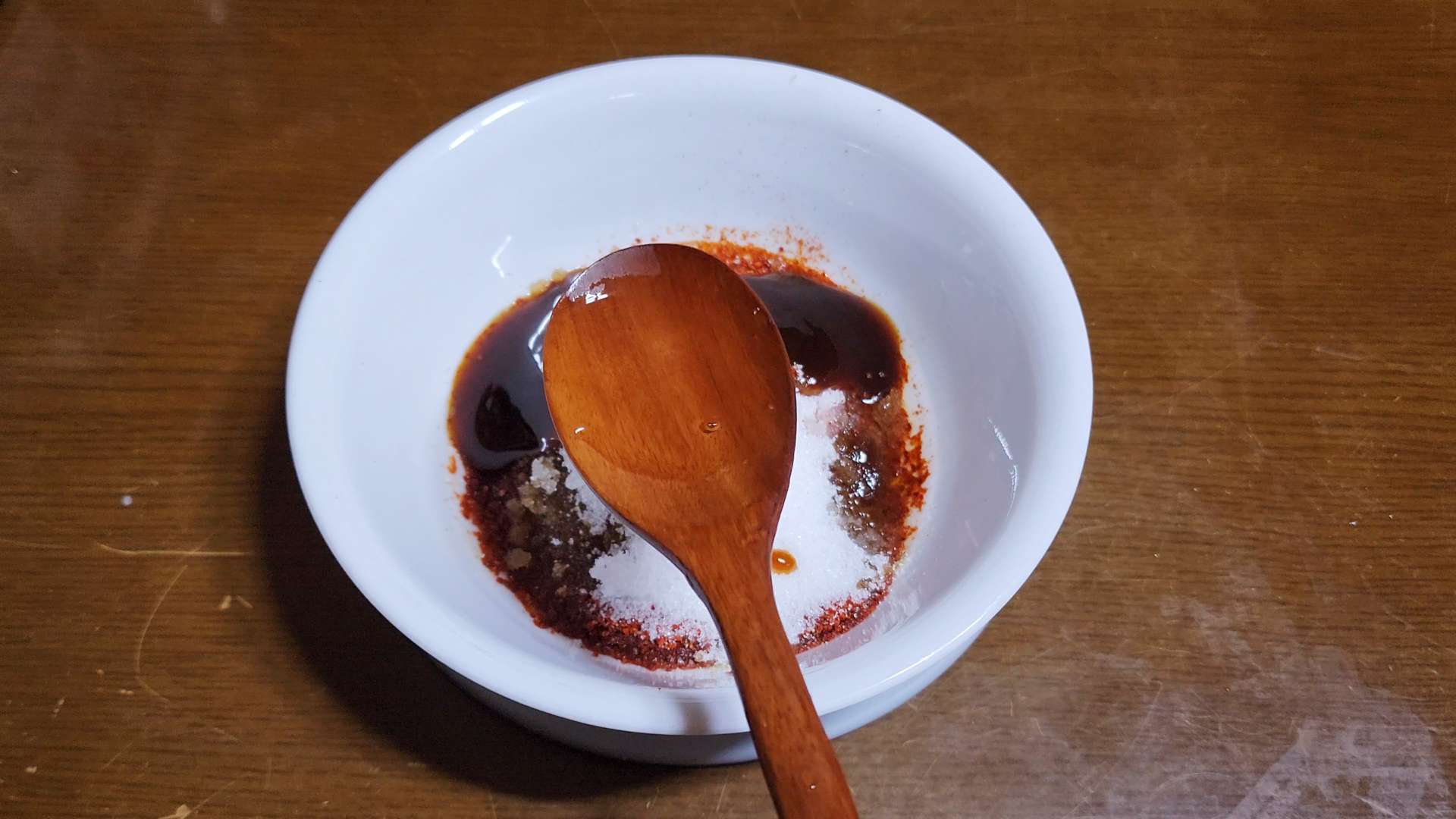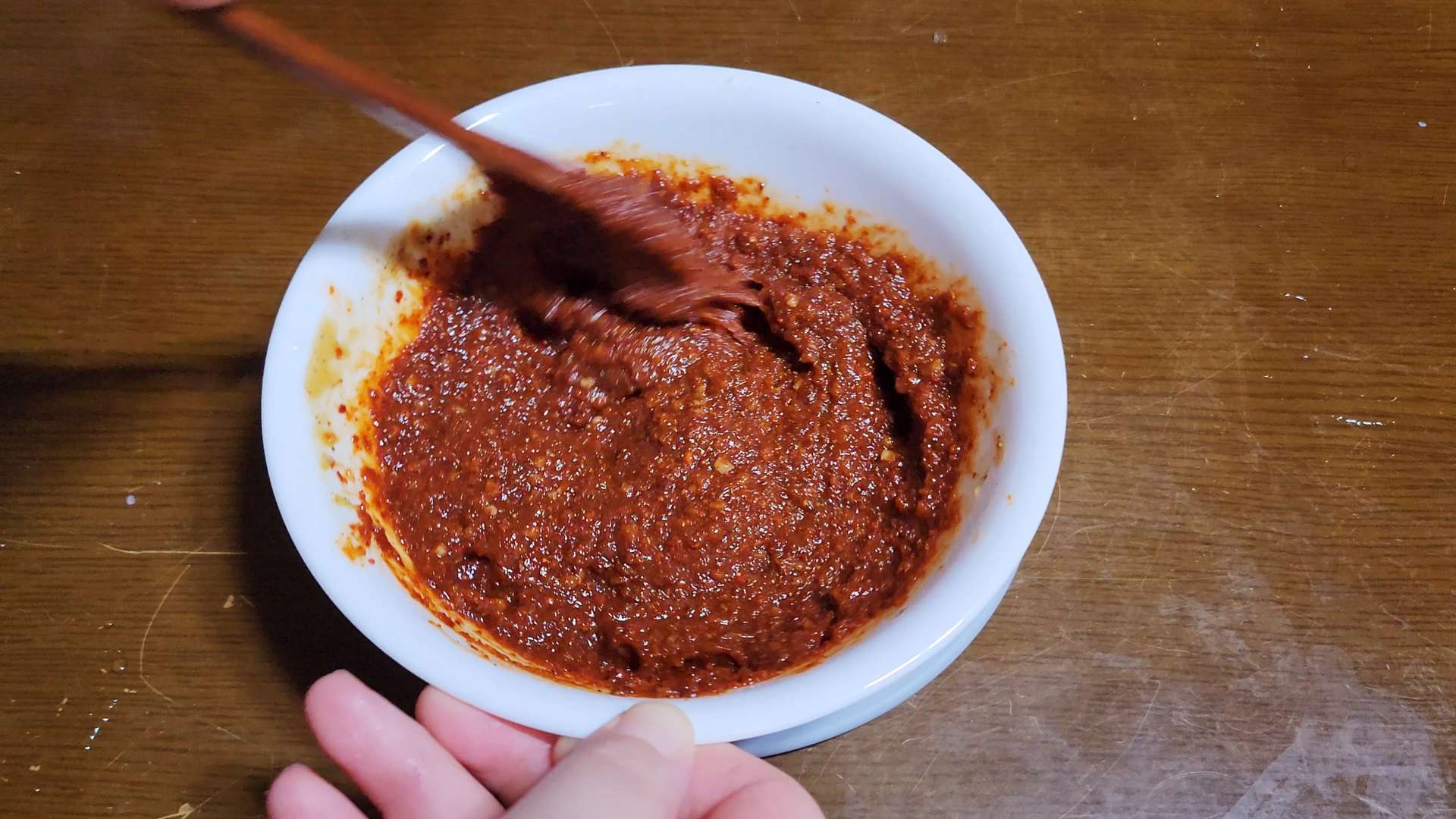 재료: 간장 5T, 고춧가루 4T, 설탕 3T, 굴소스 2T,