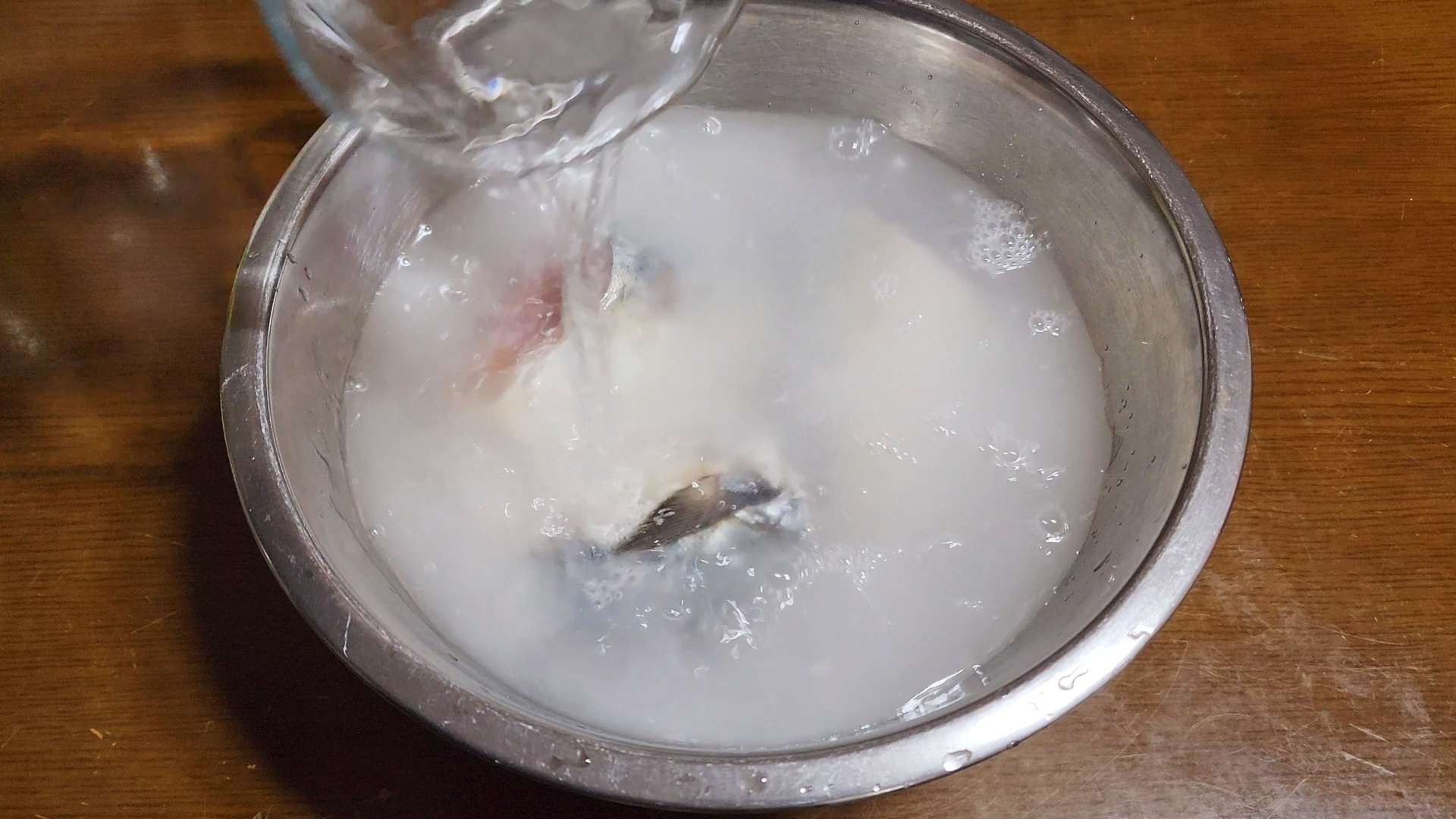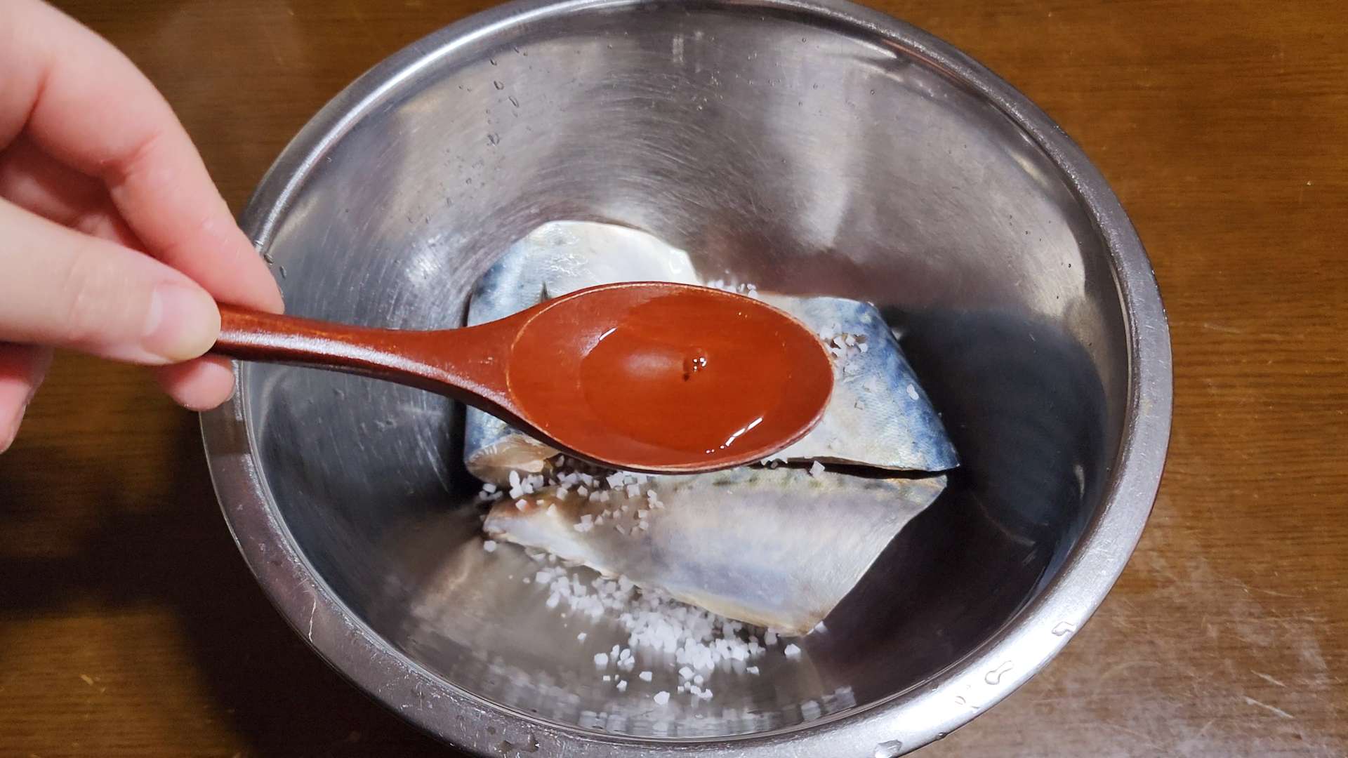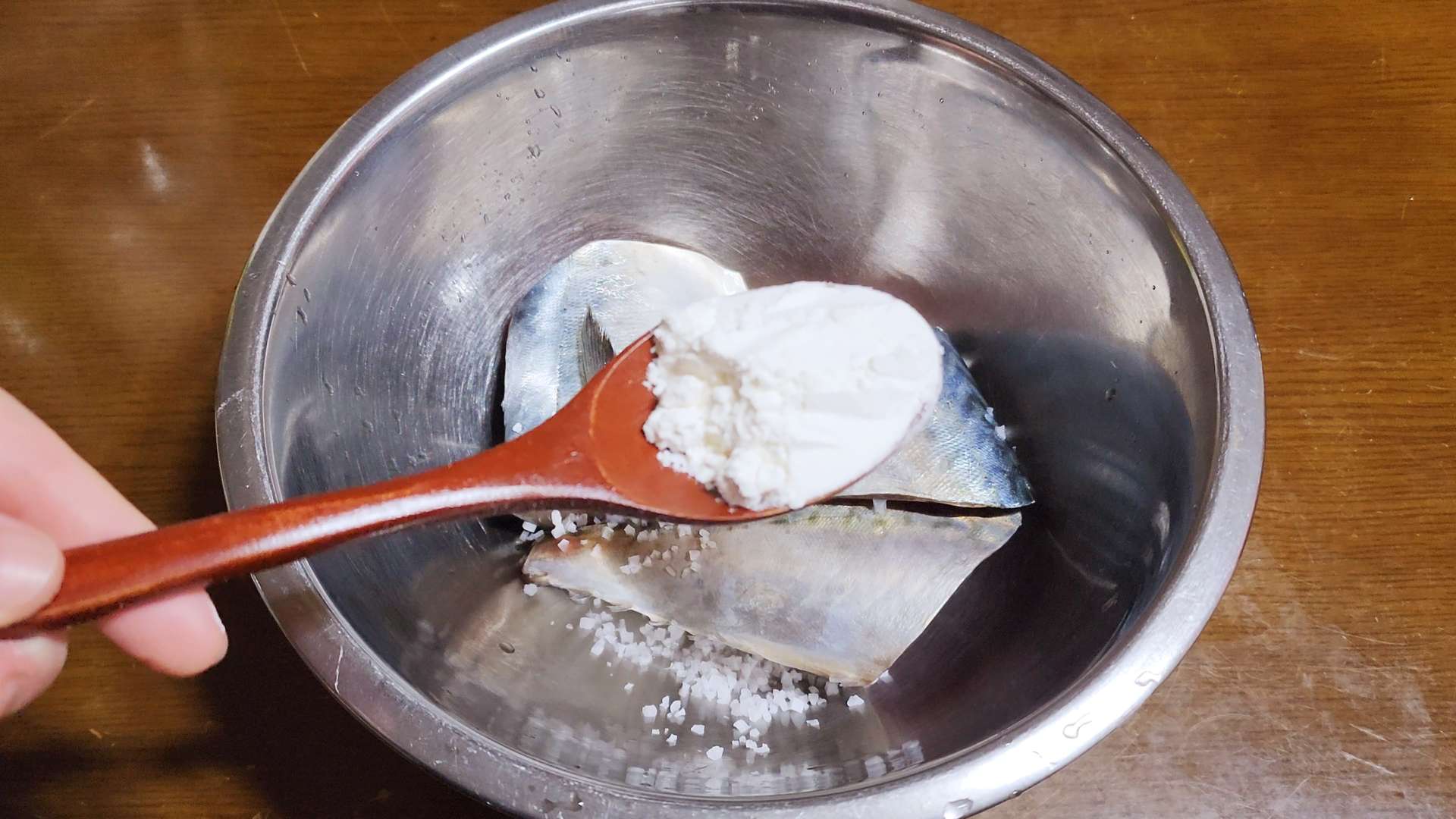 고등어 손질: 굵은소금 1T, 식초 1T, 밀가루 1T, 물