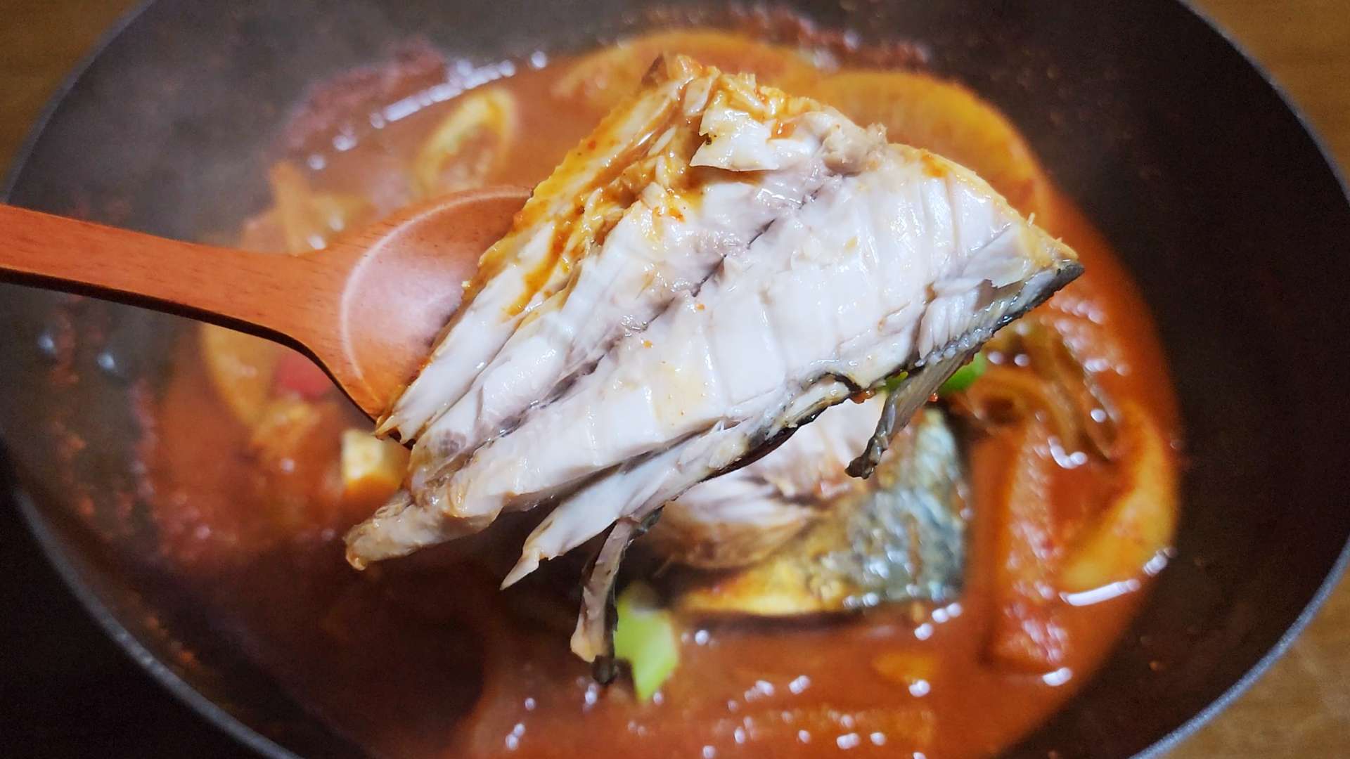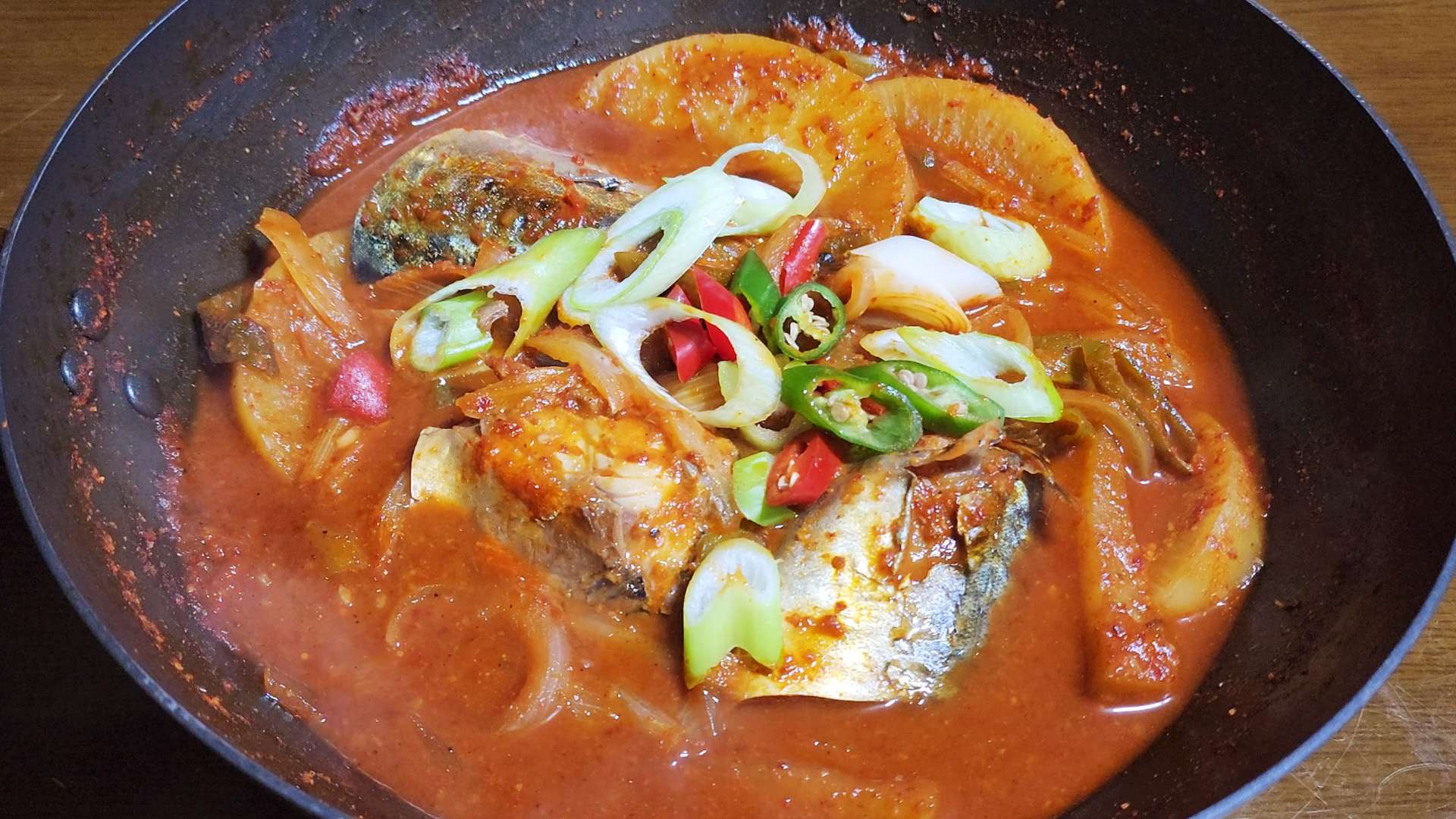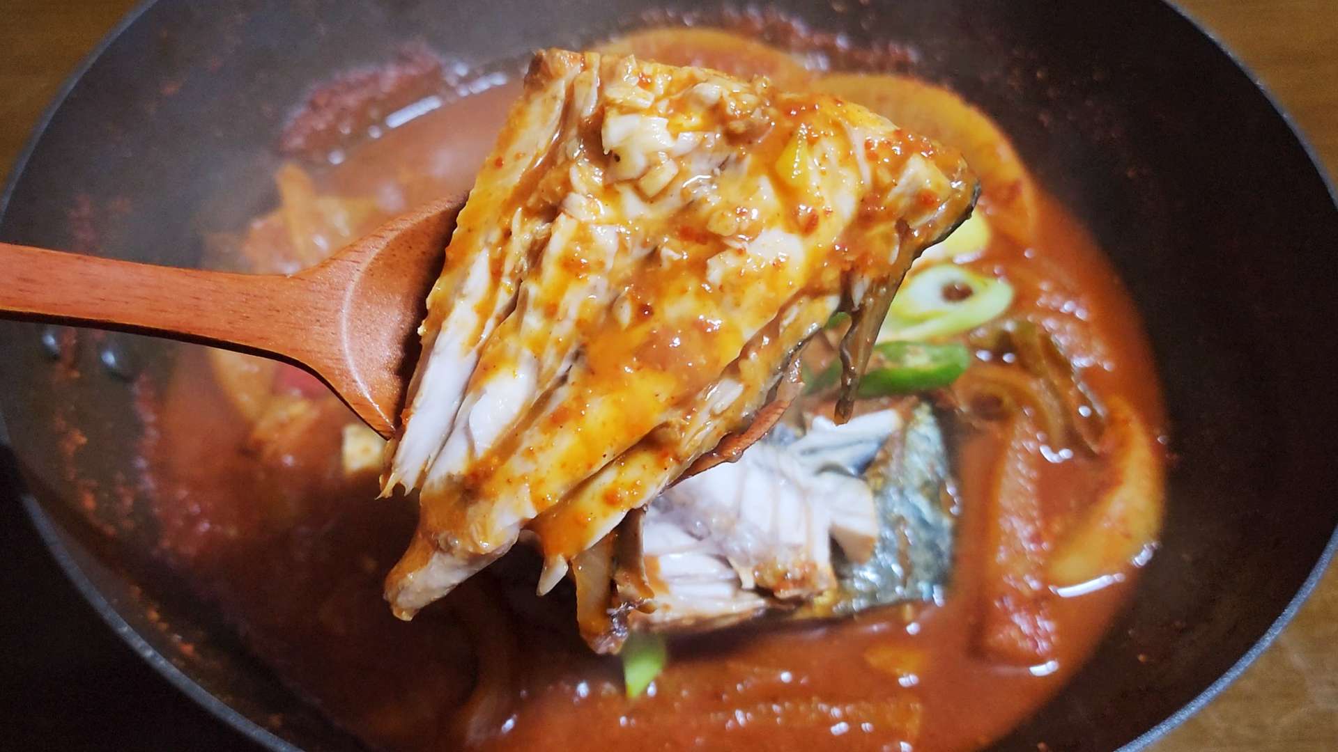 칼칼하고 매콤한 양념을 무와 고등어를 같이 먹으면 맛있답니다.