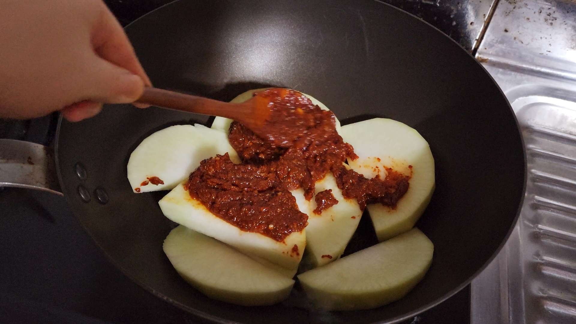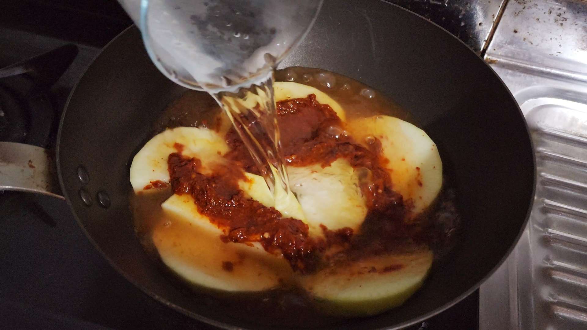 양념장 2T, 물 500ml 넣고 강불로 끓여줍니다.