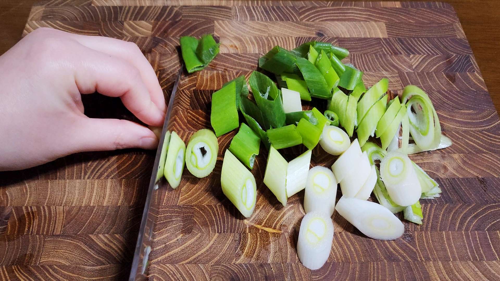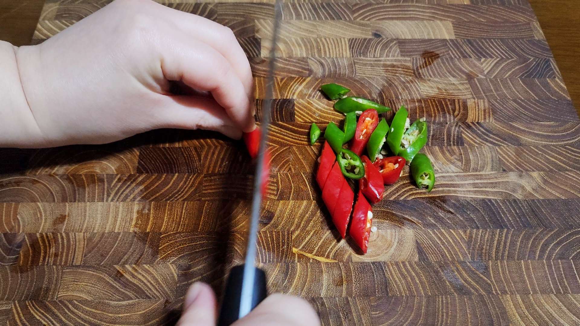 홍고추, 풋고추는 어슷 썰어줍니다.