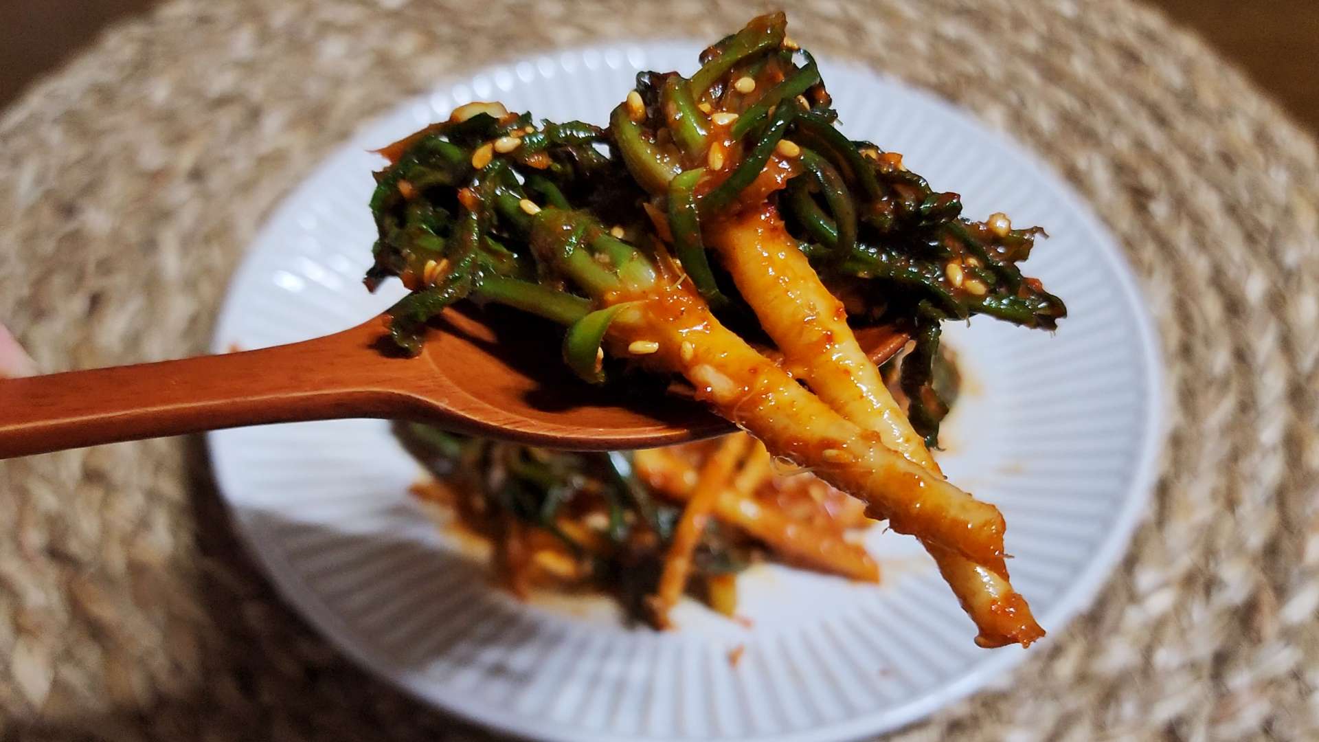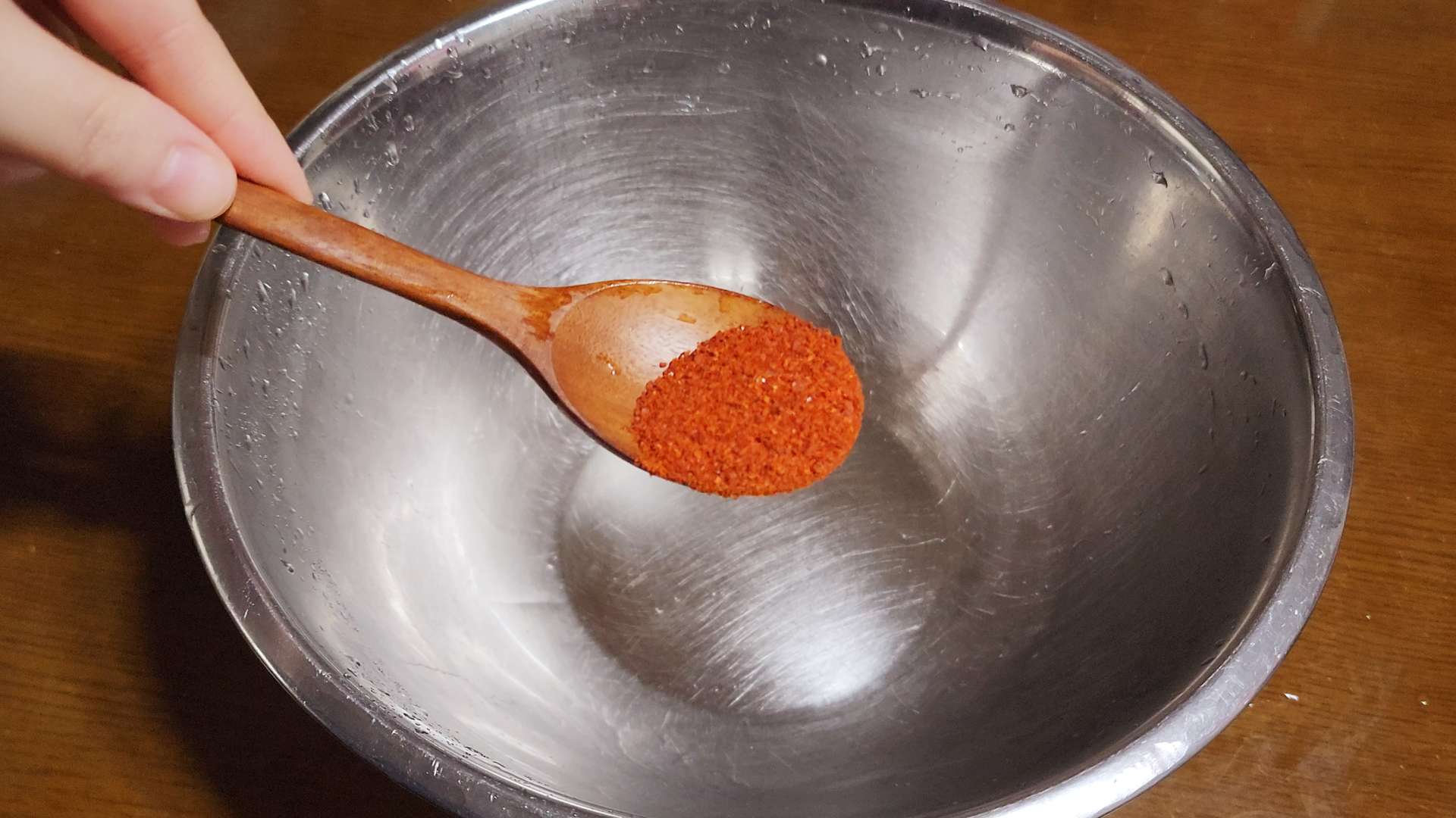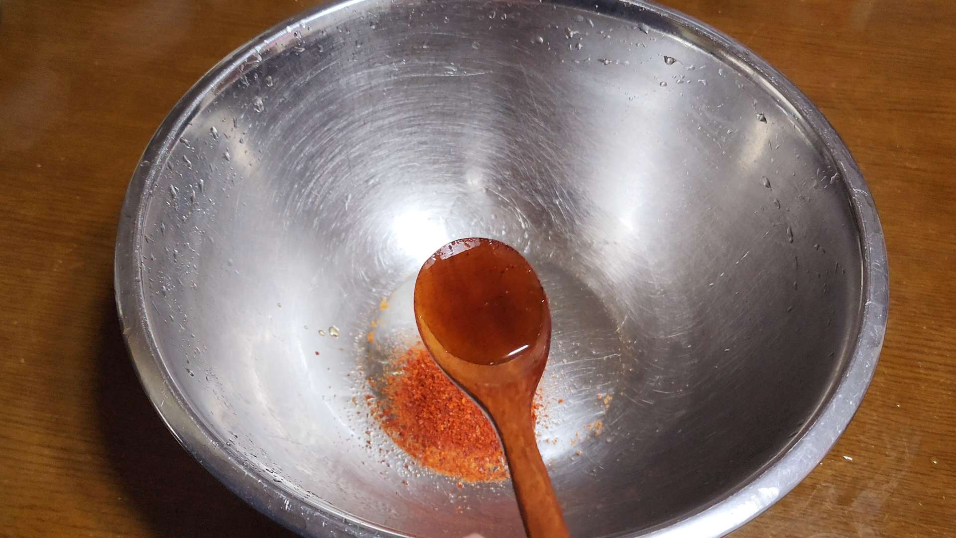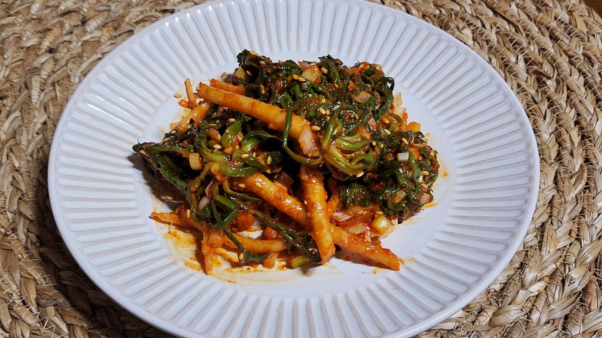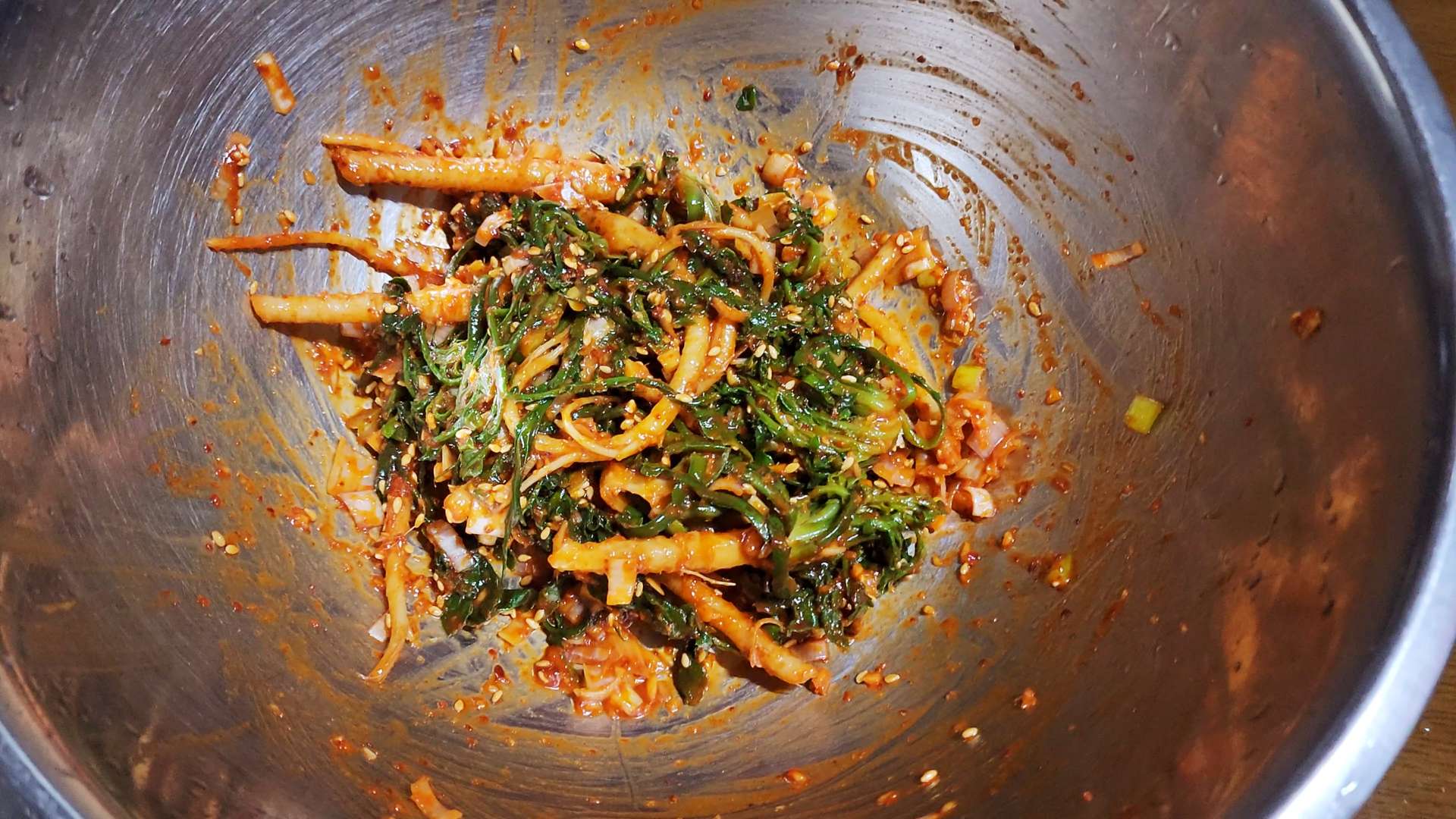 양념: 고춧가루 0.5T, 매실액 2T, 고추장 2T,