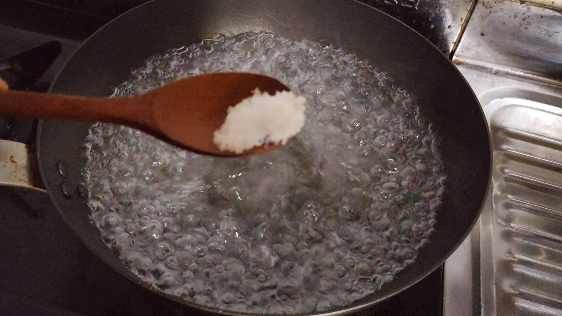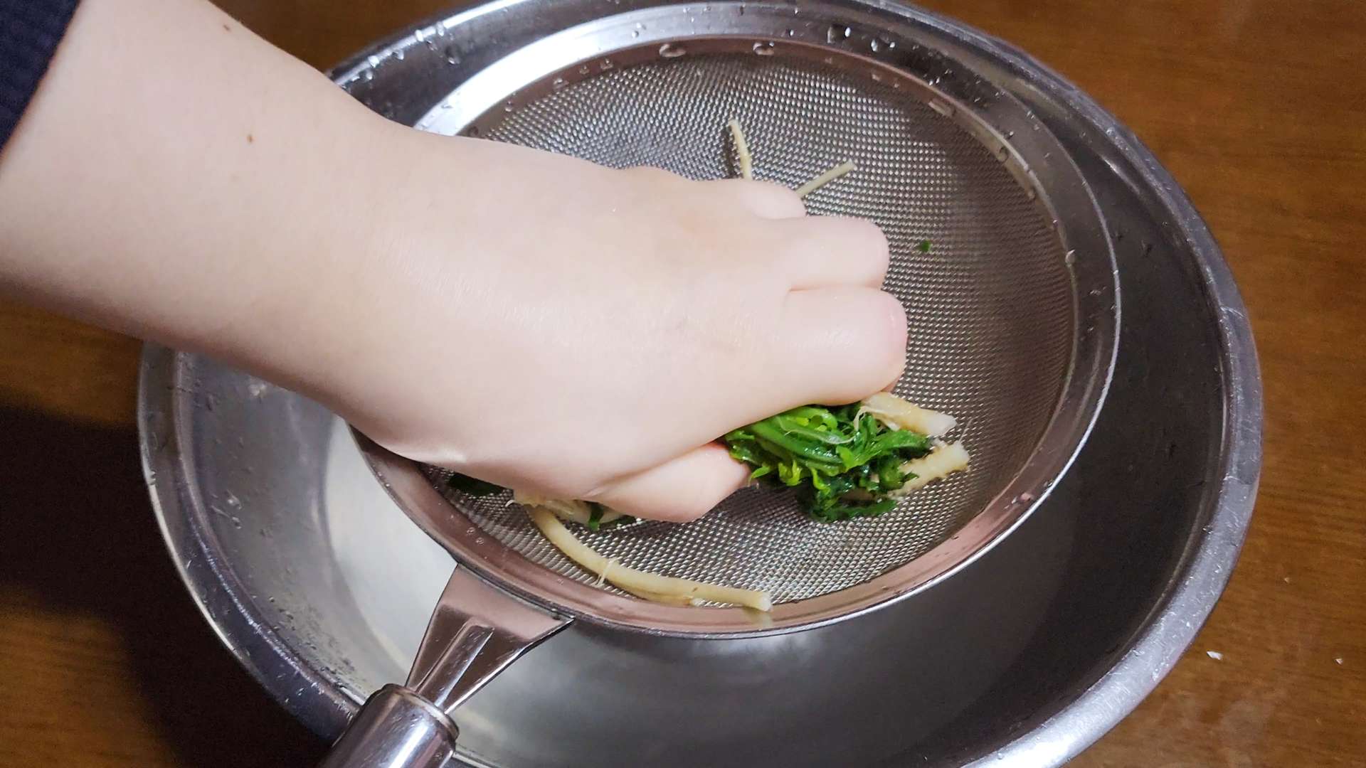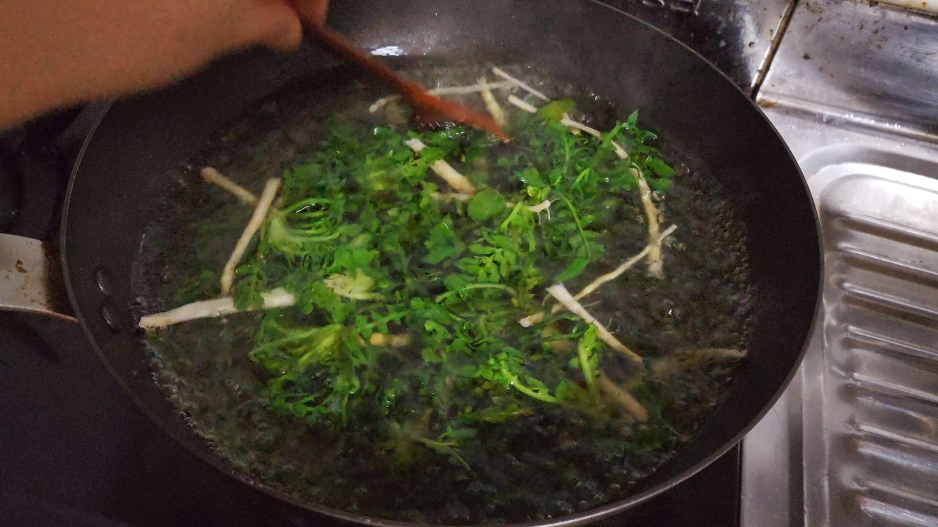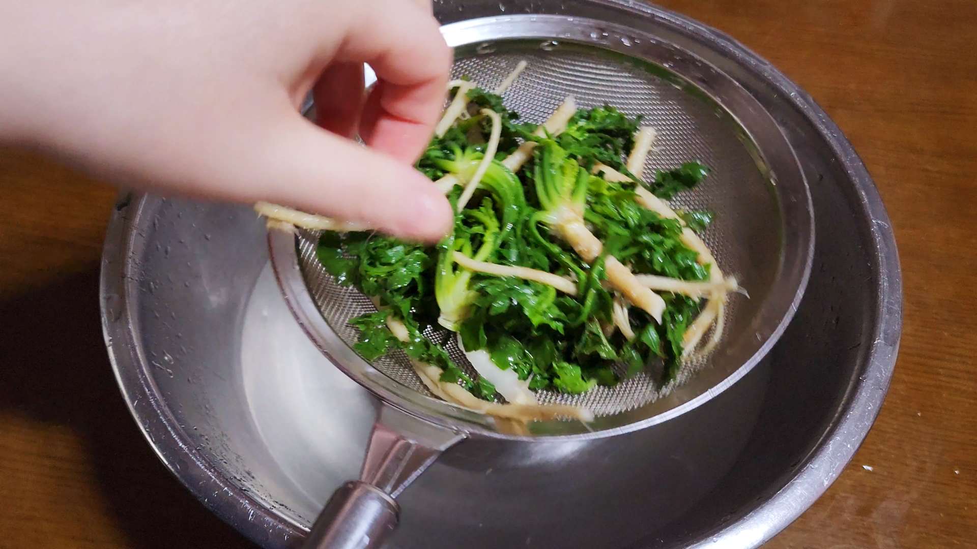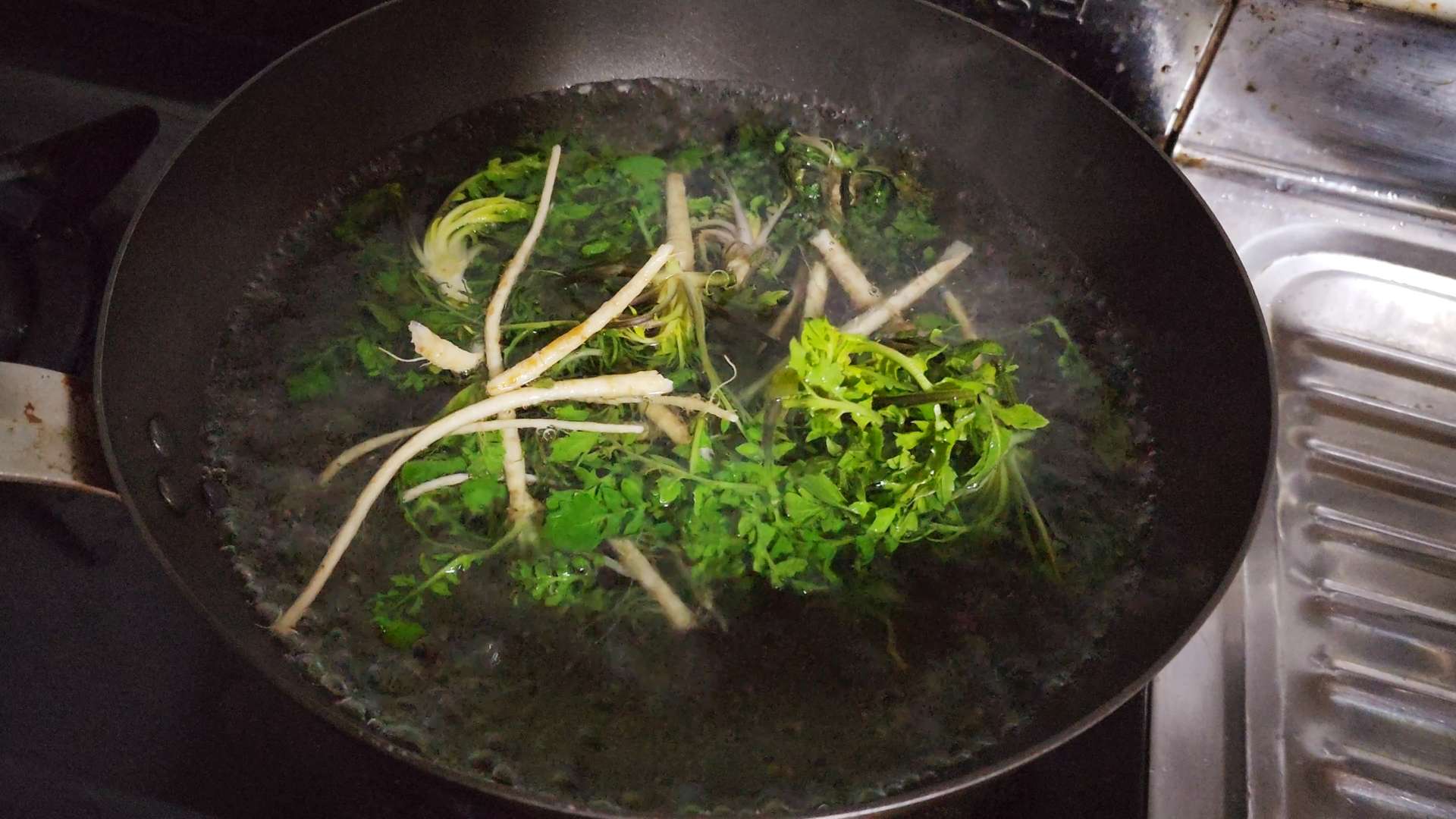 끓는 물에 소금 0.3T, 냉이를 넣고 1분 정도 데쳐줍니다.