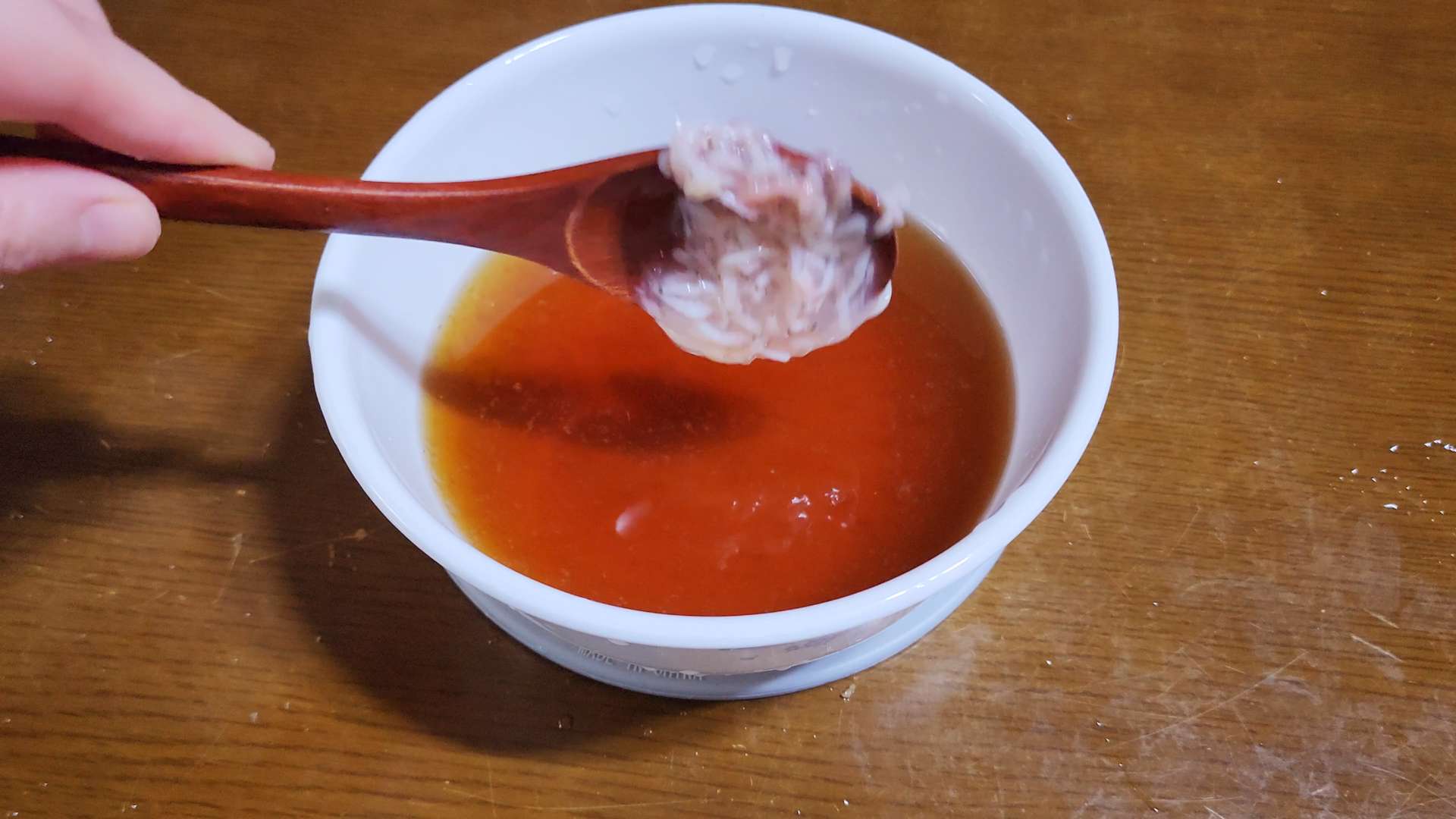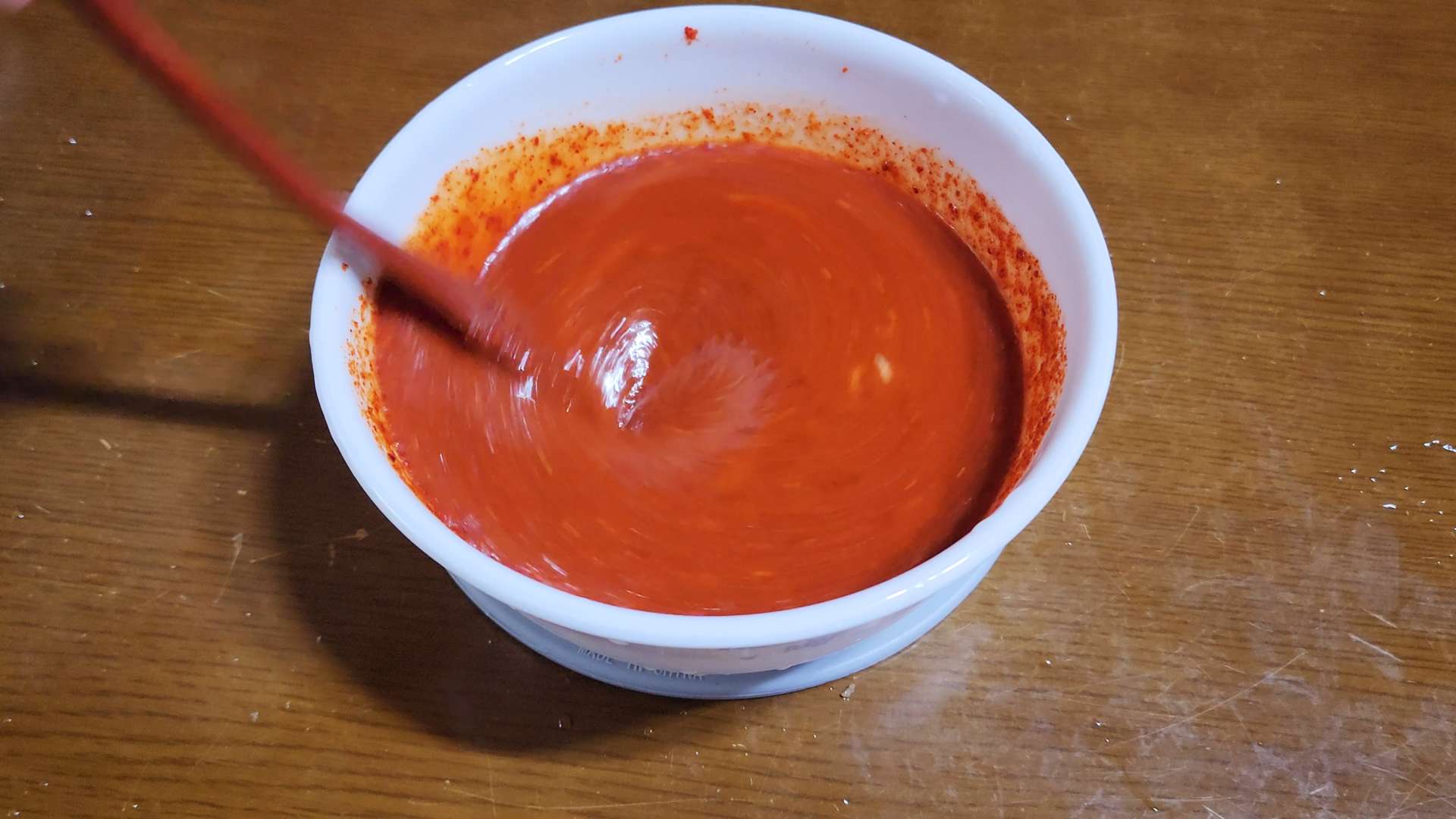 갈아 만든 배음료 120ml, 매실청 3T, 새우젓 1T, 고춧가루 180ml