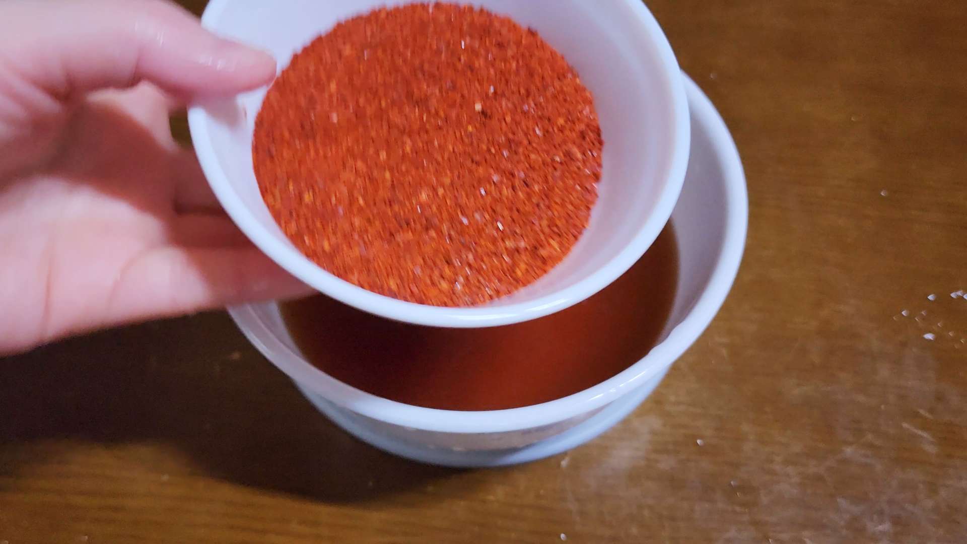 새우젓 1T, 고춧가루 180ml를 넣고 섞어줍니다.