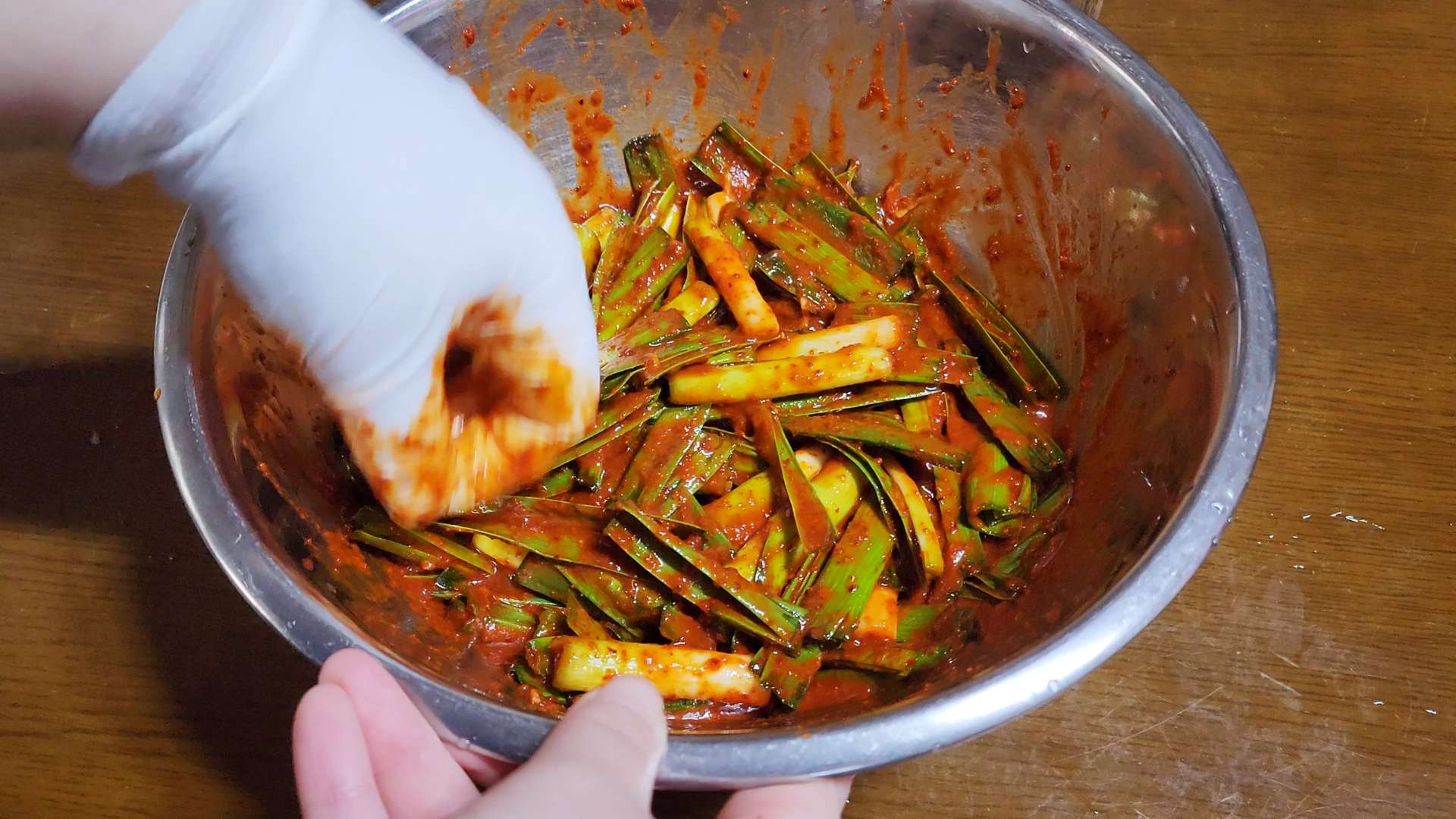풋마늘을 넣고 버무려줍니다.