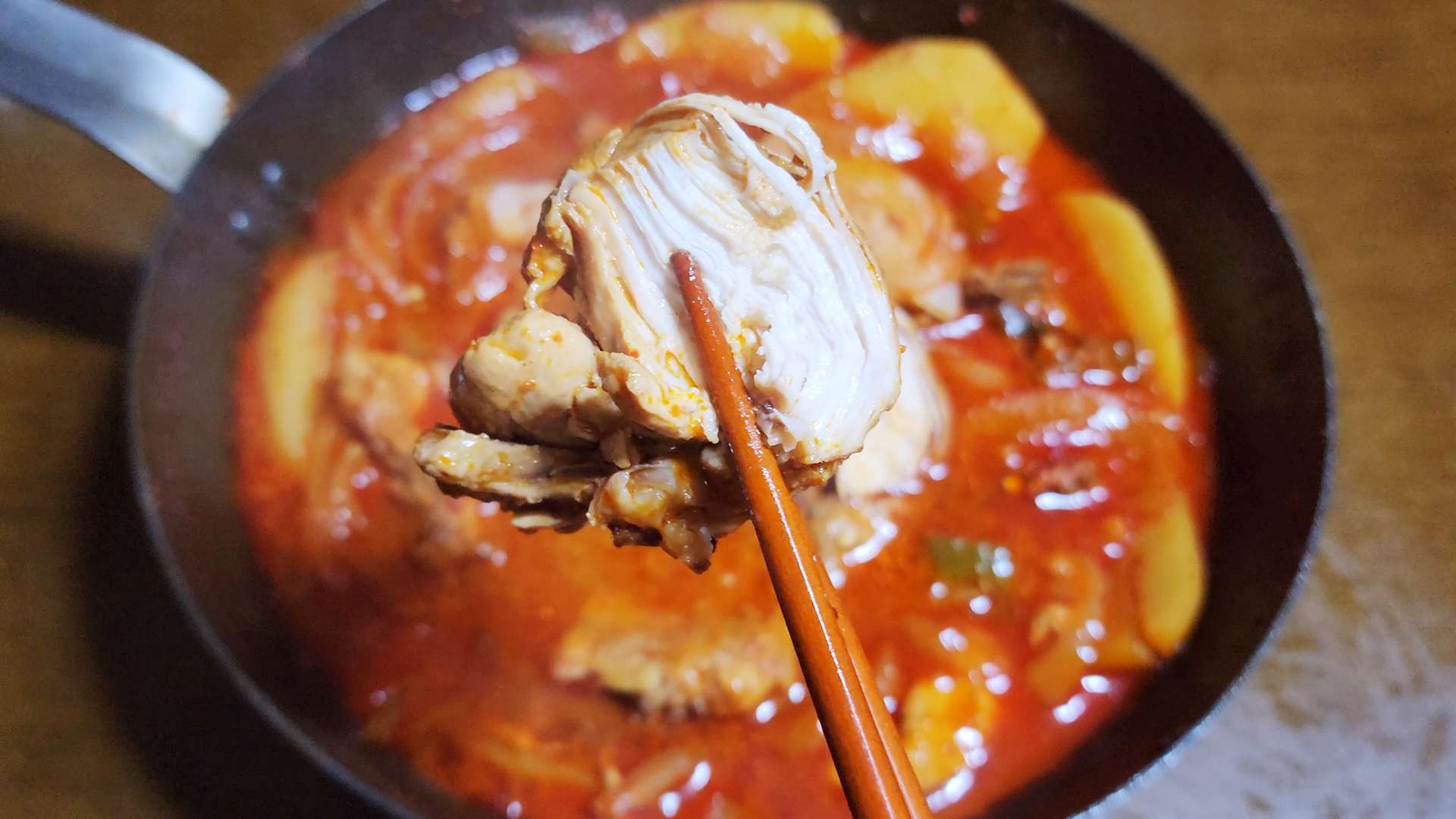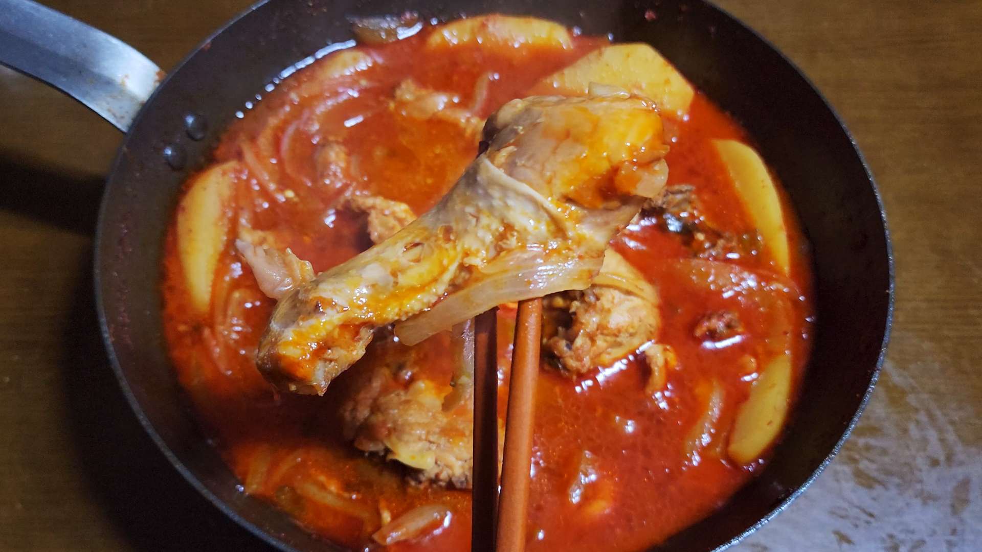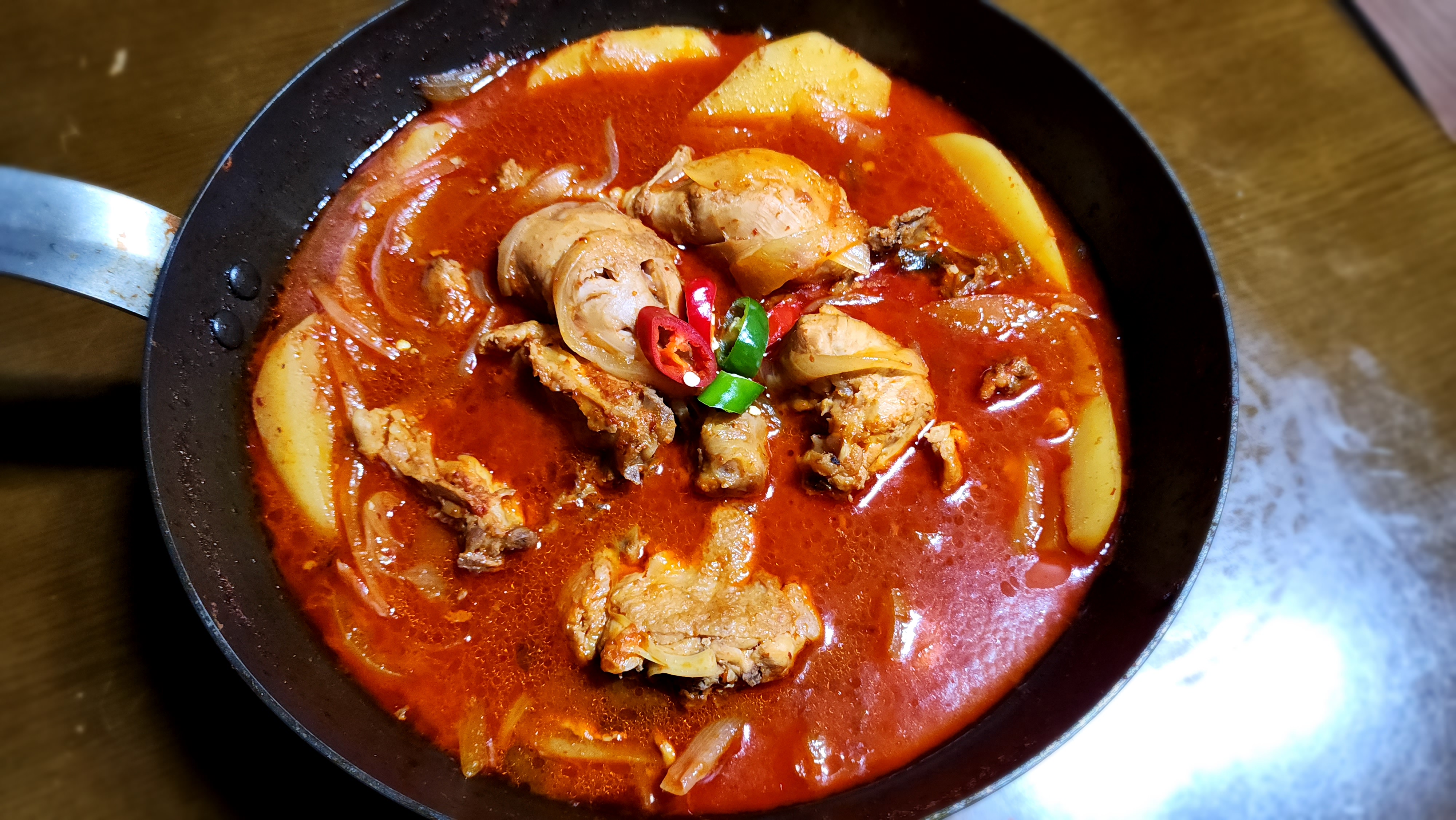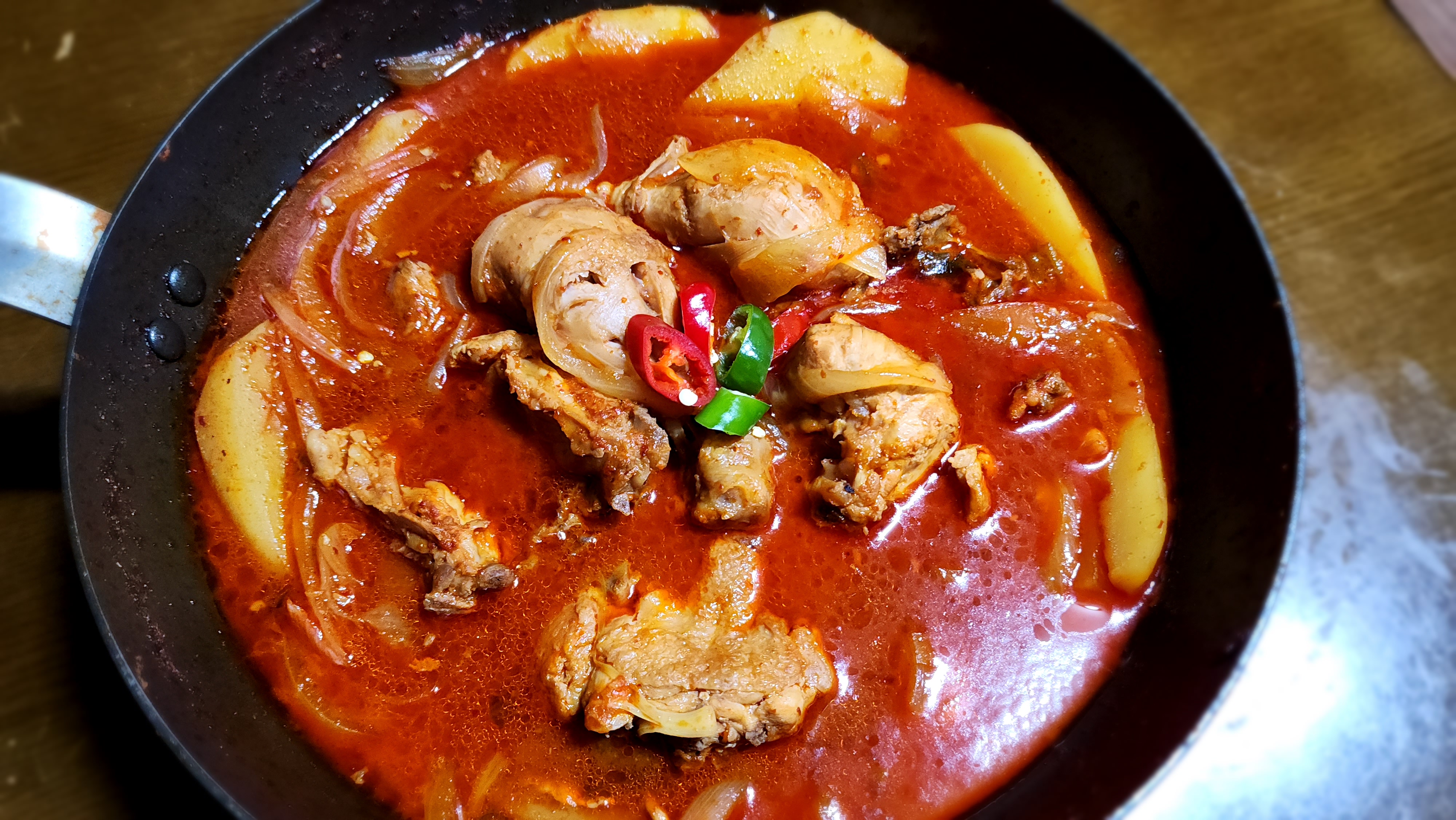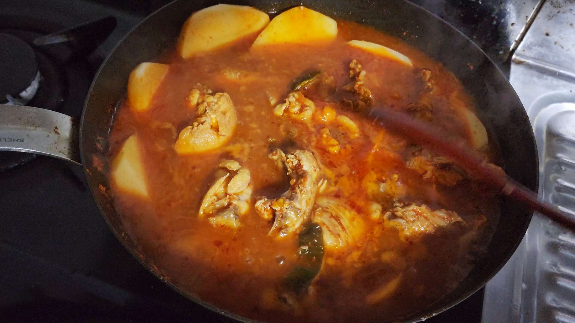 매콤달콤한 양념과 부드러운 닭고기, 감자를 같이 먹으면 맛있답니다.