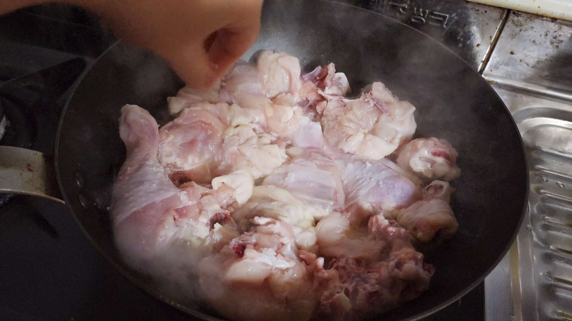 닭볶음탕용 닭은 물에 헹구고 붙어있는 내장 제거해줍니다.