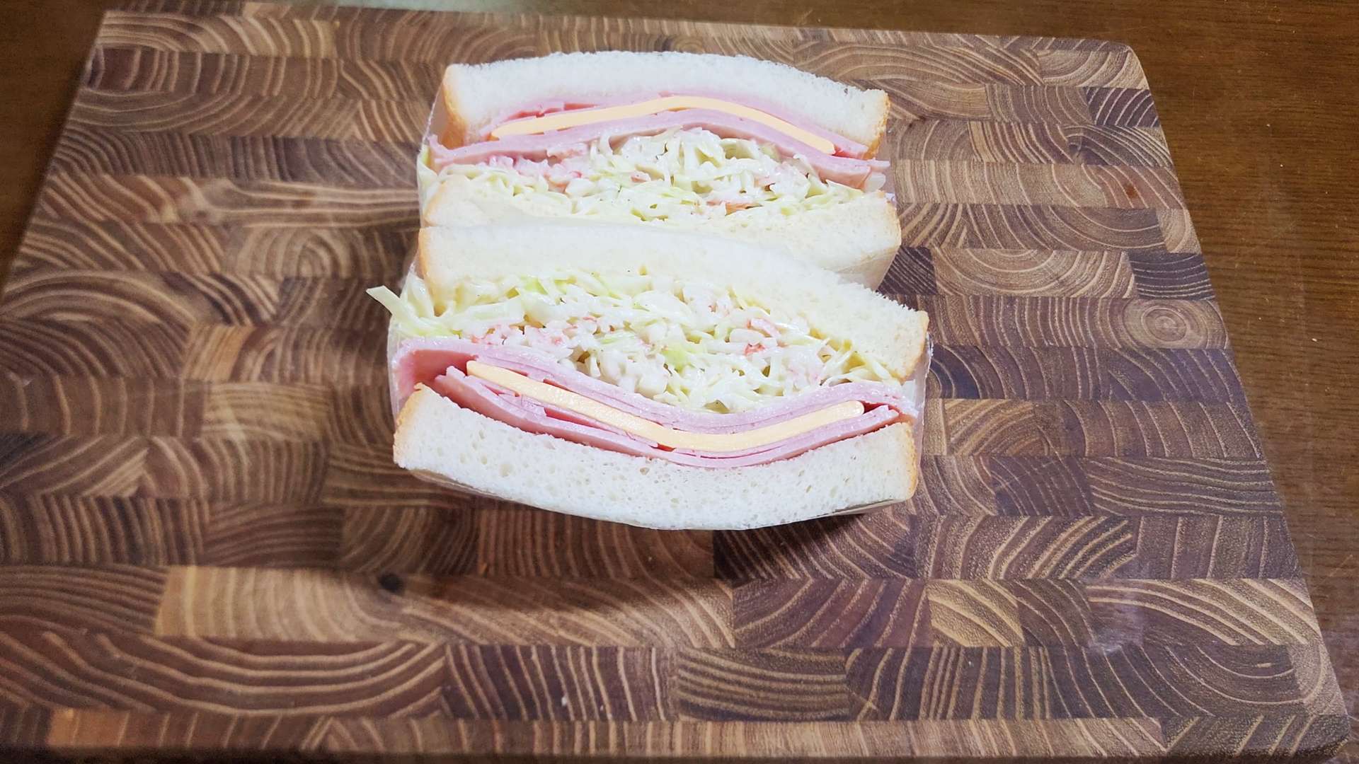 식빵-> 햄-> 치즈-> 햄-> 크래미-> 식빵 순으로 샌드위치를 만들어줍니다.