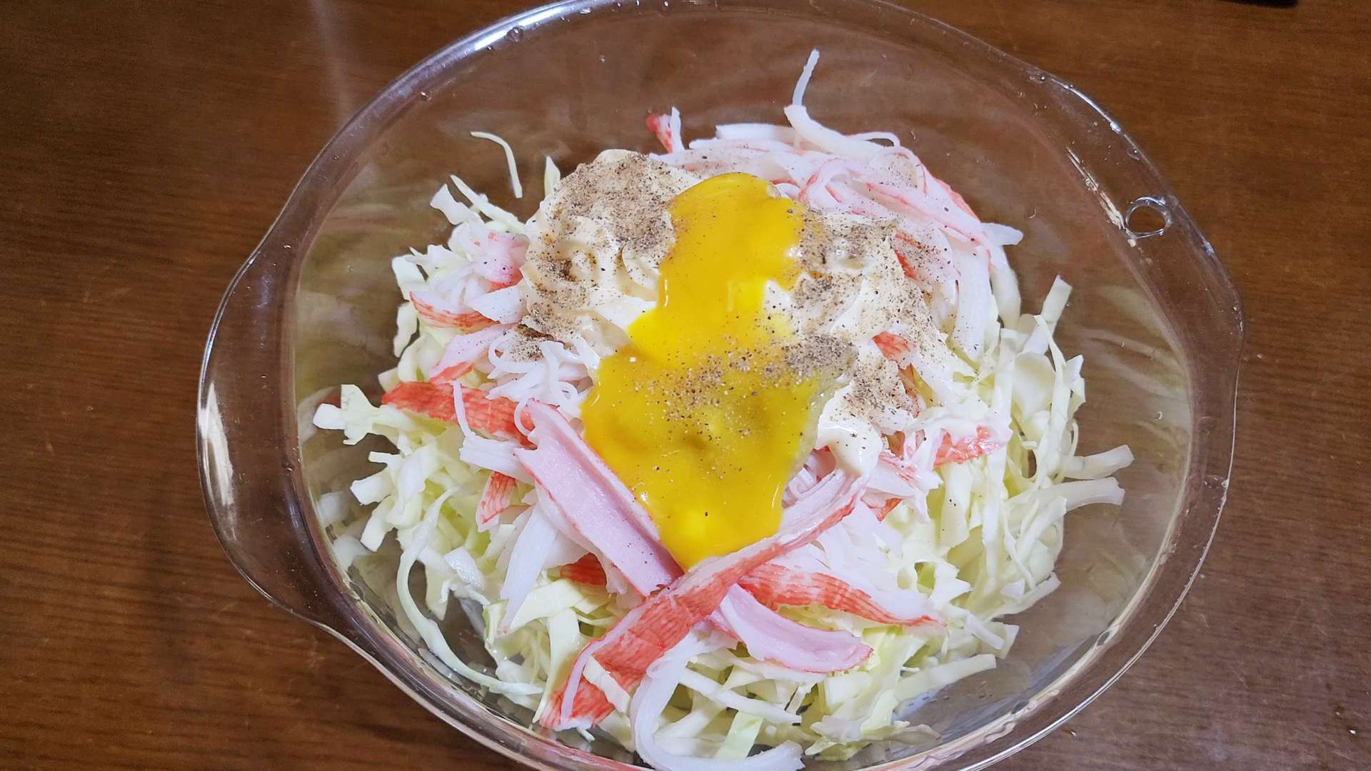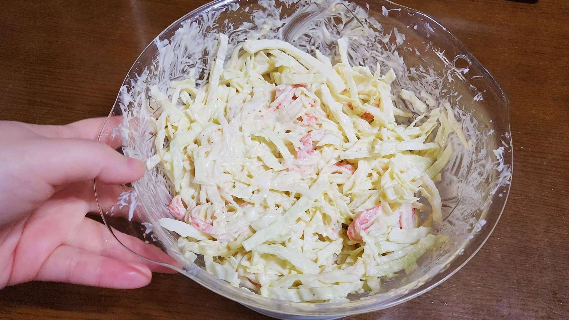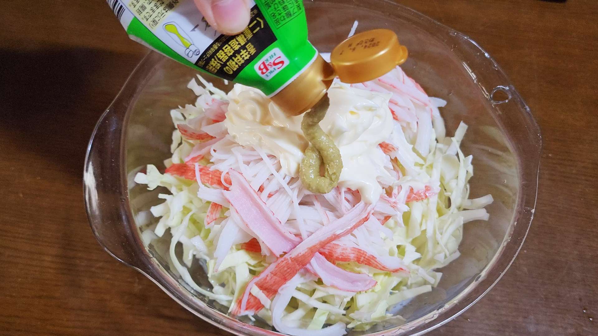 양배추와 게맛살을 와사비마요 소스에 버무려