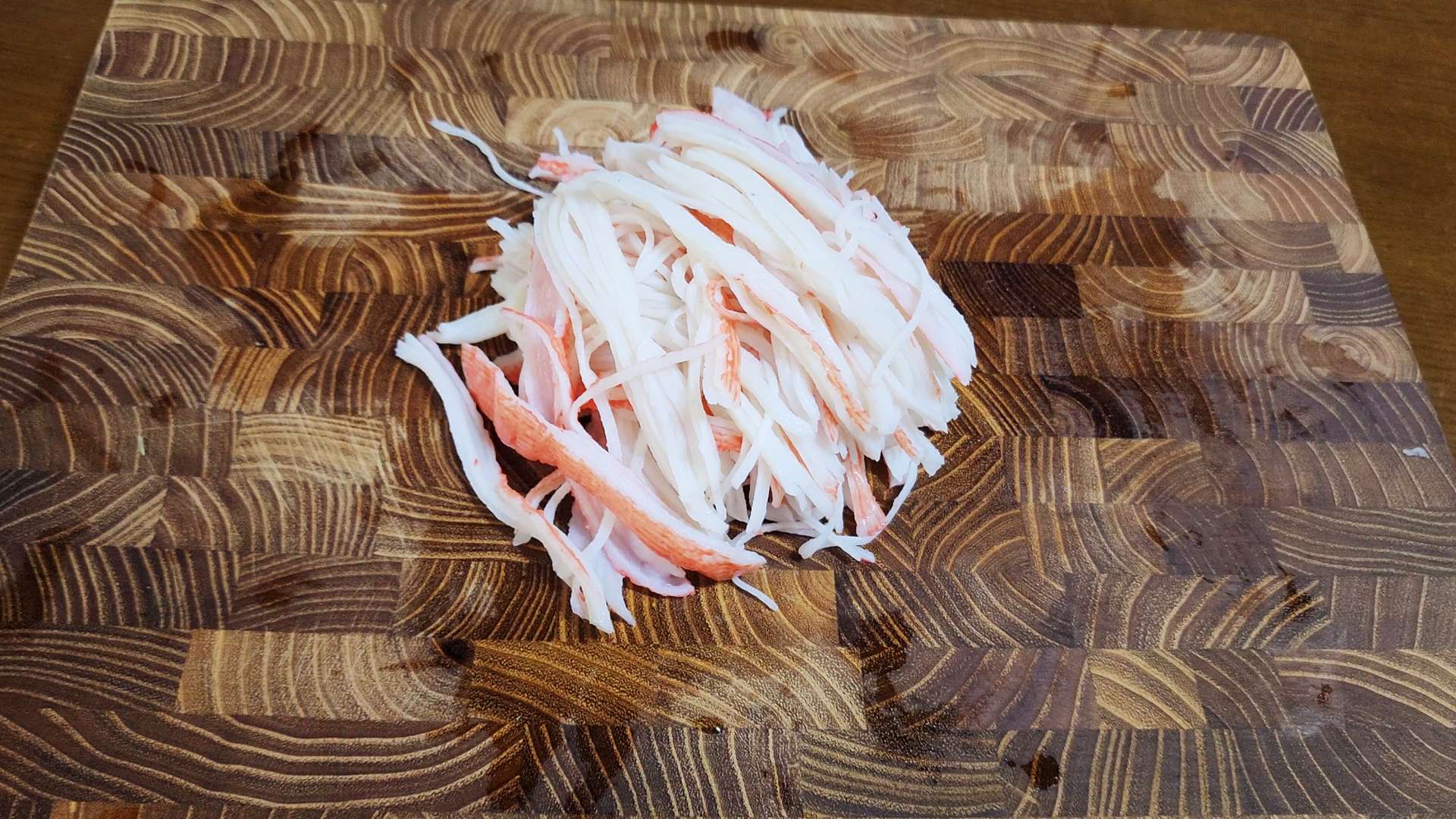 재료: 식빵 2장, 양배추200g, 크래미 4개,