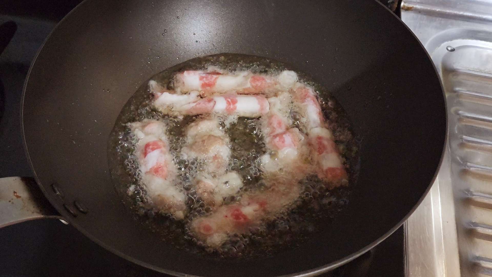 180도 기름에 약 3분간 튀겨줍니다.